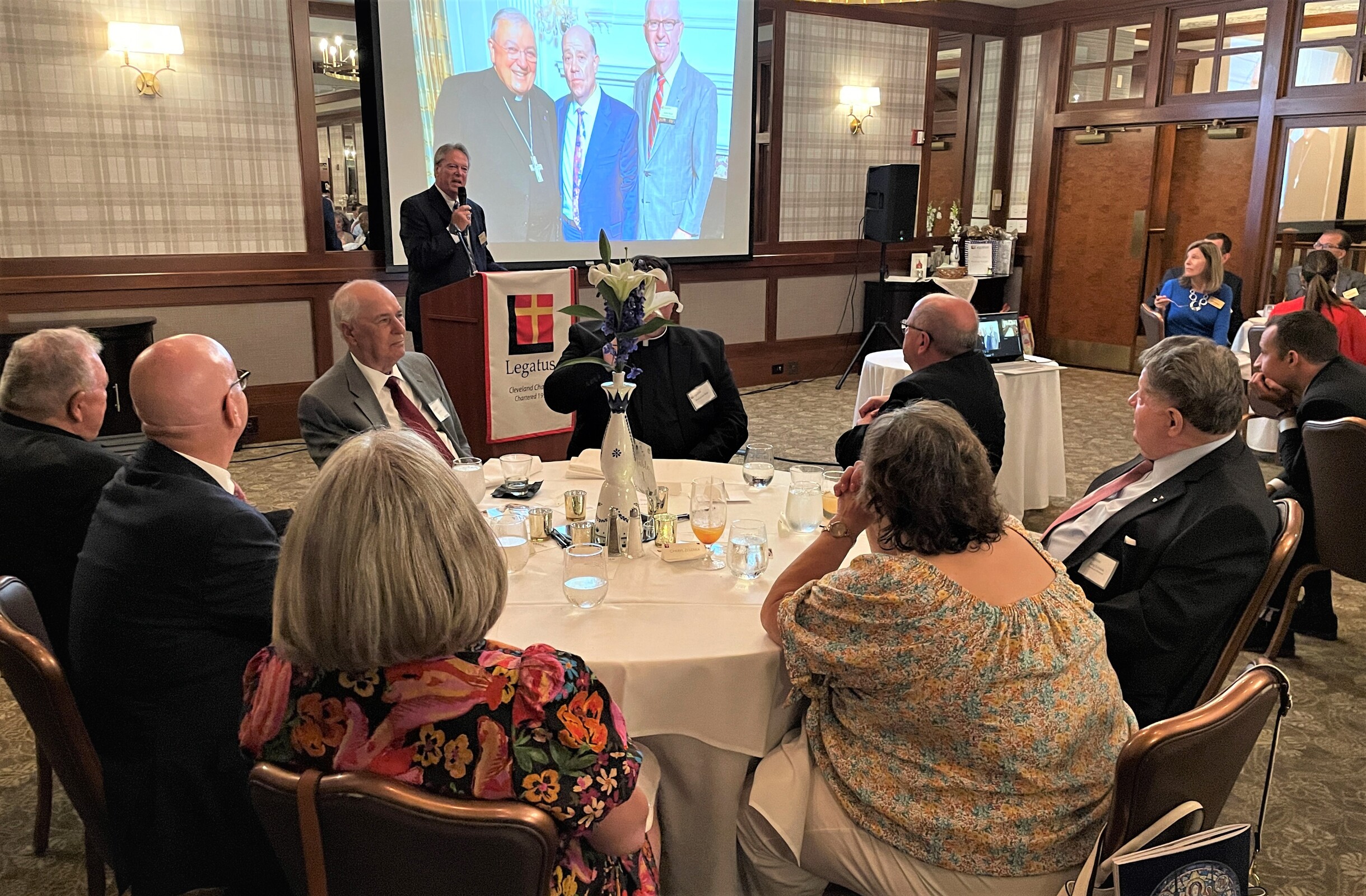 Maria and Brian Dean noted that Legates, as the members are known, are asked to be ambassadors for Christ in the workplace. “The bishop (Gries) is good all the time and all the time he is good,” they said, borrowing and adapting a favorite statement of Bishop Gries. “You’re a wonderful shepherd,” they added, recalling his devotion to pro-life causes and his memorable remarks to the Republican National Convention in Cleveland in 2016. They also fondly recalled how Bishop Gries helped their son when he was struggling and guided him back to the faith. He witnessed their children’s weddings and prayed for their daughter, helping her overcome health challenges, they added.