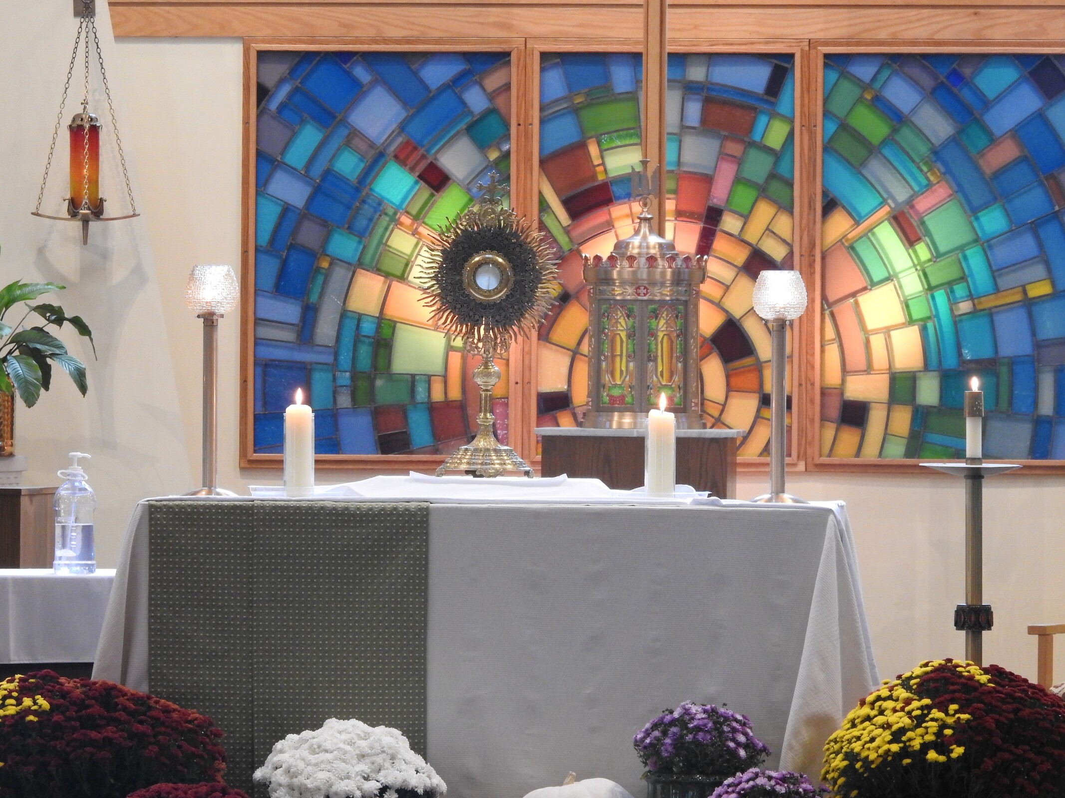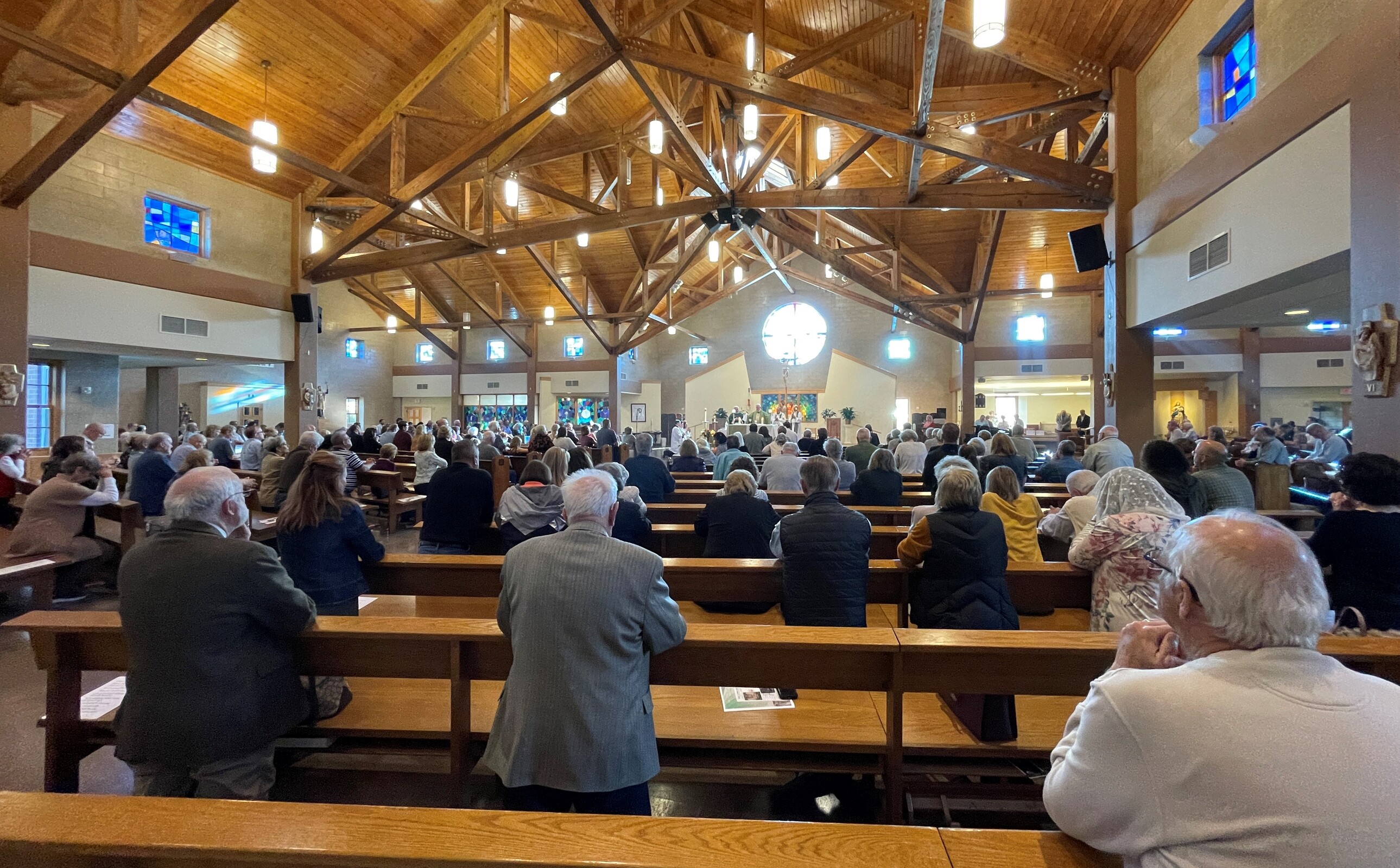 At the conclusion of Mass, Bishop Woost said the Blessed Sacrament would be exposed in a monstrance so the congregation could spend a few minutes in adoration. “We behold God and he beholds us,” he said, adding, “We see each other living in each other.”