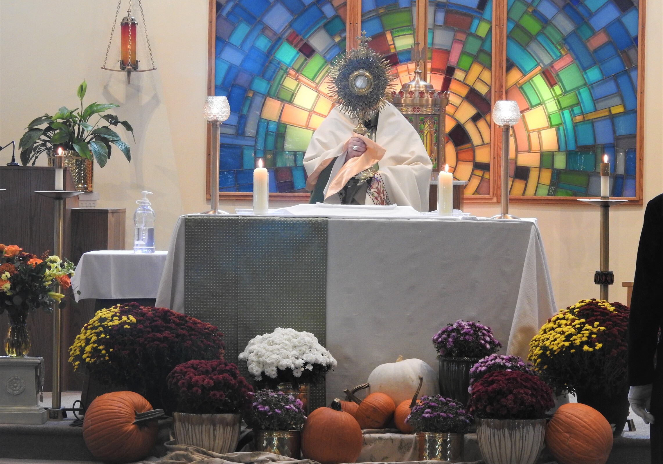 SS. Cosmas and Damian Parish in Twinsburg welcomed Auxiliary Bishop Michael Woost on Oct. 22 when he celebrated Mass and presided and Eucharistic devotions. It was his first pastoral visit to the parish since his ordination. The visit coincided with the end of the first week of the parish’s Eucharistic Miracles Experience.