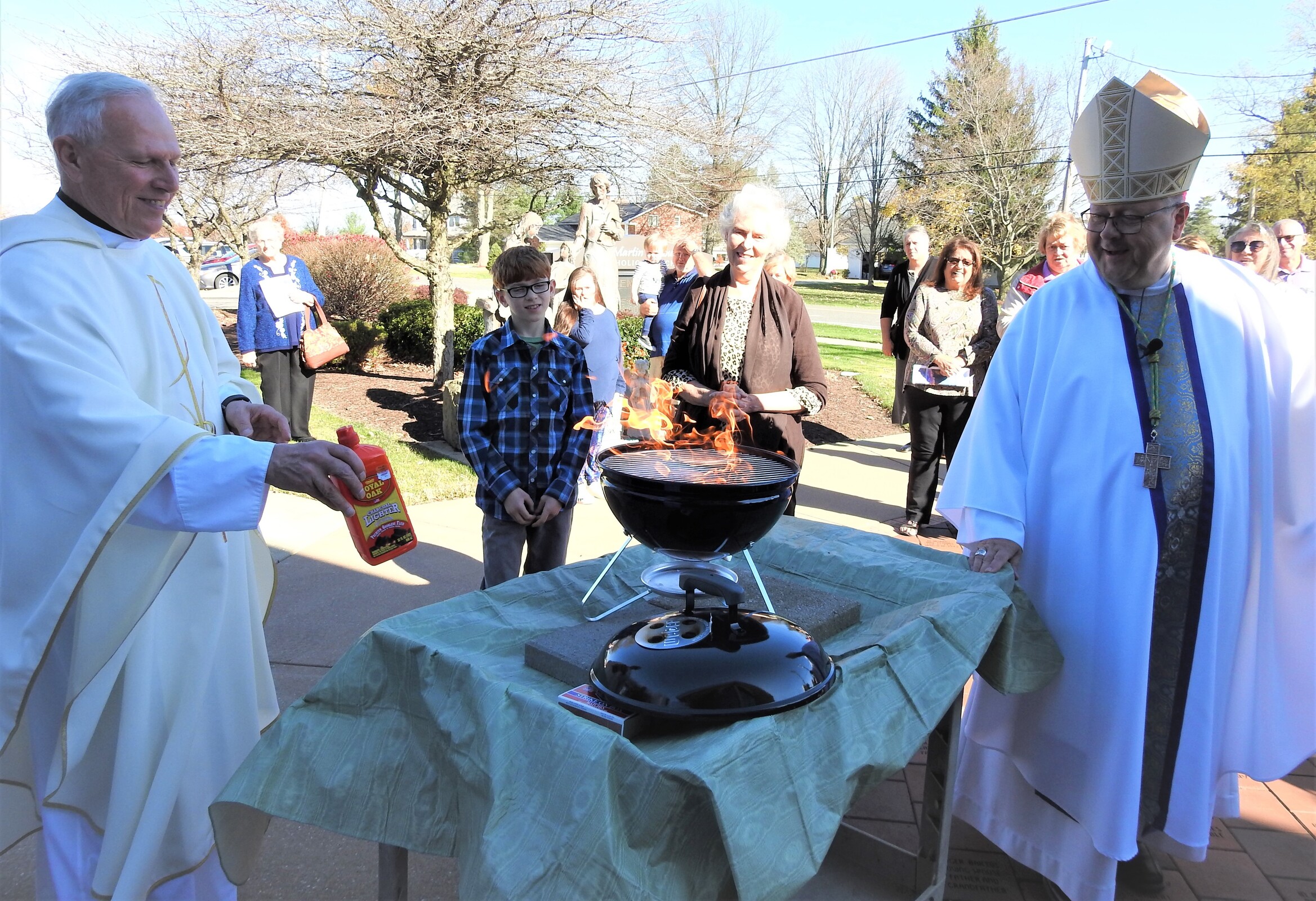 After Mass, the congregation processed outside where a ceremonial mortgage burning took place followed by a reception in the parish hall.