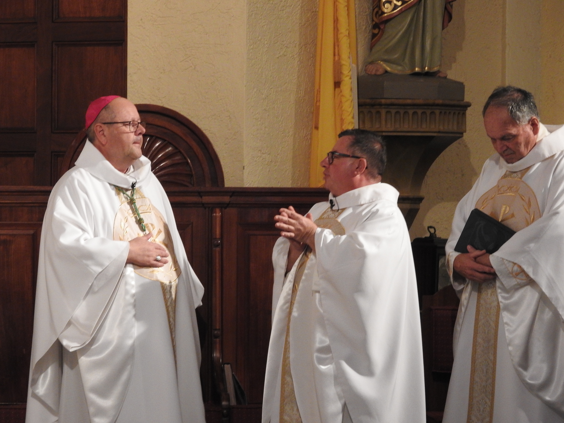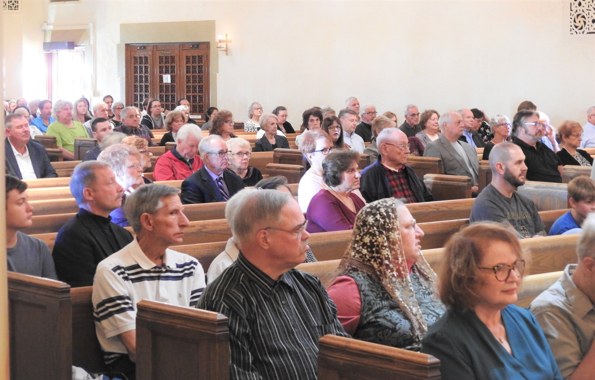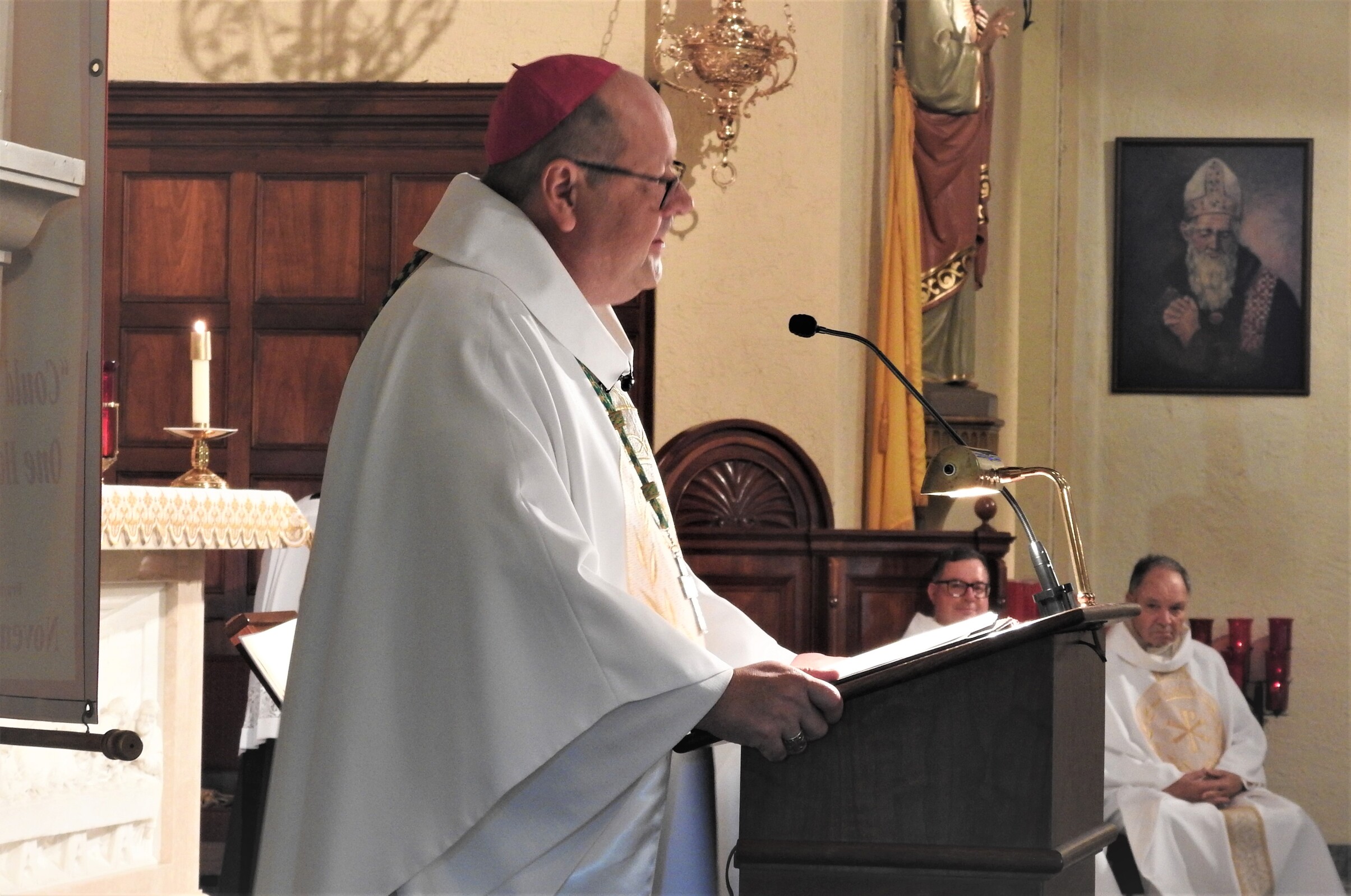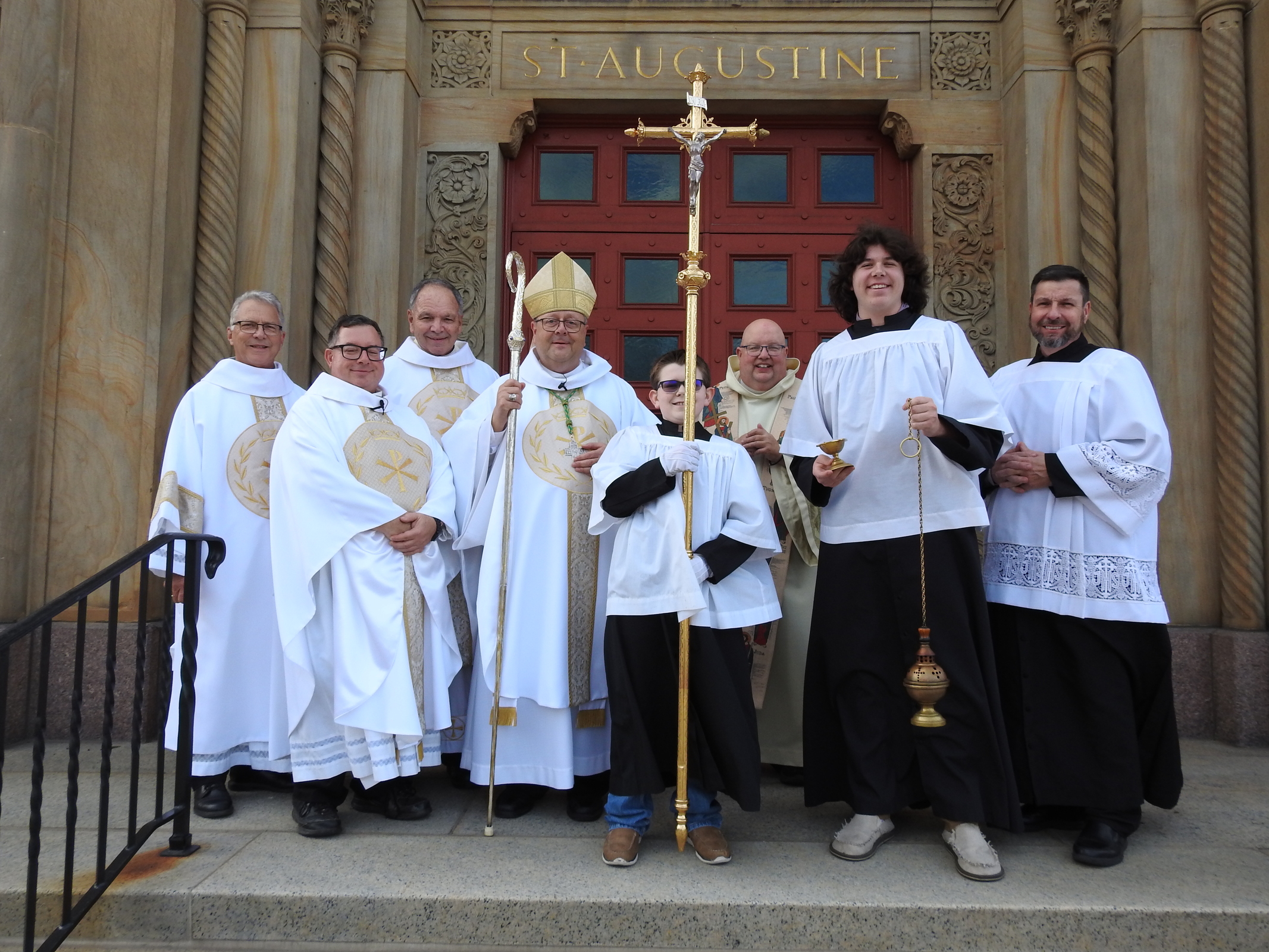 The pastor, Father David Majikis, welcomed the bishop to St. Augustine for his first pastoral visit. Concelebrating was parochial vicar Father William Browne, with Deacon Robin Adair assisting. The parish was established in 1898.