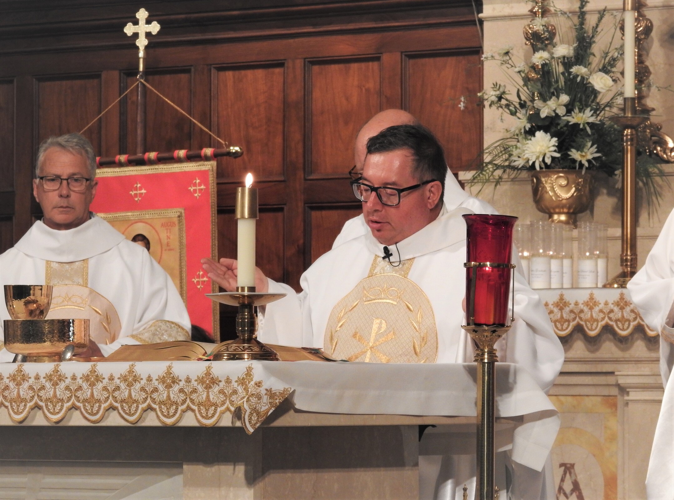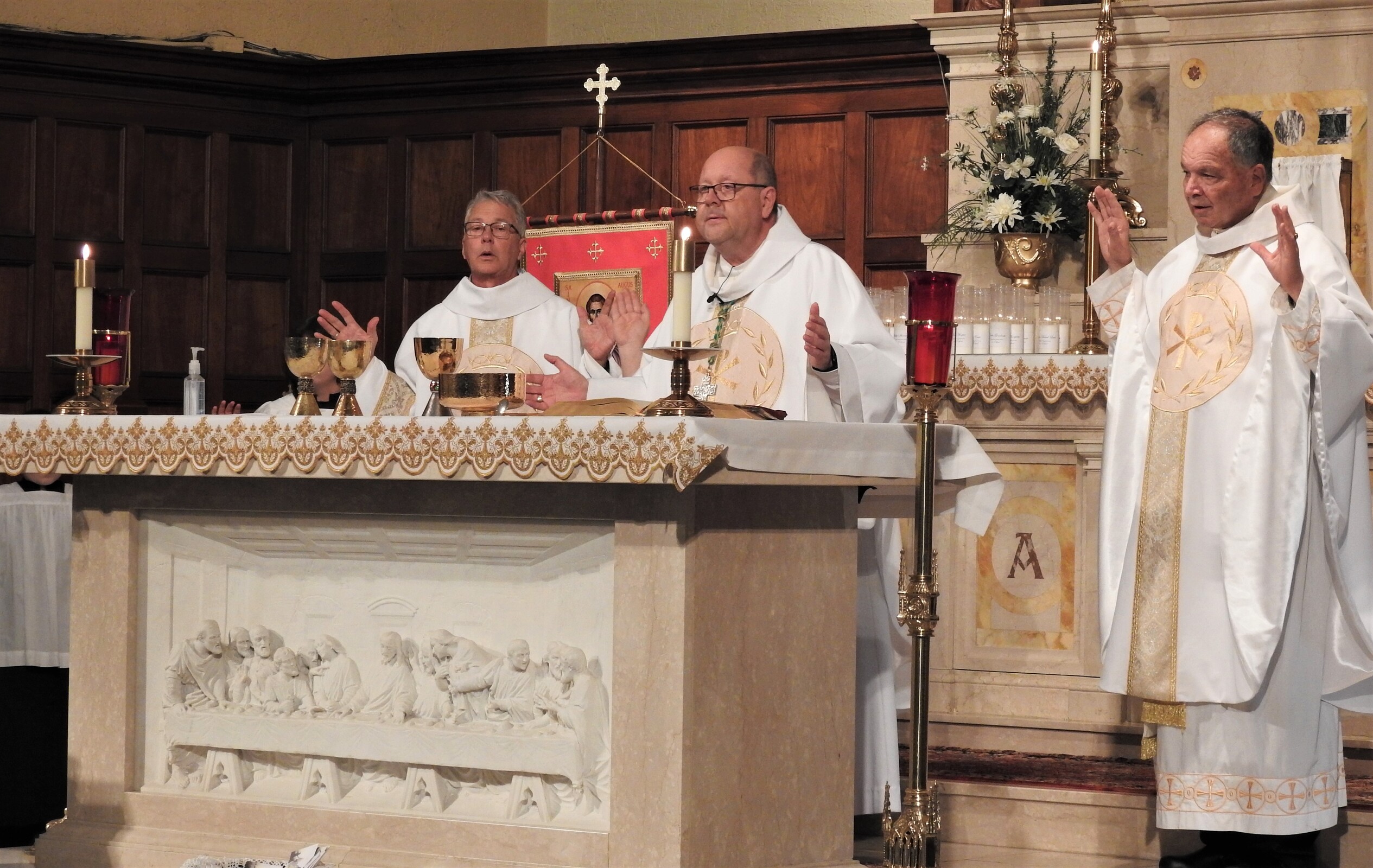 He told the faithful at St. Augustine they have been contemplating the Eucharist in perpetual adoration for 60 years. “It has helped you to celebrate this Eucharistic liturgy, the highest prayer of the Church, in spirit and in truth. Here, God brings his love into the world. Here on this altar, God comes to us. In the tabernacles and in our monstrances, Jesus remains with us. But his love must not be imprisoned here. He wants to send you out as his ambassadors of God’s great love for us.”