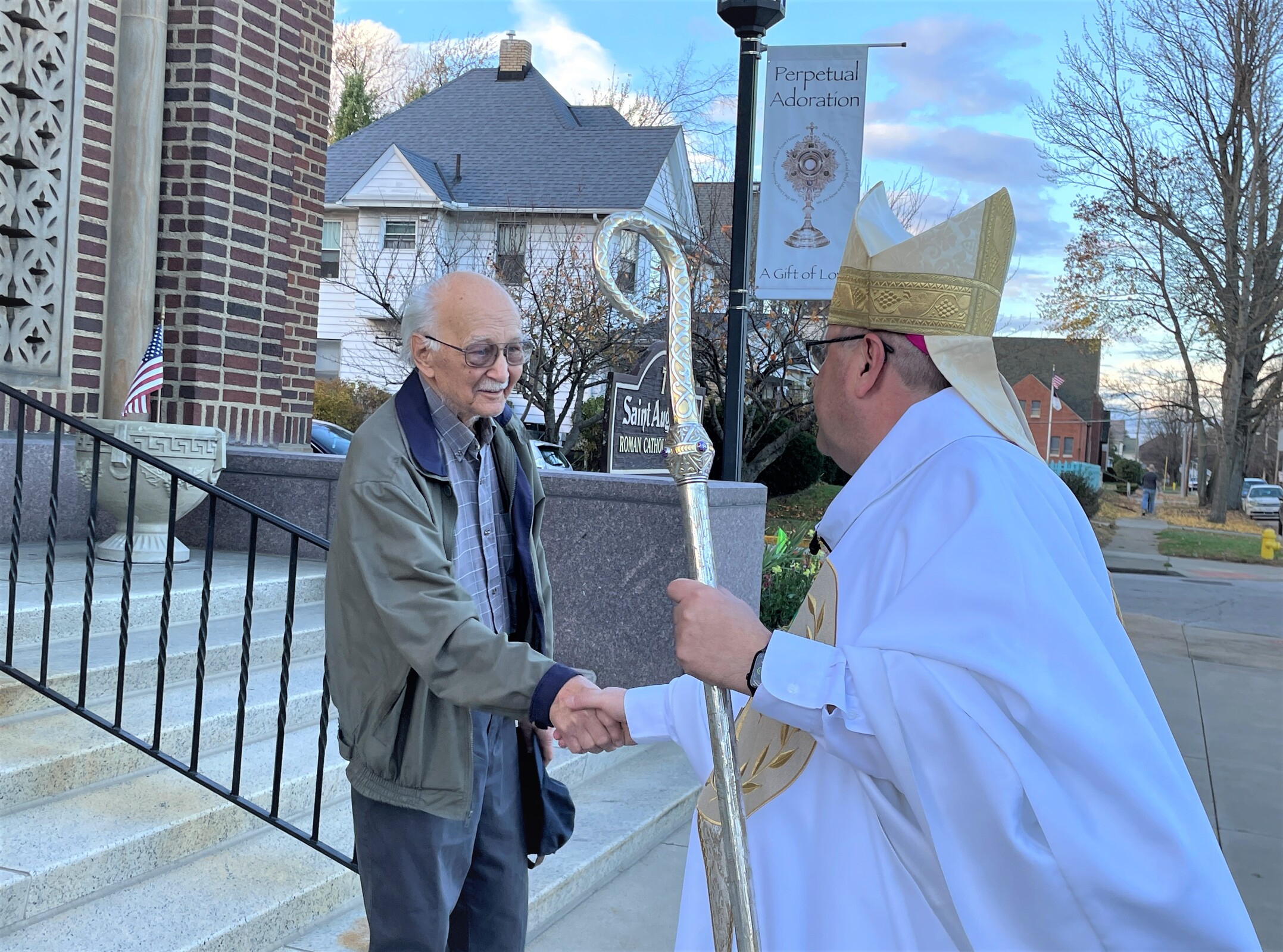 On that day, parishioners began perpetual adoration, which continues today. The faithful sign up to spend an hour in prayer and adoration. Bishop Edward Malesic traveled to Barberton to celebrate Mass on Nov. 5 in recognition and appreciation for the 60 years of perpetual adoration.
