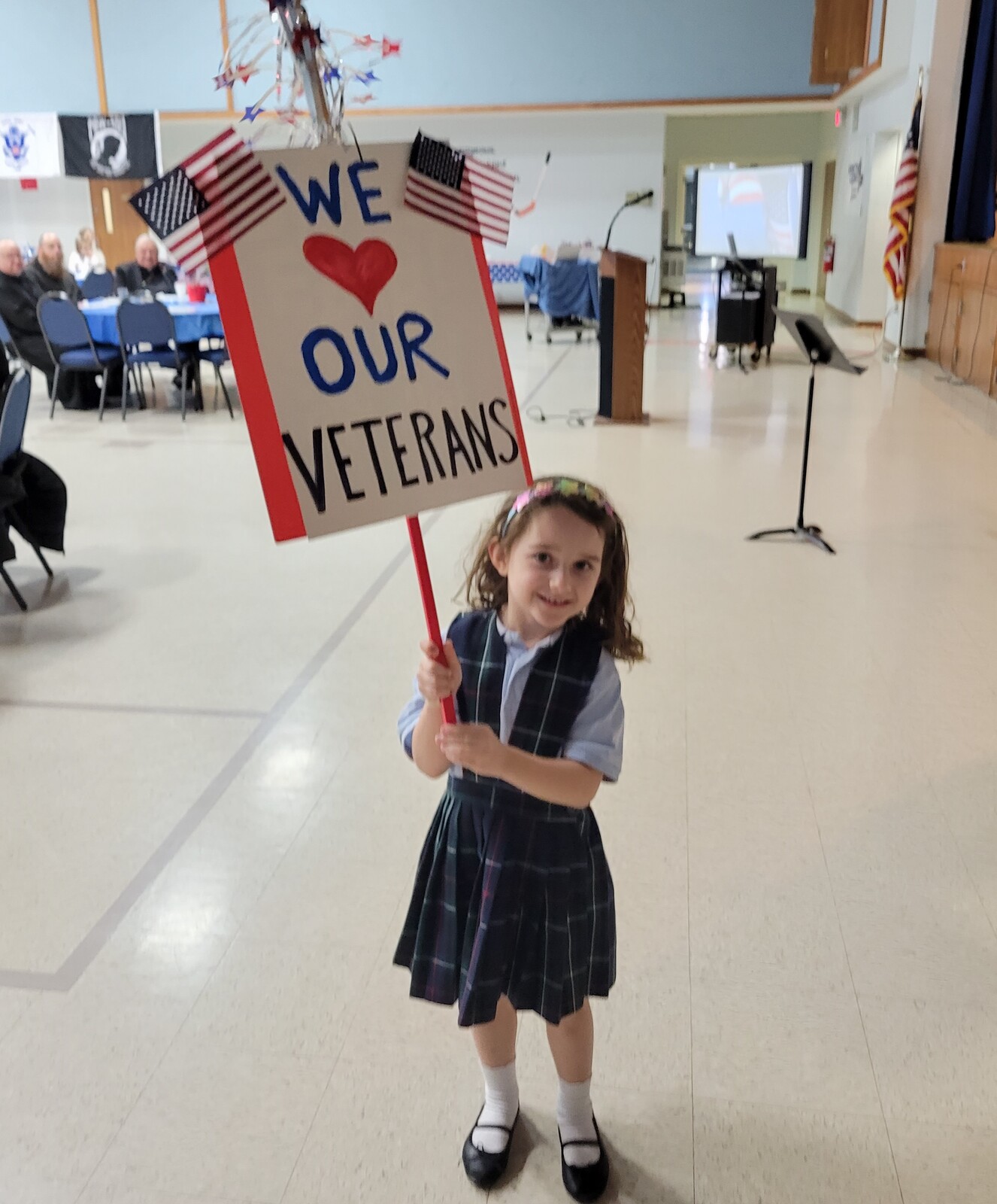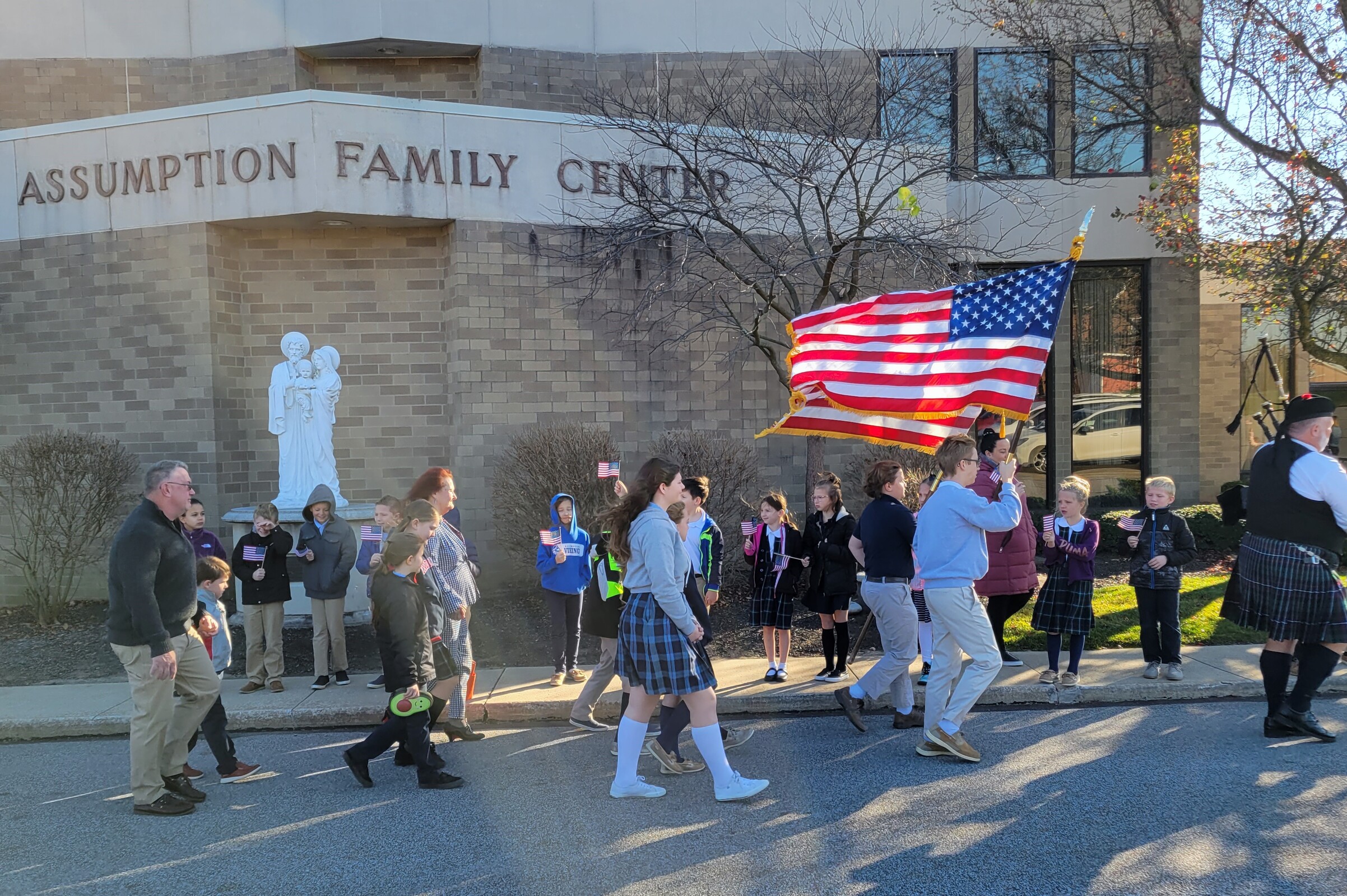Students and parishioners at Assumption Parish and St. Albert the Great at Assumption Academy in Broadview Heights gathered for a special Mass and program on Nov. 10 to honor and thank United States veterans.