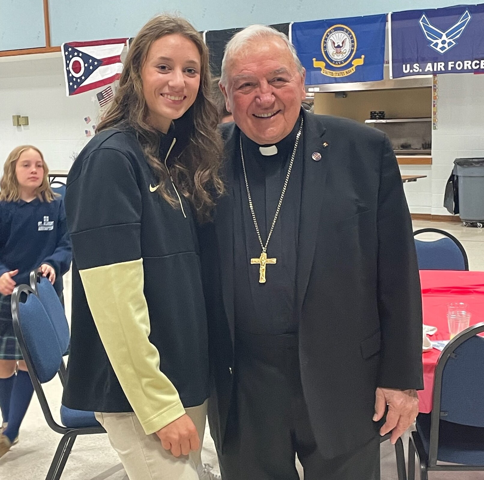 Sienna Tepley, a junior at Walsh Jesuit High School, spoke to the group about commitment to country and faith. She will be attending the United States Military Academy at West Point, beginning in the summer of 2024. Sienna talked about how her military family members influenced her to answer the call to serve. She also thanked all veterans.