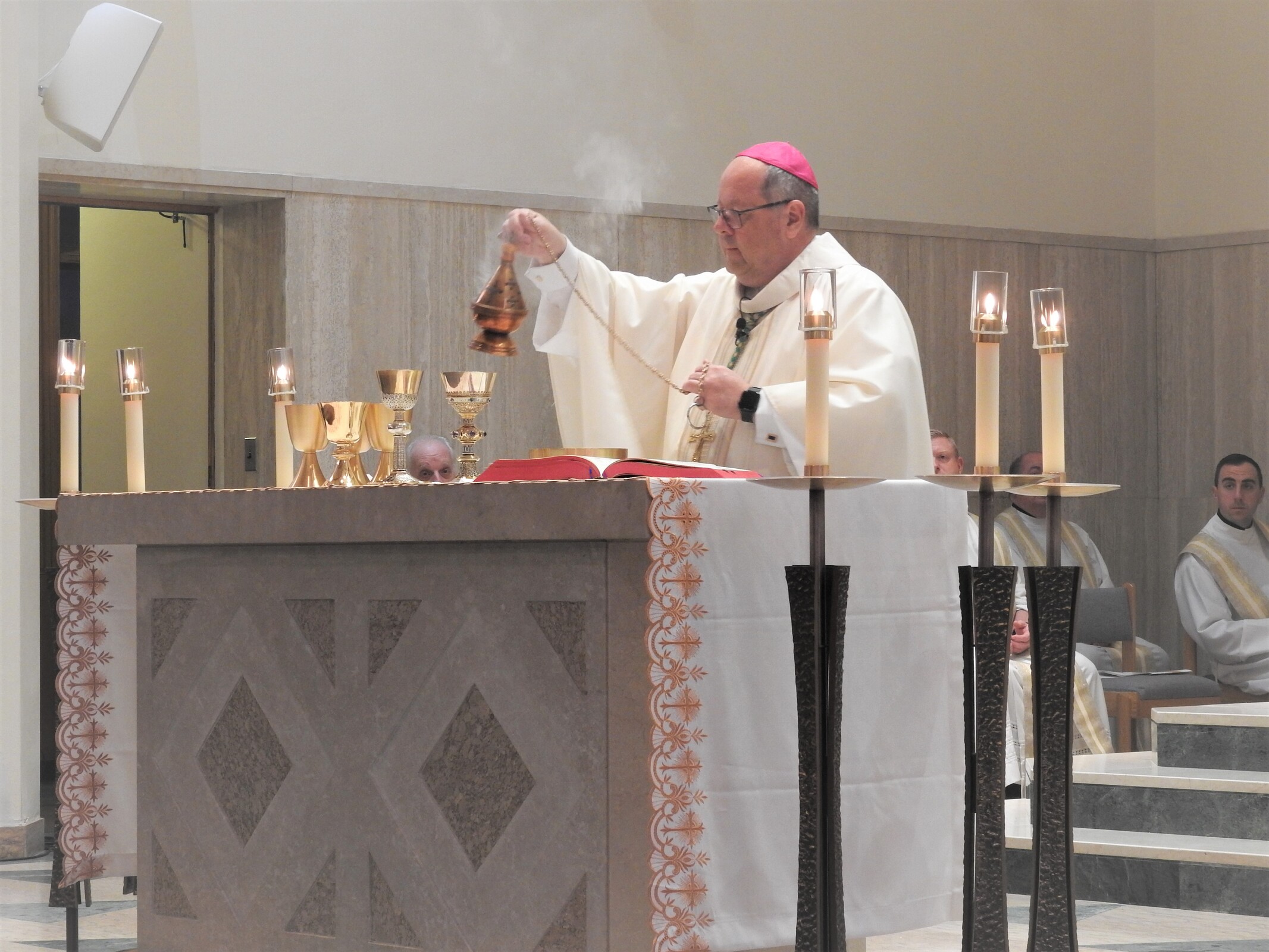 In his homily, the bishop recalled a few years after his priestly ordination when his parents said they planned to renovate their home. They wanted new wallpaper, carpeting, paint, drapes and furniture. He reminded them the coffee table needed to be replaced and his mother told him that he was the reason for that, something he admitted. As a child and teenager, he often put his feet on the coffee table, which eventually wore down the finish. Despite repeated warnings from his mother, the bishop said he continued to put his feet on the table whenever she was out of the room. But he learned to remove them before she came back into the room.