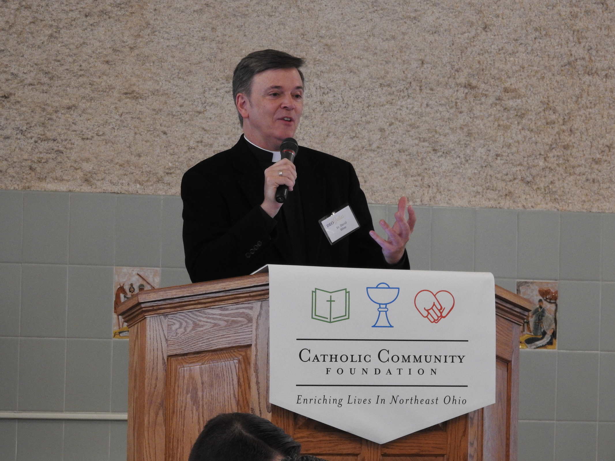 Father Dave Bline, Saint Mary Seminary spiritual director and a close friend of the Perrys, introduced them and shared some personal stories about his relationship with the family.
