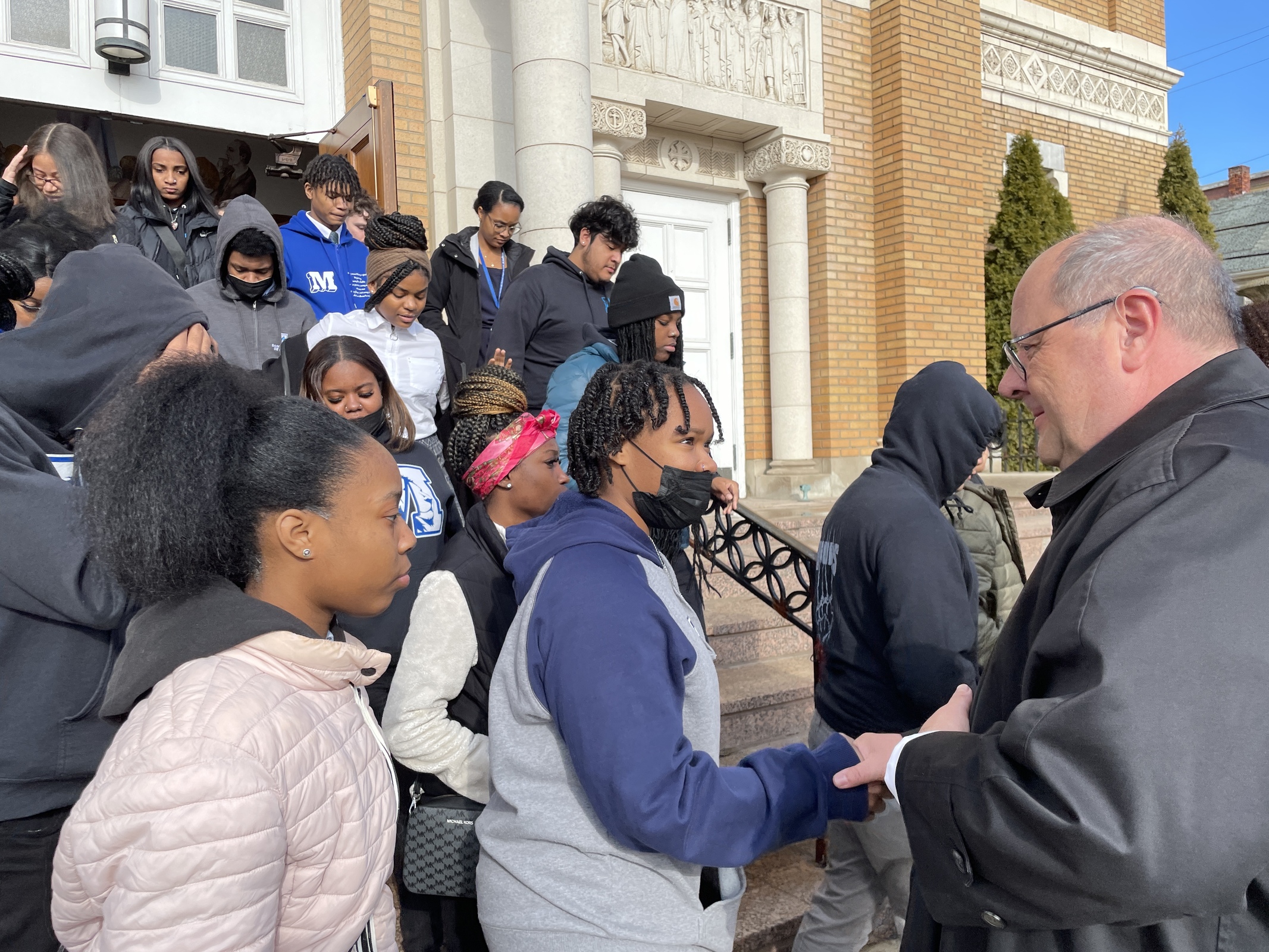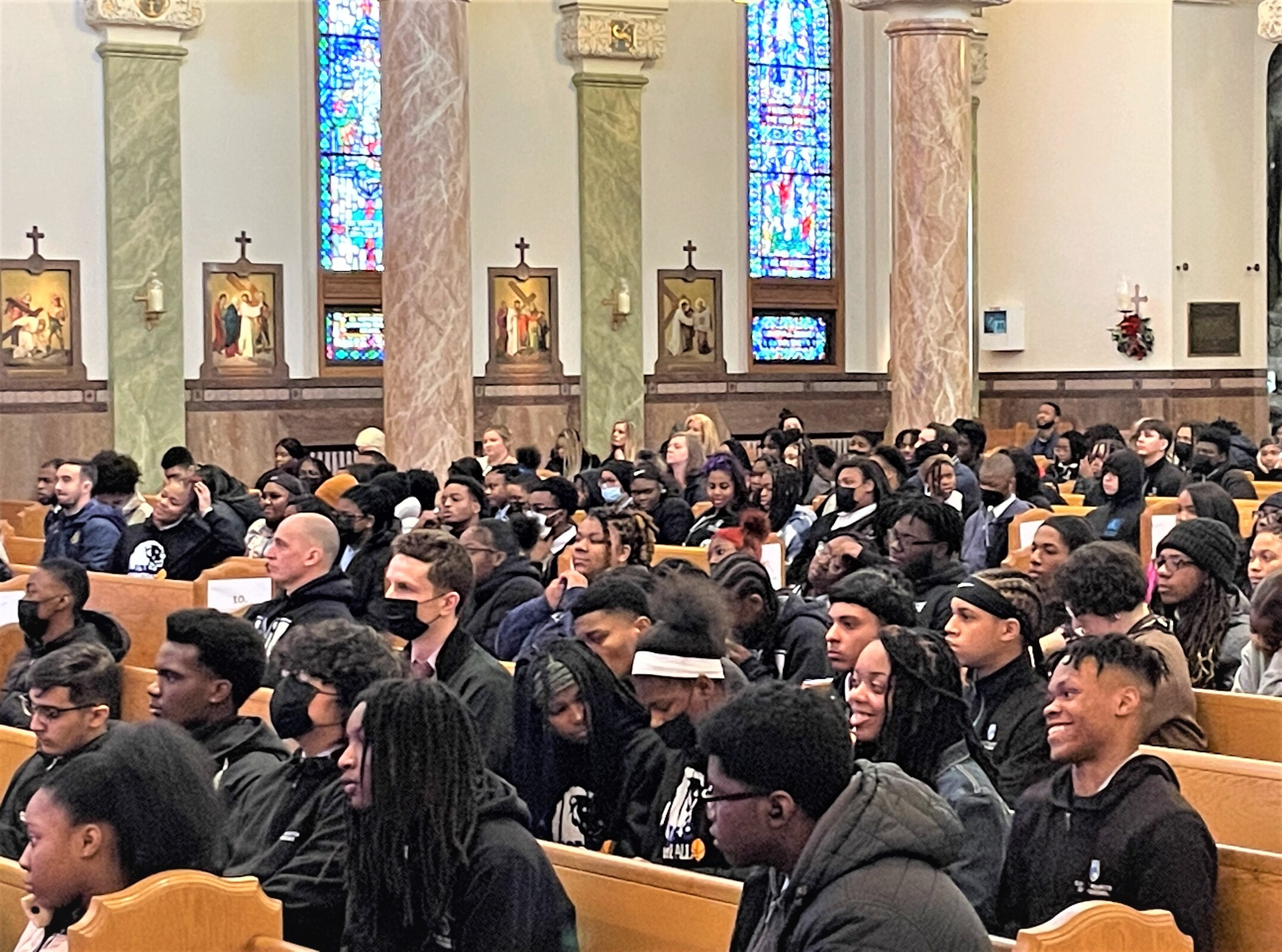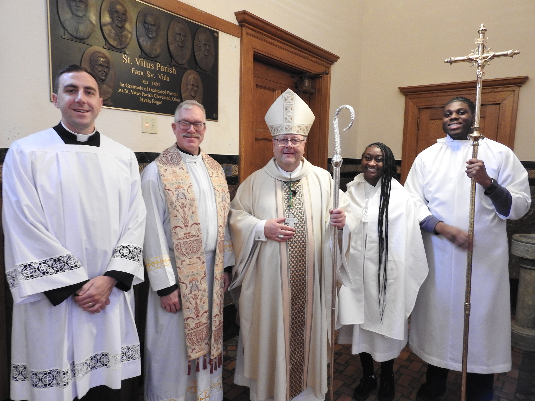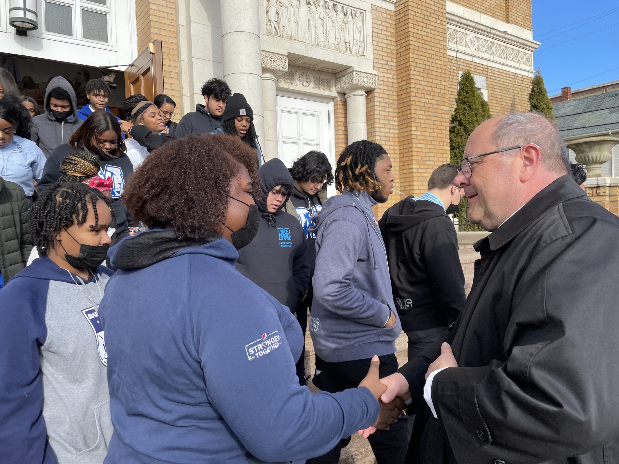 “It is great to finally be with all of you,” Bishop Edward Malesic told the students, faculty, staff and other members of the Saint Martin de Porres community. The bishop began his first visit to Cleveland’s Cristo Rey high school on Jan. 17 with Mass in nearby St. Vitus Church.