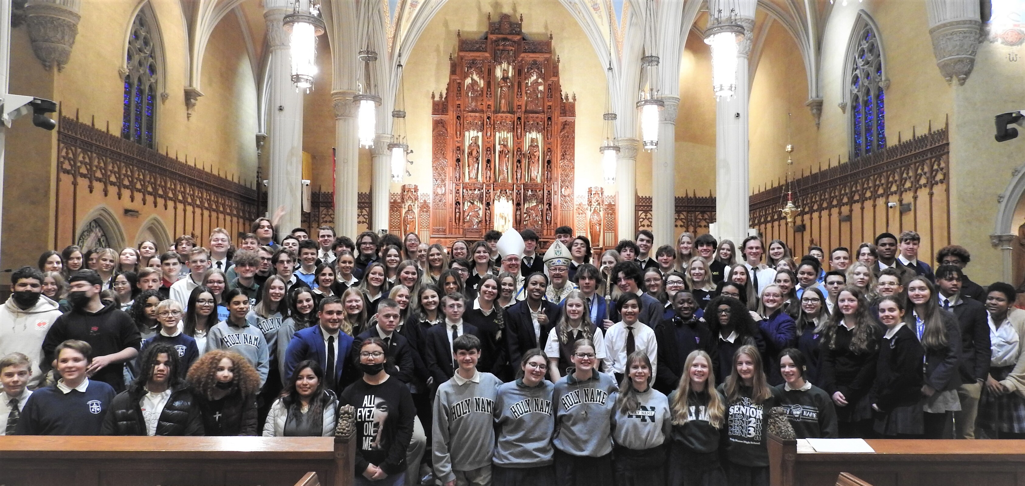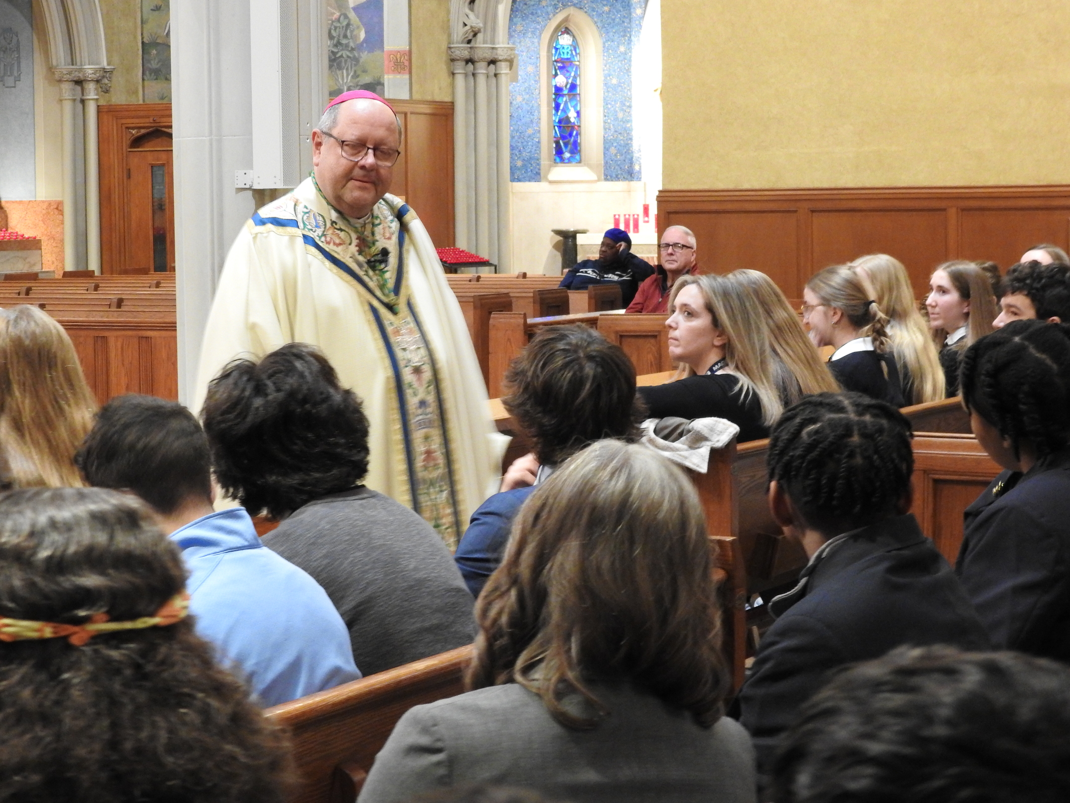 He also reminded the students and others gathered for the Mass and watching the livestream that they are “made glorious in the sight of the Lord because God loves you and God has loved you and me into life. Are we listening? Do we believe? Do you believe that God’s word to you and to me is true?” he asked.