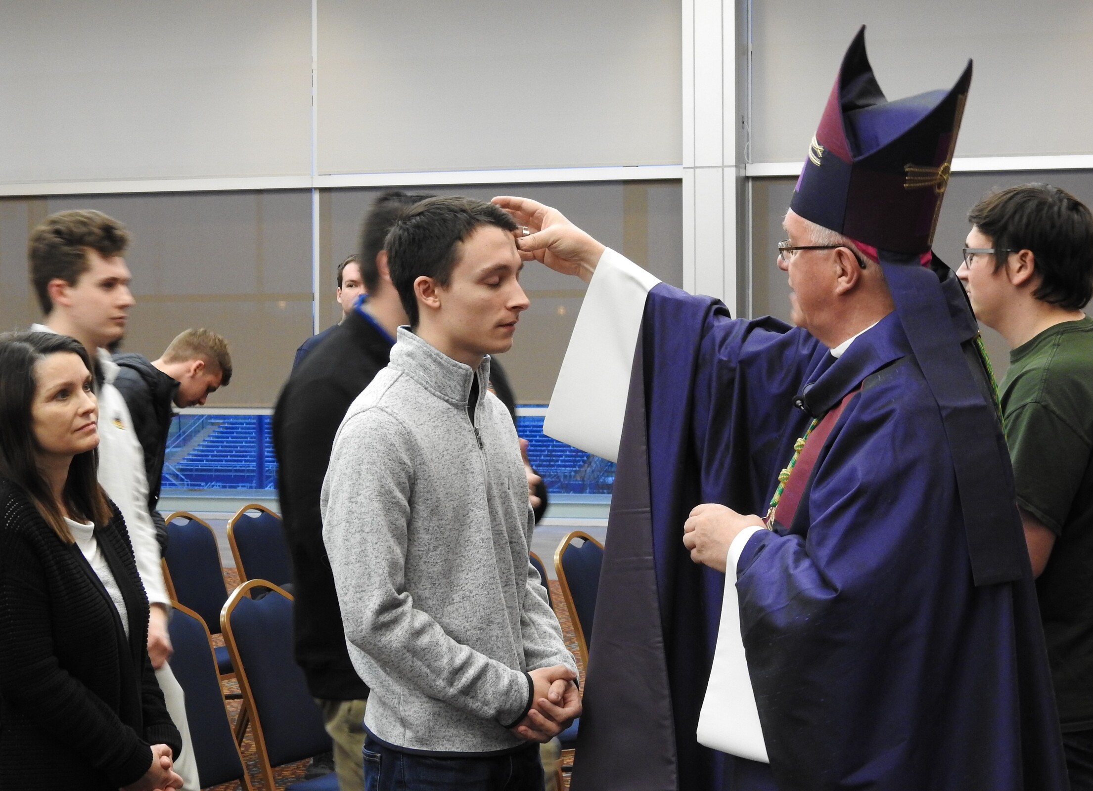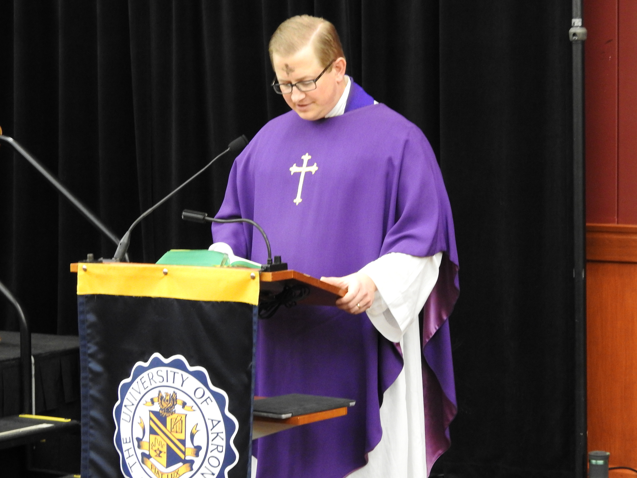 Father Chris Zerucha, the pastor of nearby St. Bernard and St. Mary parishes in downtown Akron, doubles as the Roo Catholic chaplain. He concelebrated the Ash Wednesday Mass with Bishop Woost.