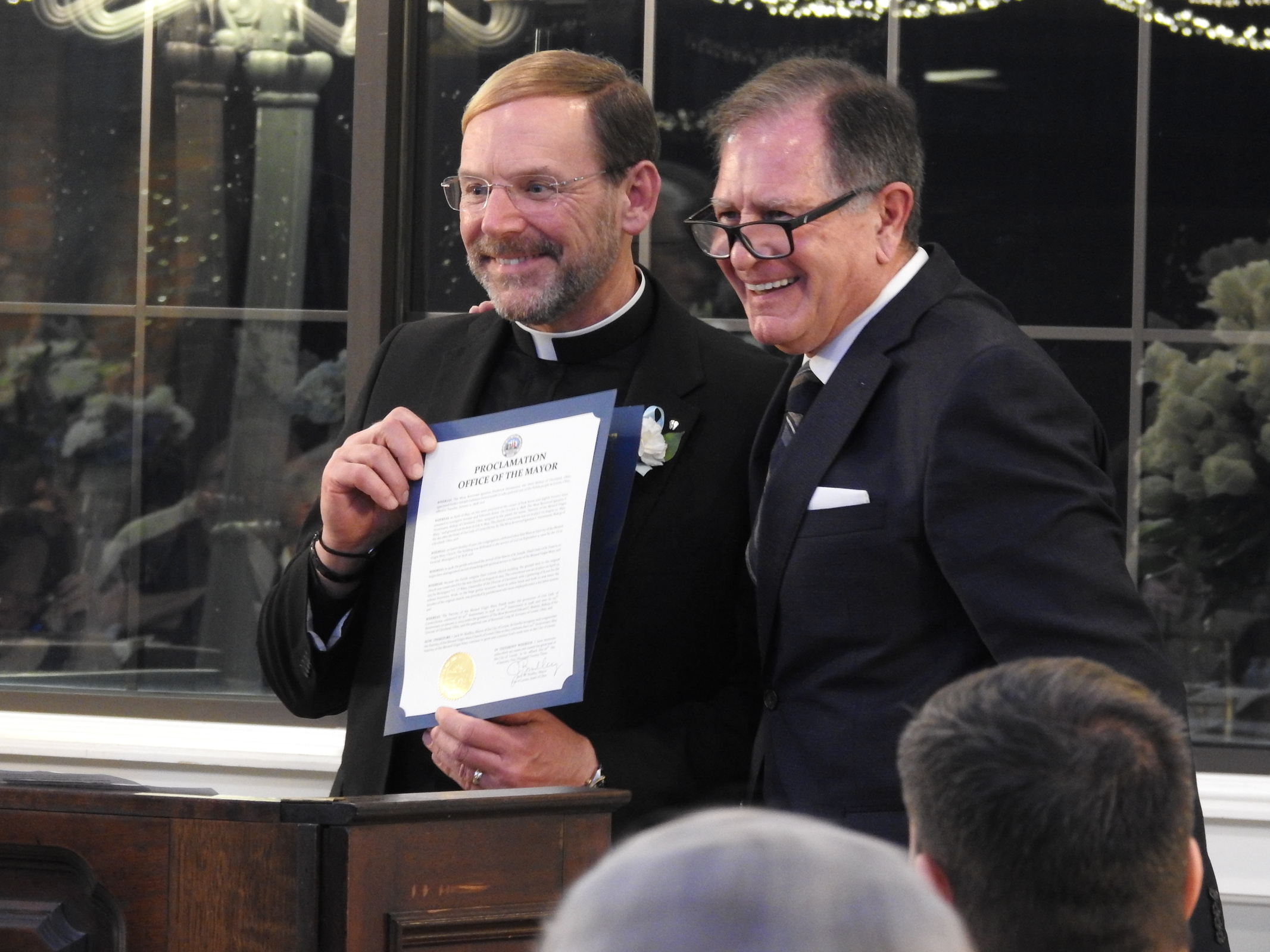 Lorain Mayor Jack Bradley presented Father Hovanec with proclamation and two members of City Council – Mary Springowski, who is a parishioner, and Cory Shawver – presented a council resolution.