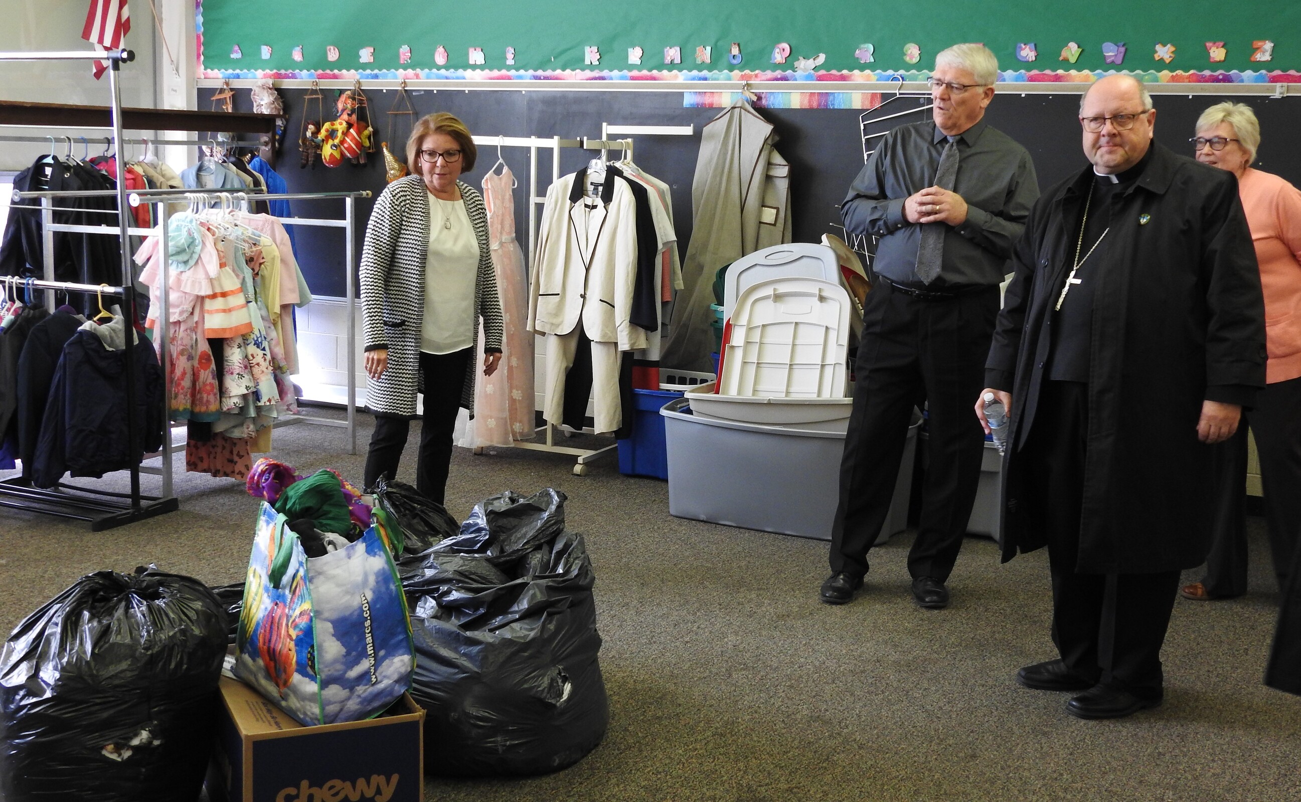 After Mass, the bishop toured the Kenmore Free Store, a community outreach program located in the former Immaculate Conception School. The store is a partnership with nearby Park United Methodist Church. People in need can “shop” for clothing, household items and furniture during store hours. They also can receive a brown bag meal and information about other resources.