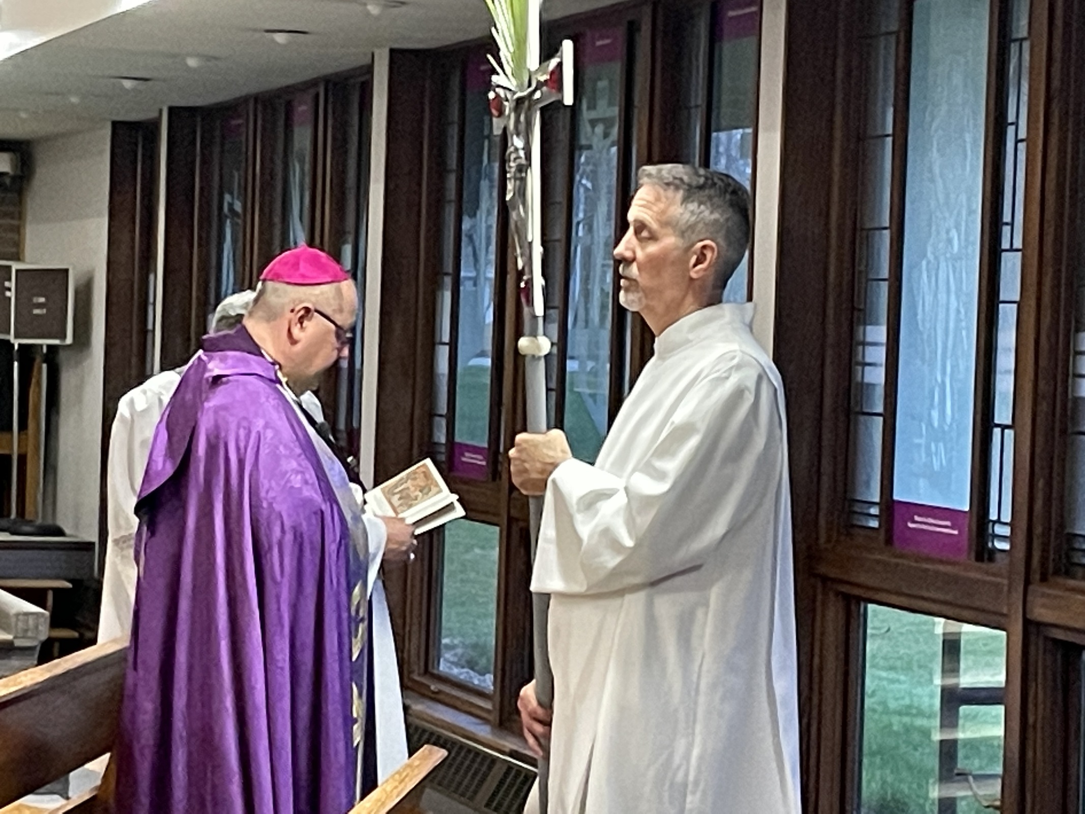 After praying Stations of the Cross, the bishop shared some thoughts with the congregation. He recalled growing up in a parish named St. John the Evangelist, which is the name of the mother church of the Cleveland Diocese.