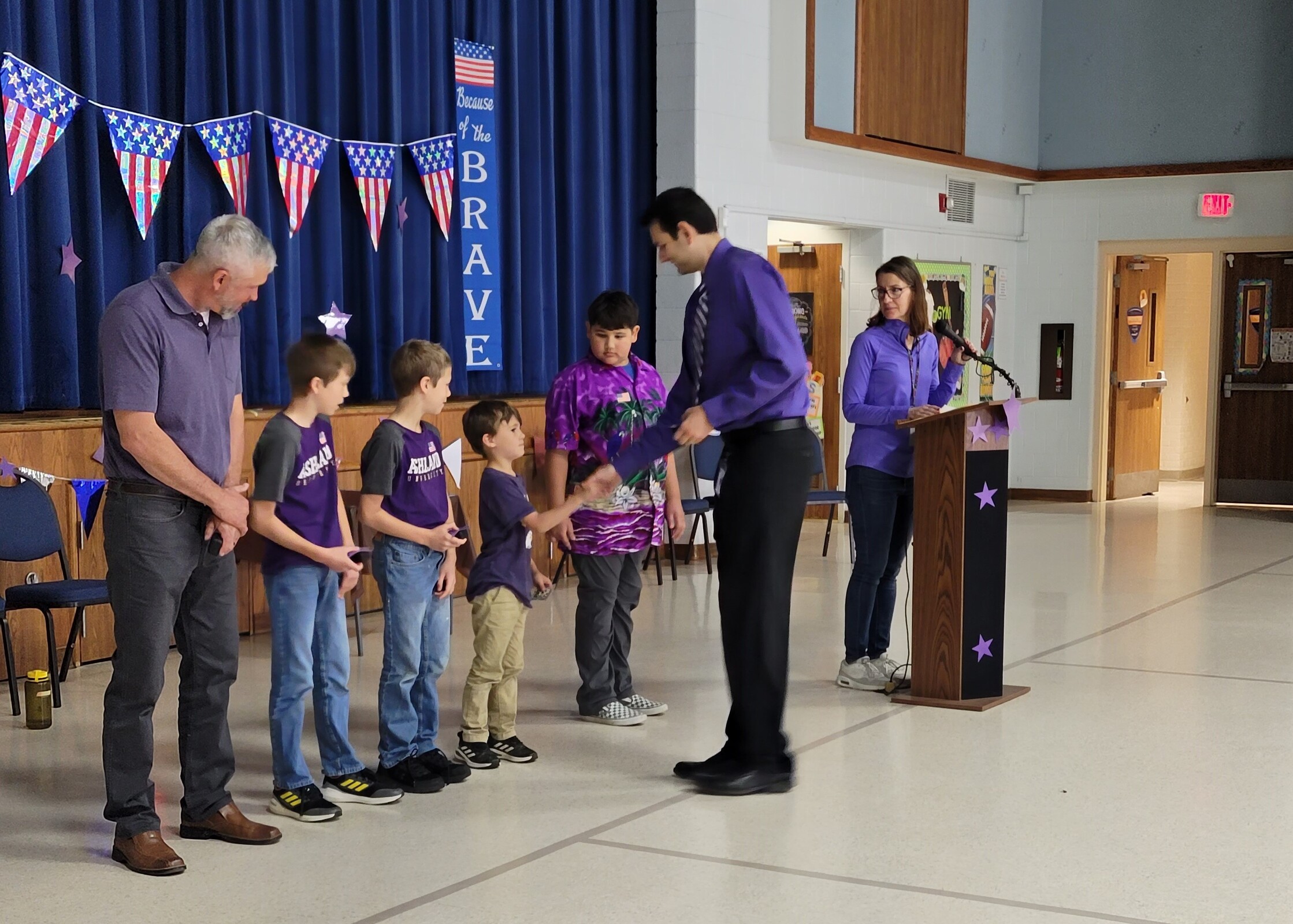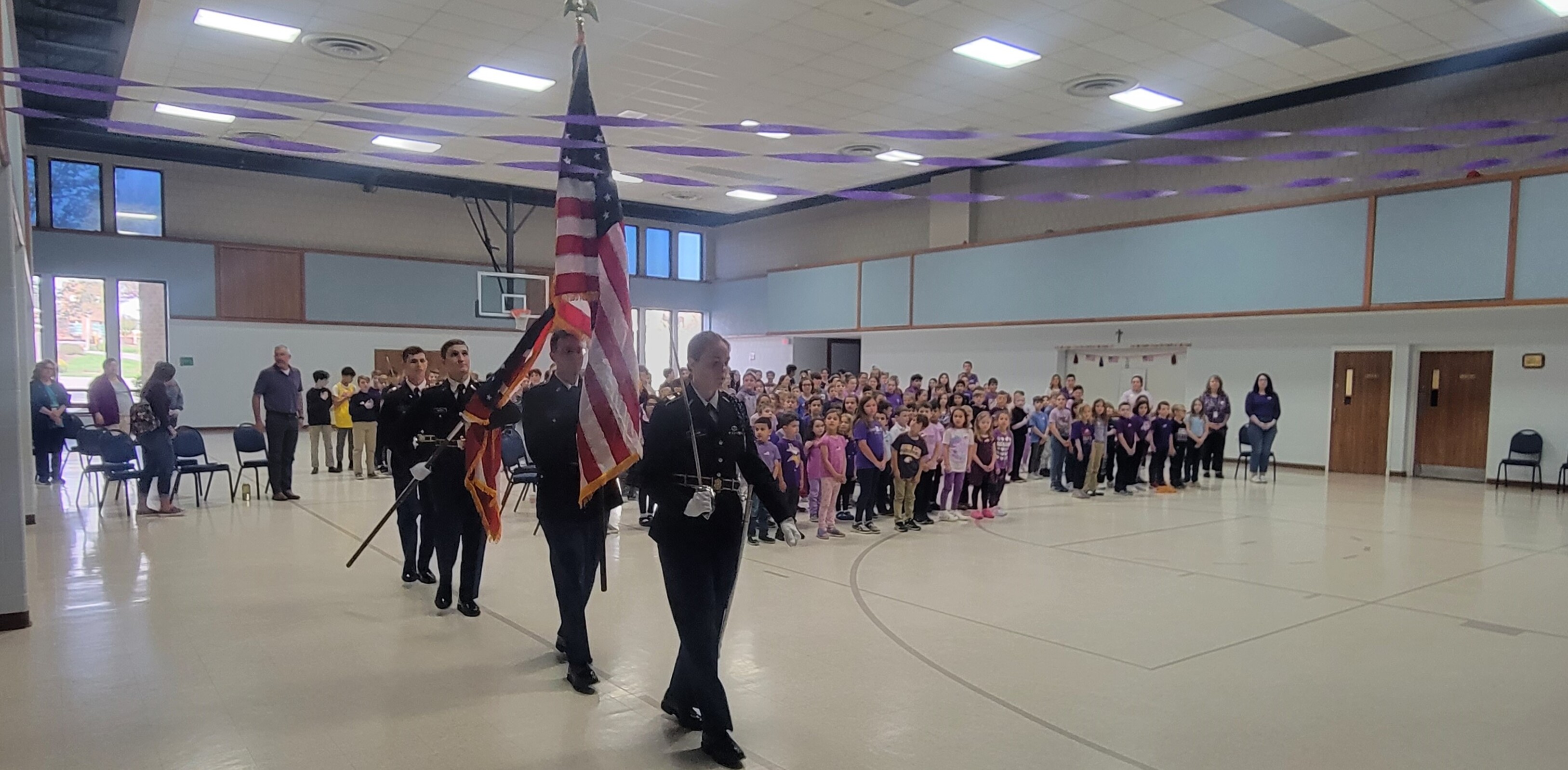 The school celebrated with a “Purple Up Rally” to recognize the children of military personnel currently attending the school.