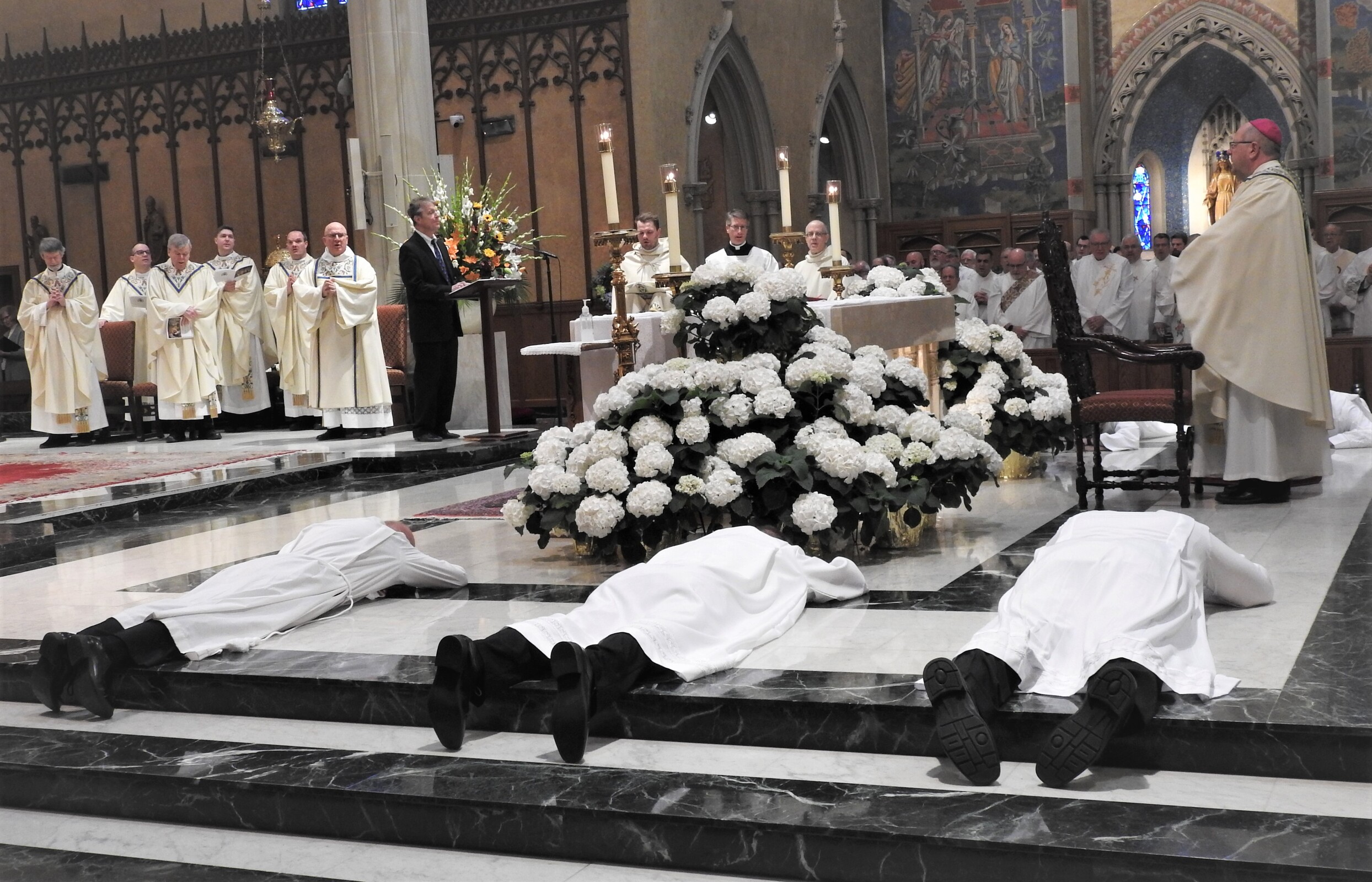 Recalling his own ordination as a deacon, Bishop Malesic said one of the most moving experiences was when he laid prostrate in front of the altar. “Men, when you lay down on the floor today before the altar of God, see it as a symbol of the life you are offering to God and God’s Church, just as Jesus offered his life for you.”