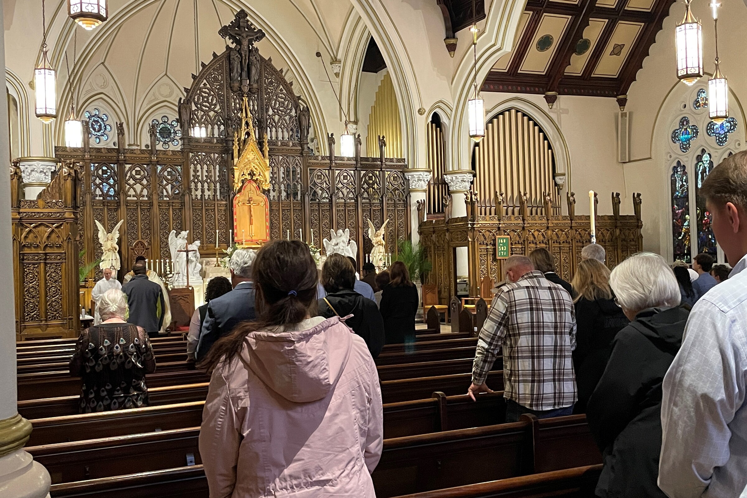 The following day – April 30 – some of the group attended Mass at the Conversion of St. Paul Shrine and had a chance to view the mural, which is on the floor in a second-floor chapel of the shrine. The Poor Clares of Perpetual Adoration have been in Cleveland since 1921 and the adoration monastery was founded in 1931.