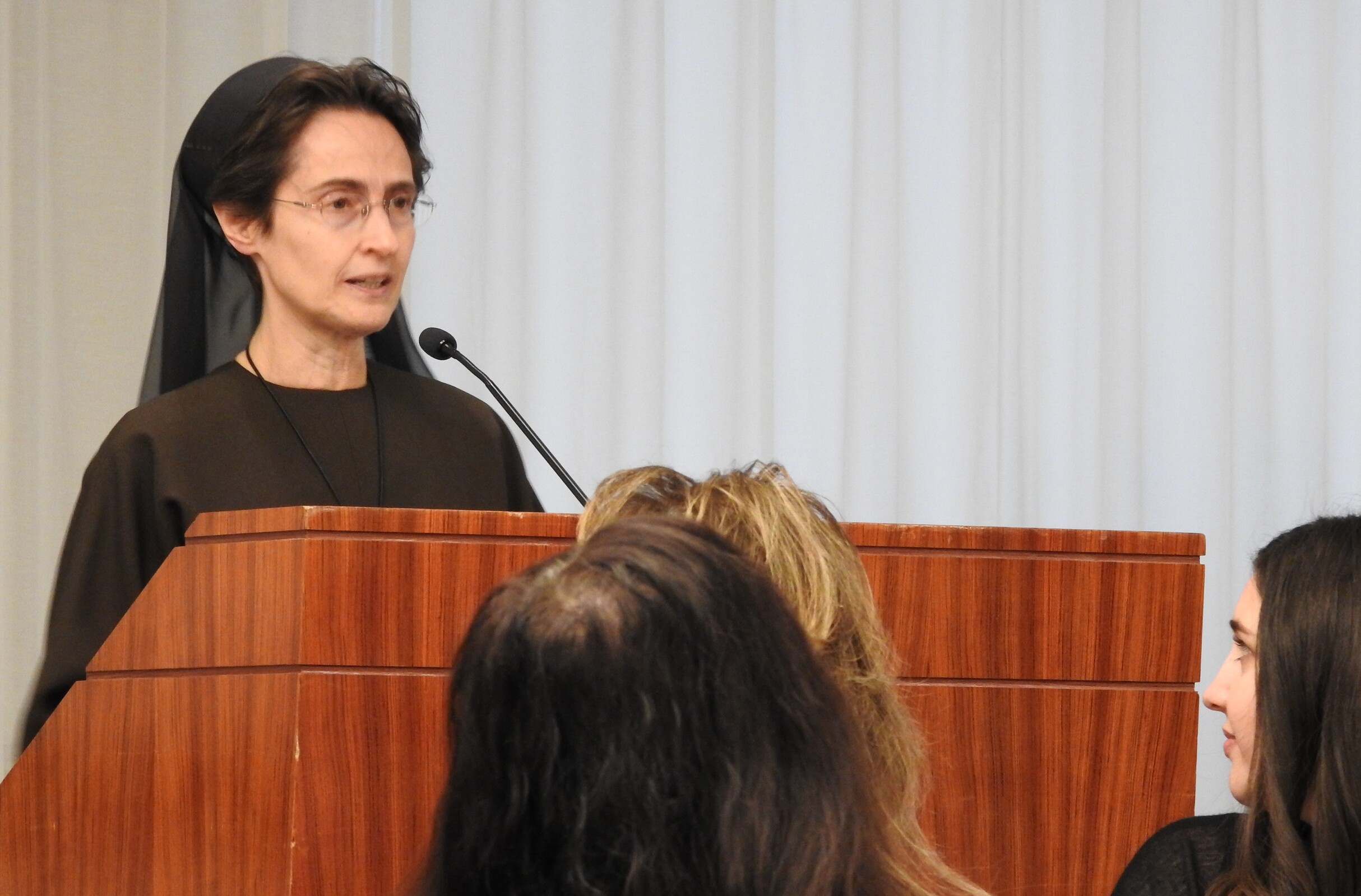 Sister Petrini briefly explained the operation of the Vatican City State, noting it became independent of Italy in 1929. At about a half-square kilometer (about 121 acres), it has about 450 residents and is the smallest country in the world. About 700 people work for the museums and about 2,000 for the city state, she said, most of whom are lay people.