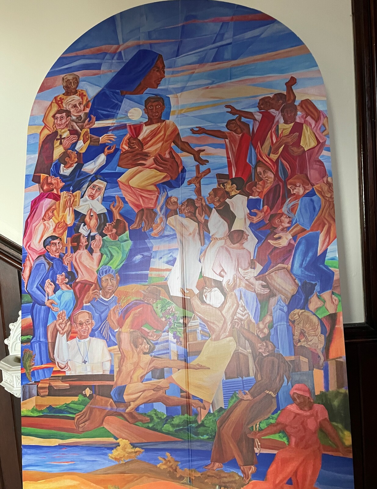 Mother Mary Thomas’ mural originally was commissioned by a parish in Philadelphia, Pennsylvania. However, the parish closed. She adapted the painting and efforts are underway to find a permanent home for it.