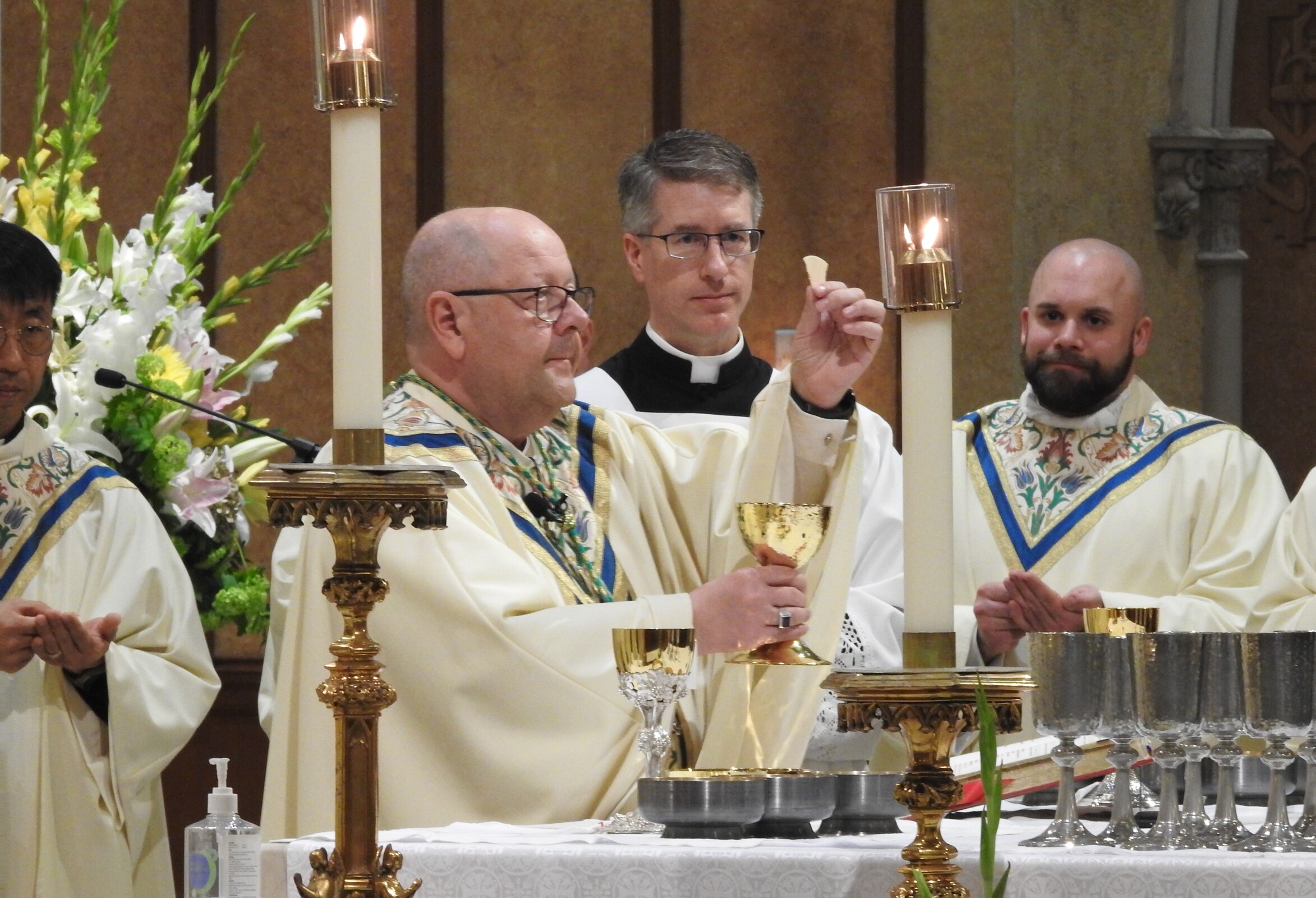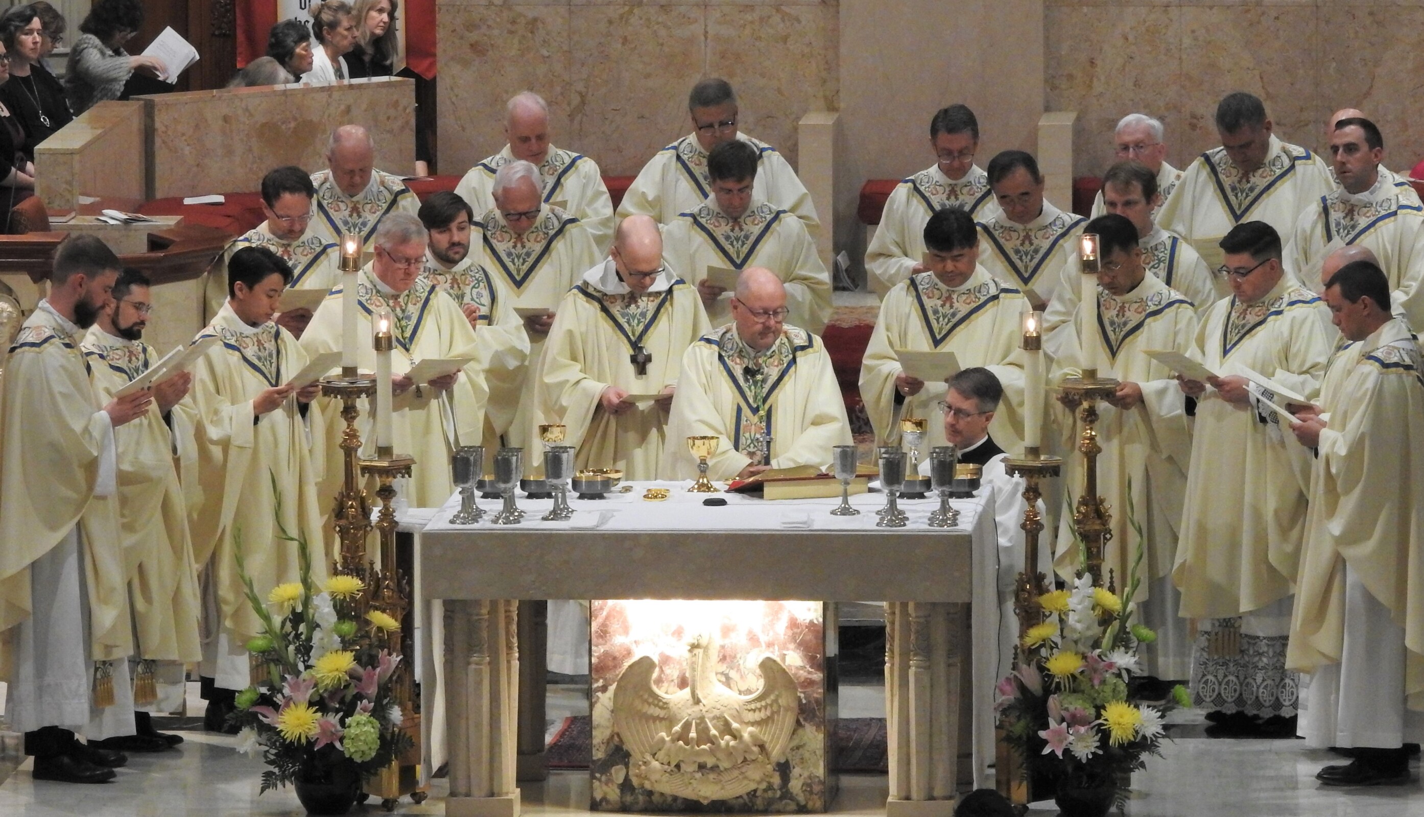After ordination, the six new priests joined the concelebrants – including Bishop Malesic, Axillary Bishop Michael Woost, Daegu Auxiliary Bishop Don Bosco Shin-Ho Chang, Abbot Gary Hoover, OSB, their pastors, seminary faculty and diocesan vicars -- around the altar to finish celebrating Mass.