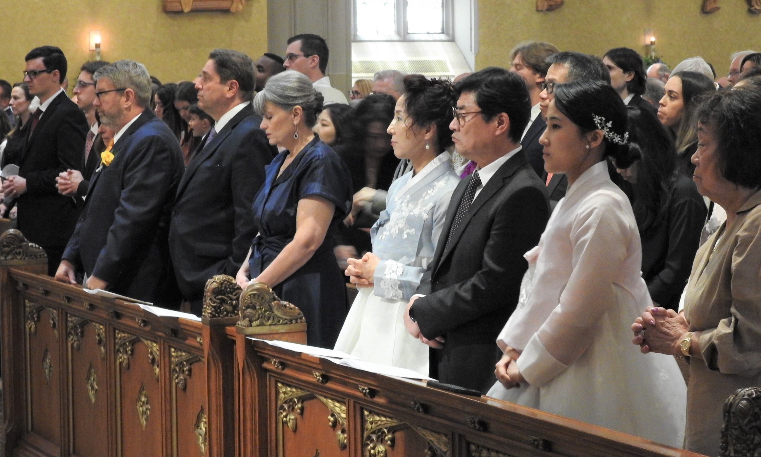 Four priest friends of Father Han traveled from South Korea for the ordination liturgy. Three were classmates before he entered the seminary here and the fourth was his former pastor. Many of his family members also made the trip to attend the ordination and one of his sisters proclaimed a reading in Korean.