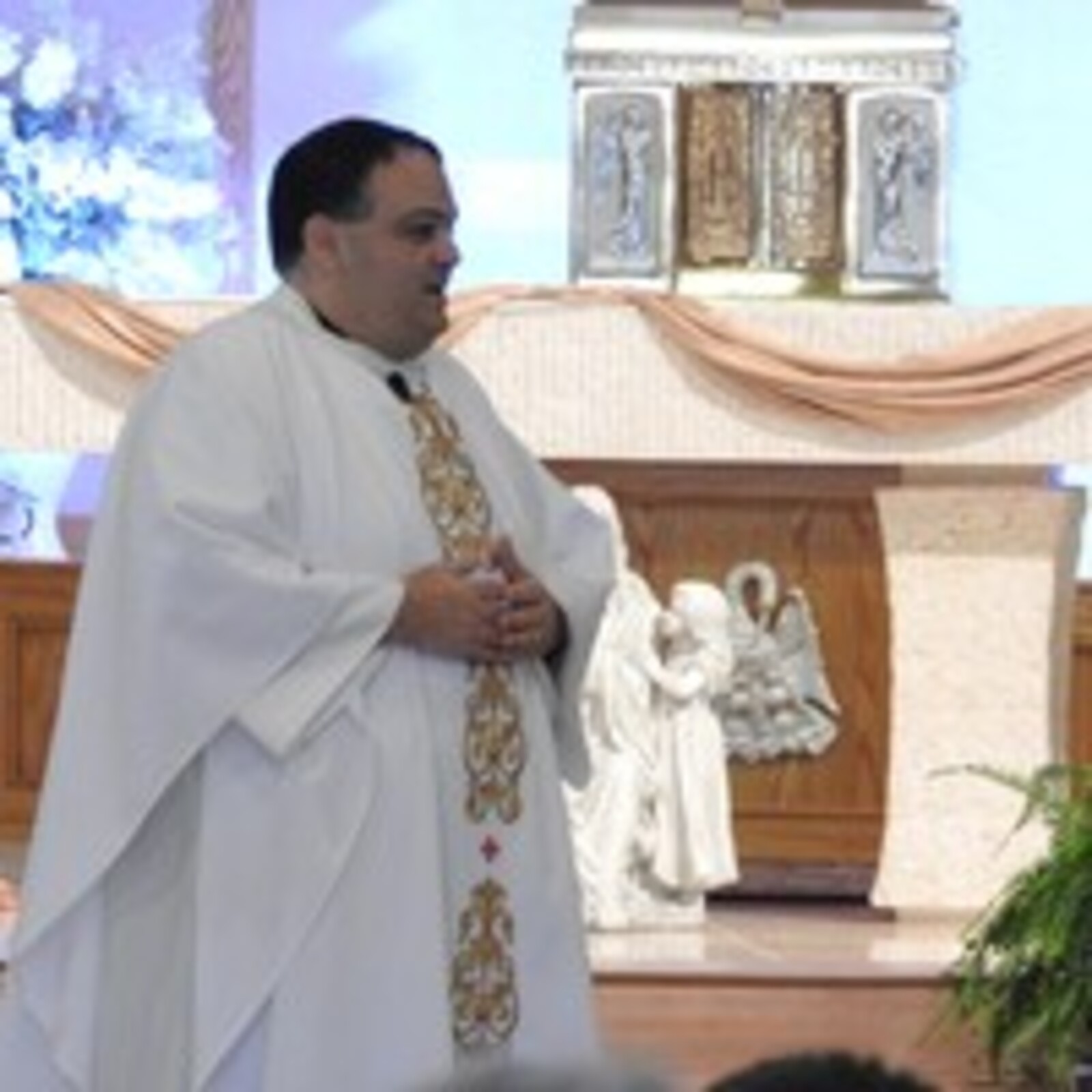 Father Betters said introducing the No Place for Hate chapter at the school was an important contribution. “It reminds us that each of us is loved for who we are. She does it well,” he said, referring to Garuckas’ method of teaching. “Jesus is your role model so we got you a model of him,” he added, pointing to a large garden statue of a smiling Jesus with two children that was sitting in front of the altar. The gift was presented to Garuckas in appreciation for her years of service to SS. Robert and William. “You never shied away from hard work and never said no when asked to do something. You treated people with the dignity and respect of being created in the image and likeness of God,” he added.