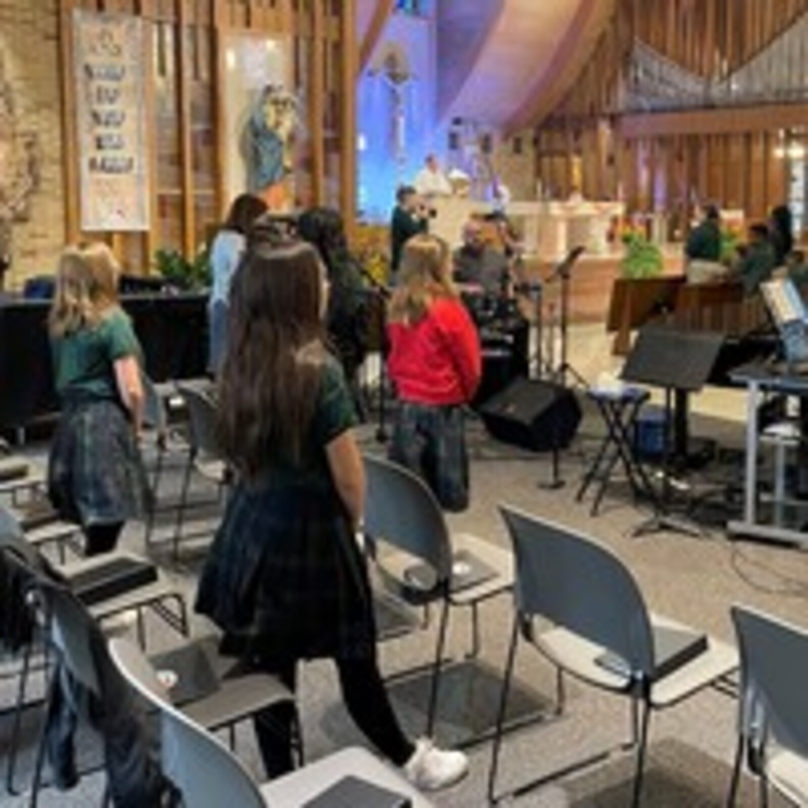 “Saints follow Jesus. Scholars learn and become the people God wants them to be,” he told the students, teachers, parents and others gathered in the church for Mass. “The whole reason we’re here is to grow closer to Jesus.”