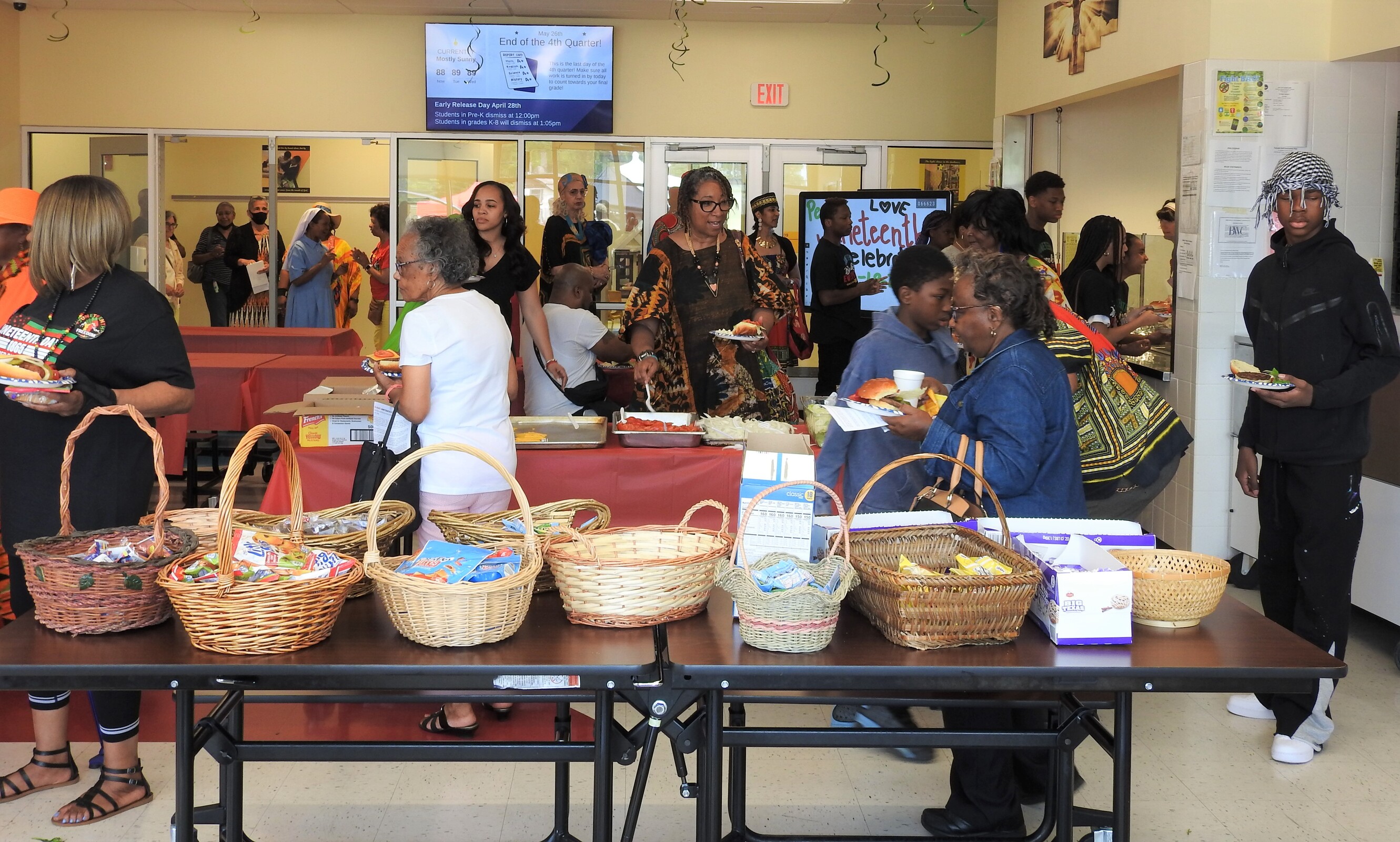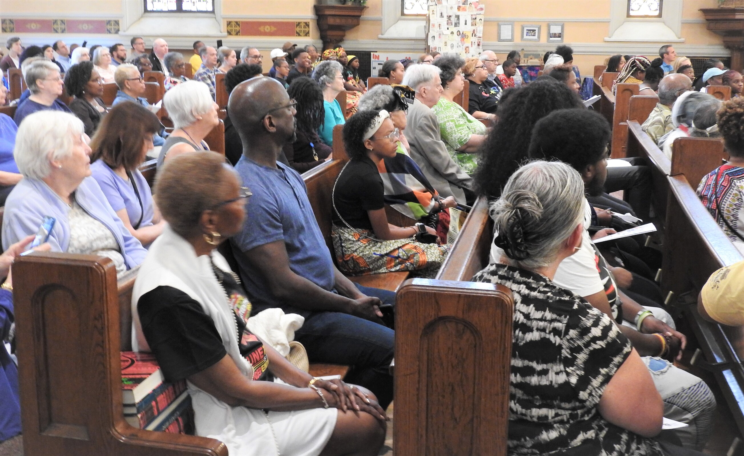 Faithful from across the area, many dressed in colorful clothing and others in special Juneteenth T-shirts, gathered in the church for Mass. The Diocesan Gospel Choir and musicians provided music and song for the liturgy.