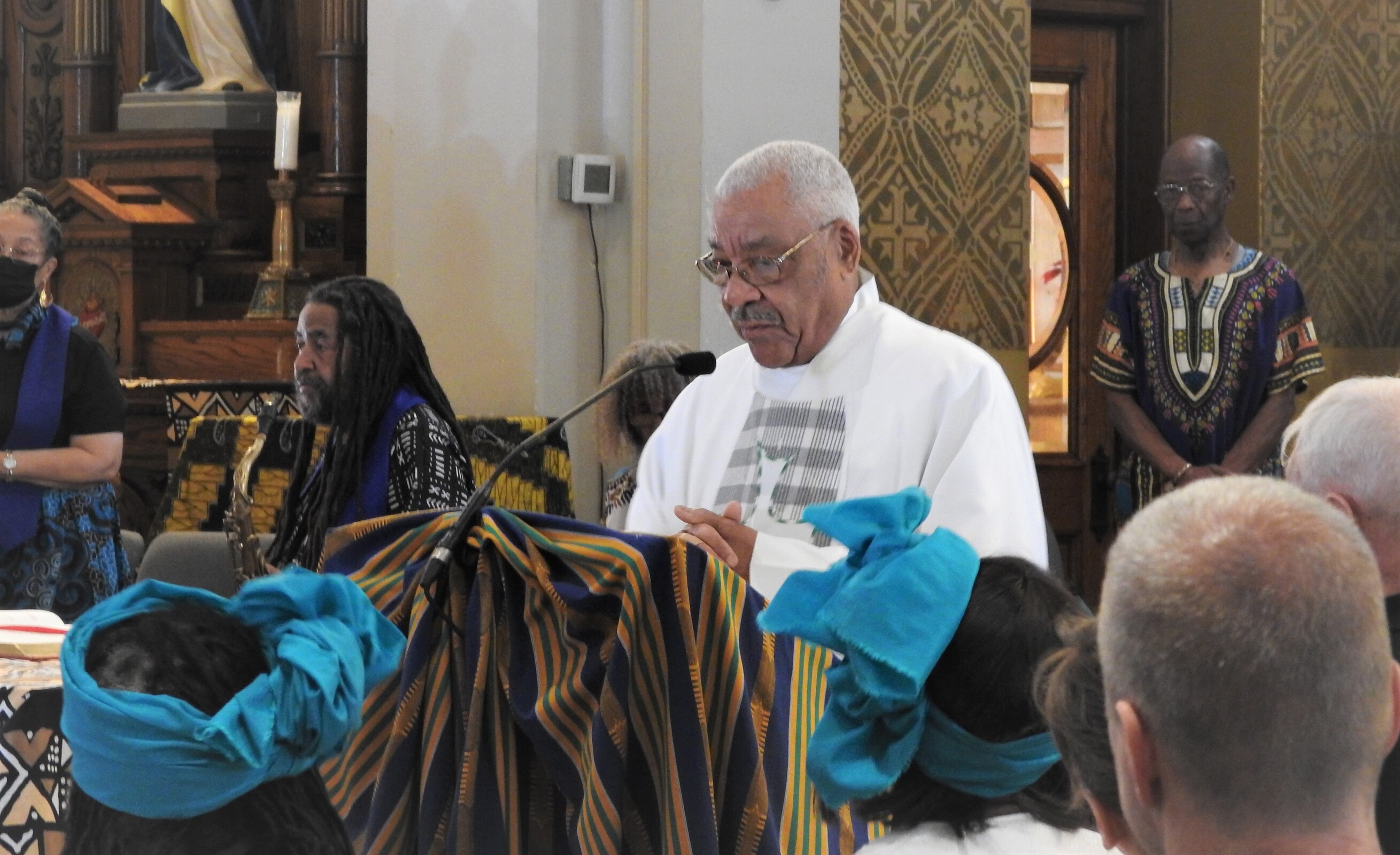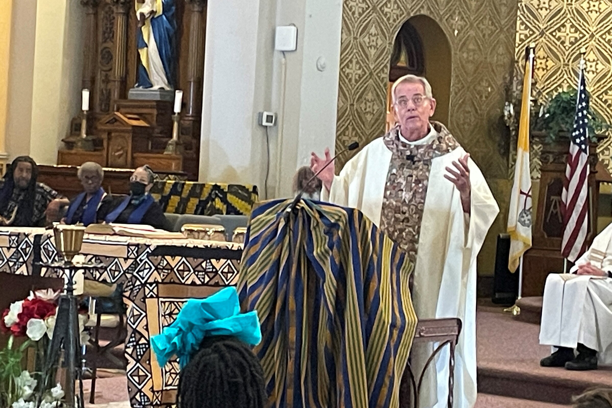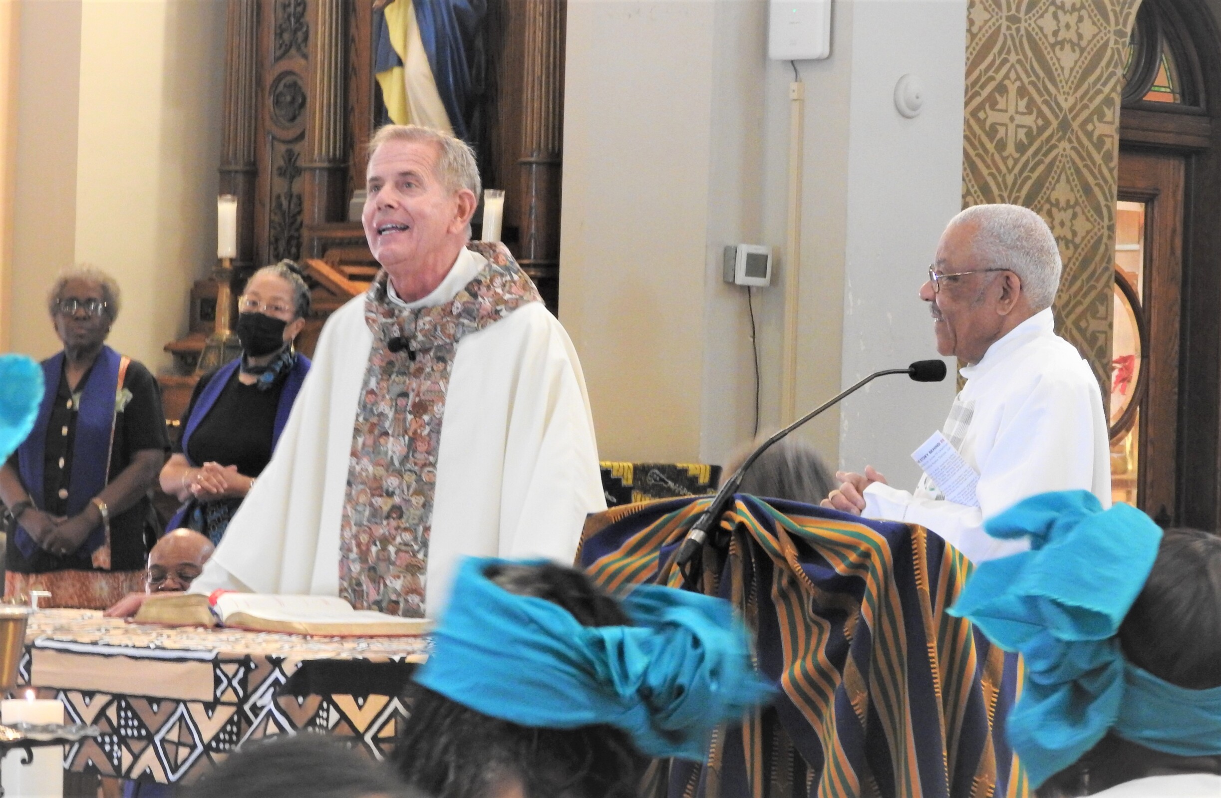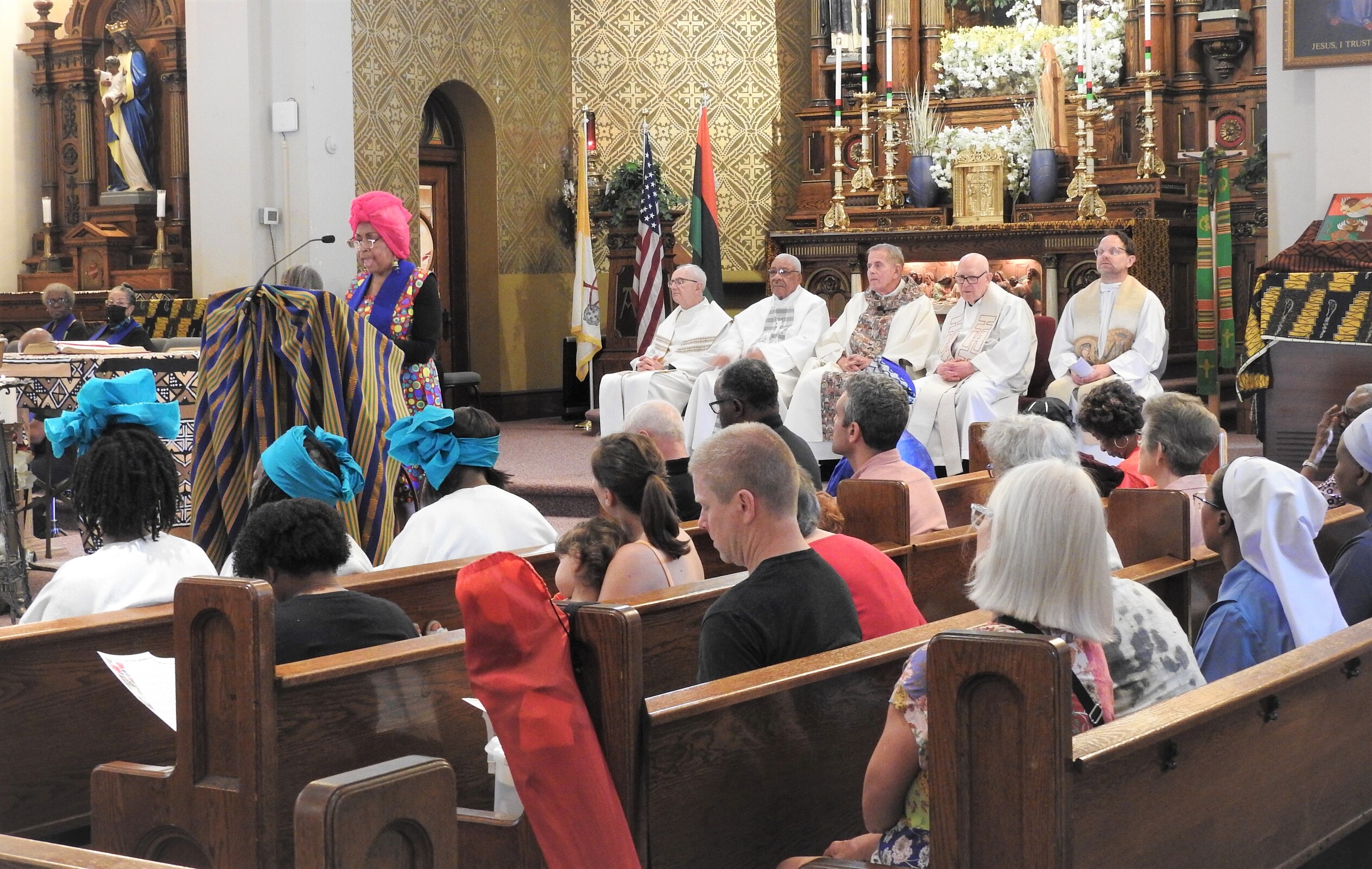After the clergy processed in, Father Fanta welcomed the congregation noting, “Juneteenth is not just a day of celebration for African Americans. It’s also a day of celebration for me. If we are truly brothers and sisters, your story is my story. Your pain is my pain and your joy is my joy. Your freedom is my freedom, too. His love unites us all and binds us all as one family,” he said.