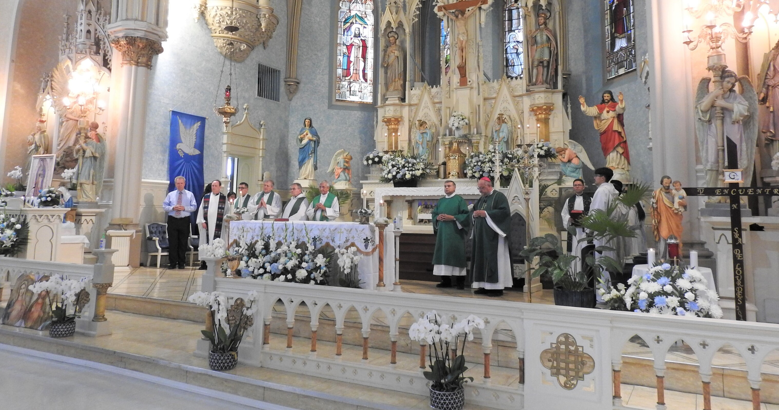 The bishop noted that Our Lady of Lourdes was founded as a Bohemian parish in 1883 primarily to serve the growing Czech and Slovak population in the area. Over the years, demographics changed and a number of Hispanics from places like Venezuela, El Salvador, Puerto Rico and Mexico began settling in the area. Today, the parish has a robust Hispanic congregation and celebrates Mass in Spanish at 12:30 p.m. every Sunday in addition to the regular Masses in English. Father Callahan is fluent in Spanish.