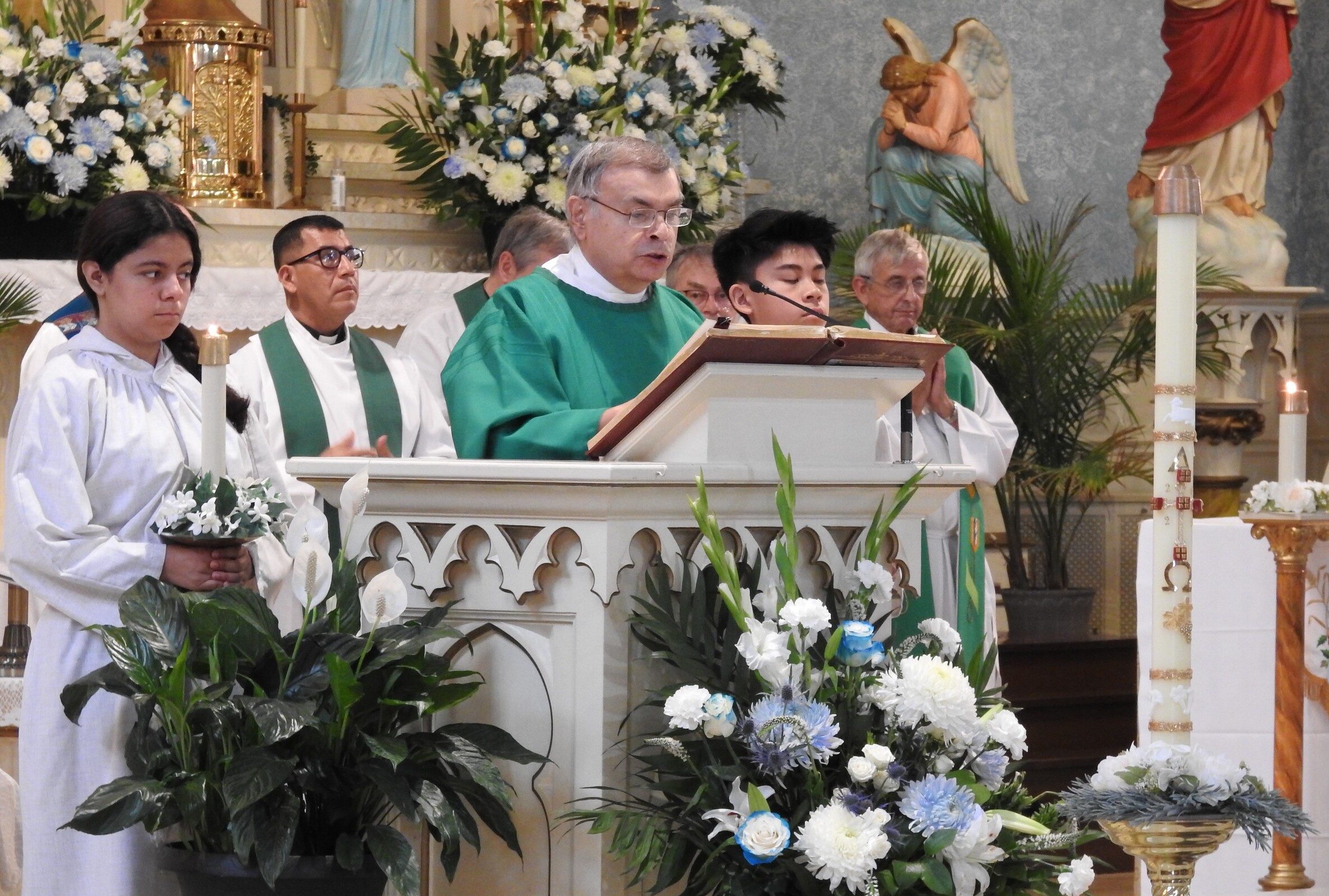 Regarding service, the bishop said we gather together in a parish to find strength in each other. Caring for those in need, giving food to the hungry, making donations to the poor, fighting for what is right, defending the lives of the unborn, opposing what is wrong, welcoming the stranger, opposing racism and being like the Good Samaritan who cared for the suffering man he met along the road.