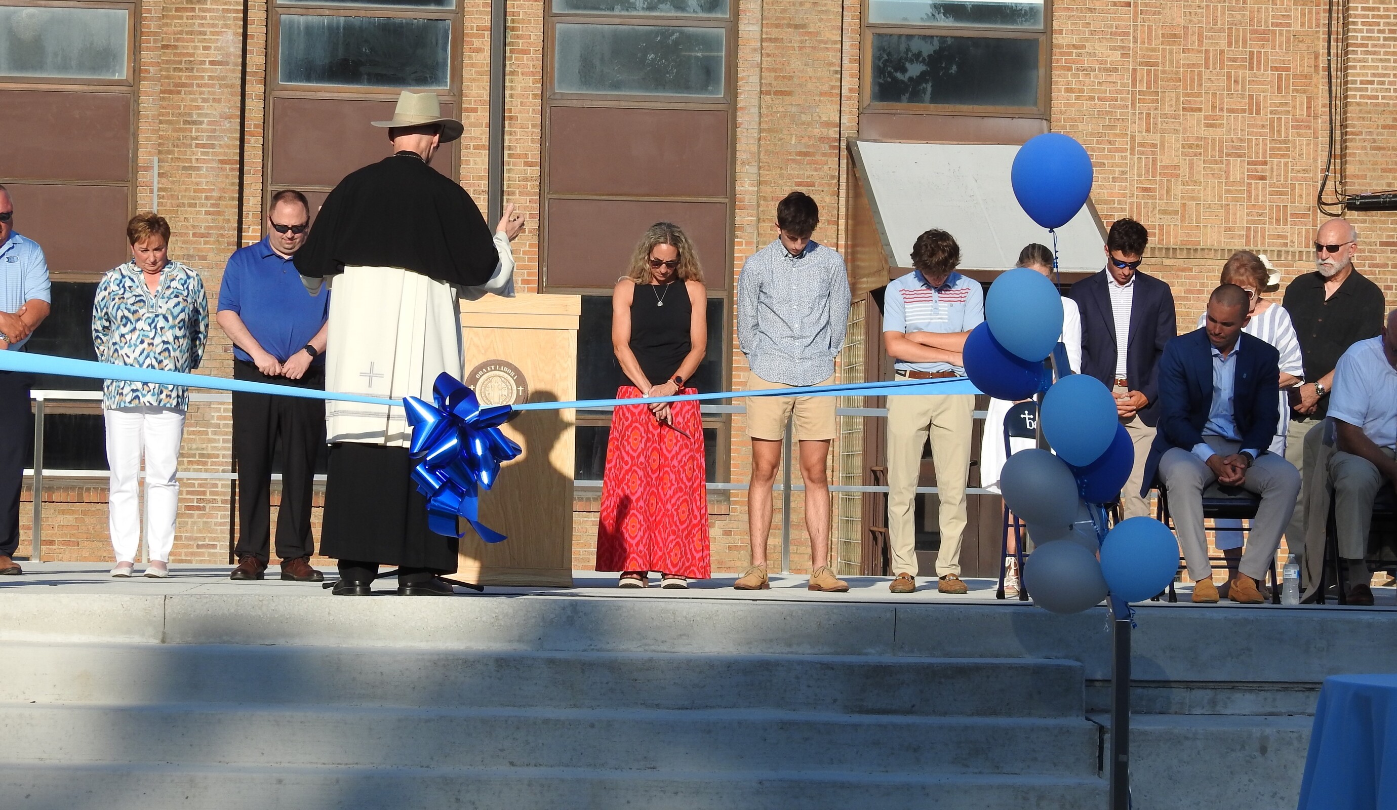 The Benedictine High School community gathered on July 27 for a special ceremony to bless and cut the ribbon for the new, recently completed Rufus Courtyard. The courtyard honors the late Joe Rufus, a longtime coach, athletic director and teacher at the school.