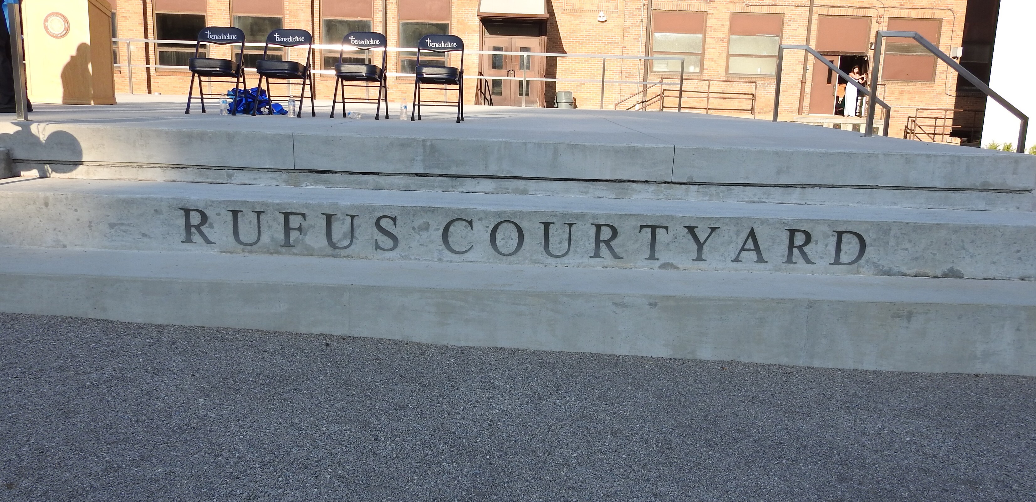 A plaque featuring highlights of Rufus’ years at Benedictine was installed near the courtyard, which sits between St. Andrew Abbey and the school building.