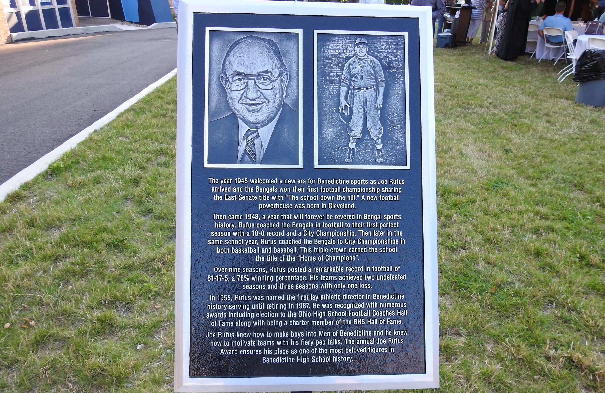 Those assembled – alumni, faculty, staff, monks, benefactors and others -- heard about Rufus from Chuck Palsa, the school’s 1968 Mr. Benedictine, who also was an assistant coach for the late Augie Bossu, a beloved longtime teacher, football and baseball coach at Benedictine. Palsa served on Bossu’s staff when the Bengals won the OHSAA Class AA state football championship in 1973.