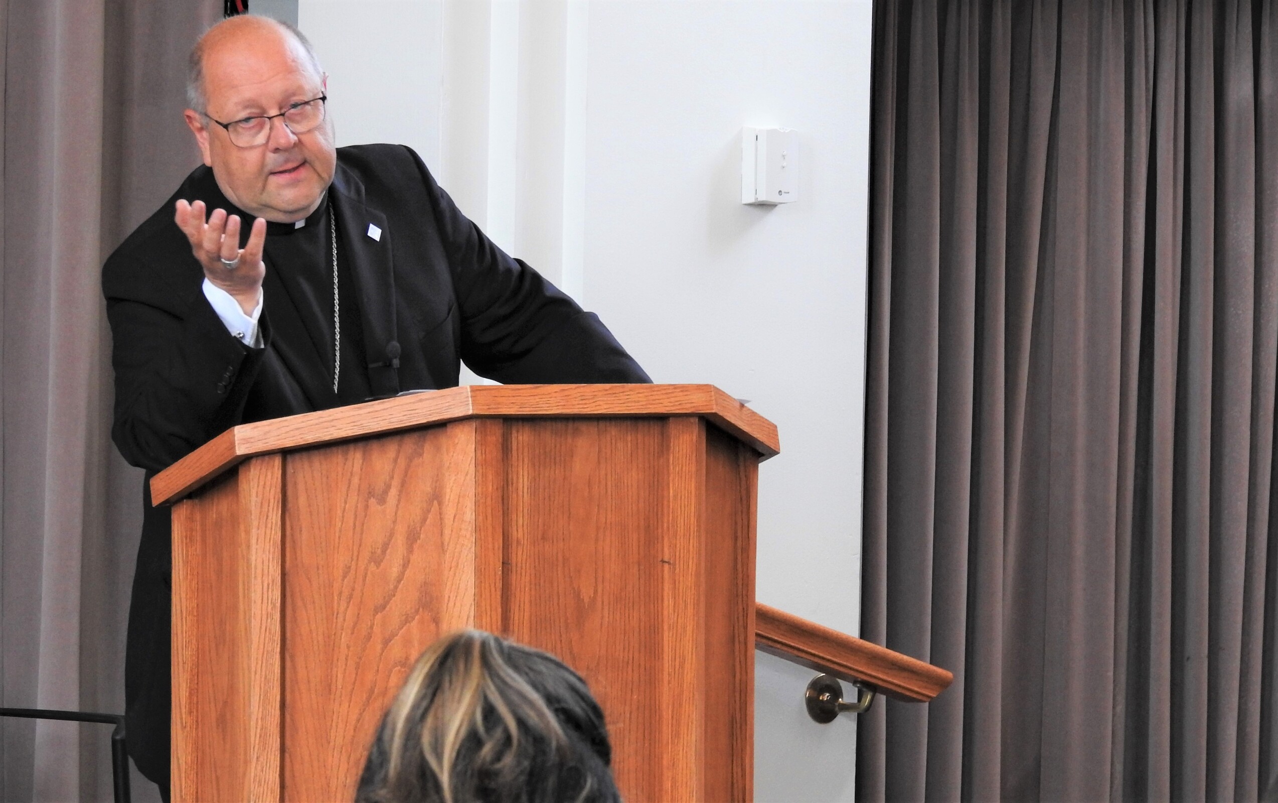 Bishop Edward Malesic spoke to the Blessed Carlo and St. Cecilia institute attendees on Aug. 8, congratulating all for their dedication and commitment to their ministries.