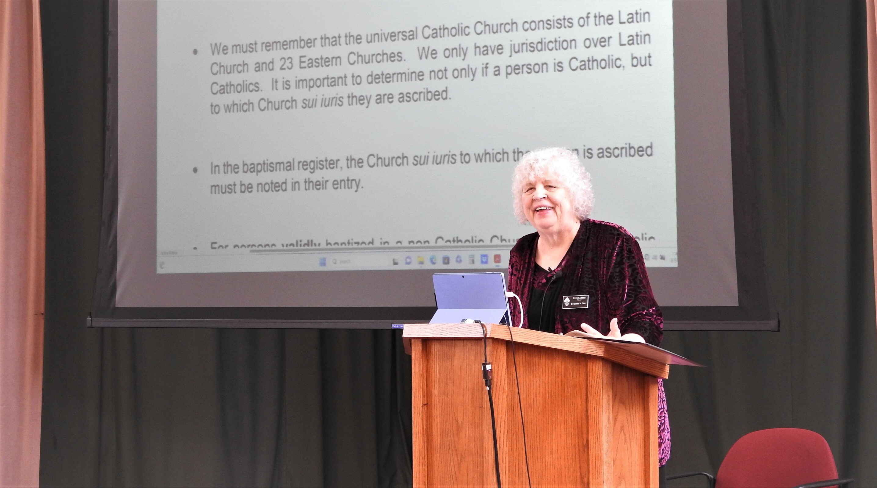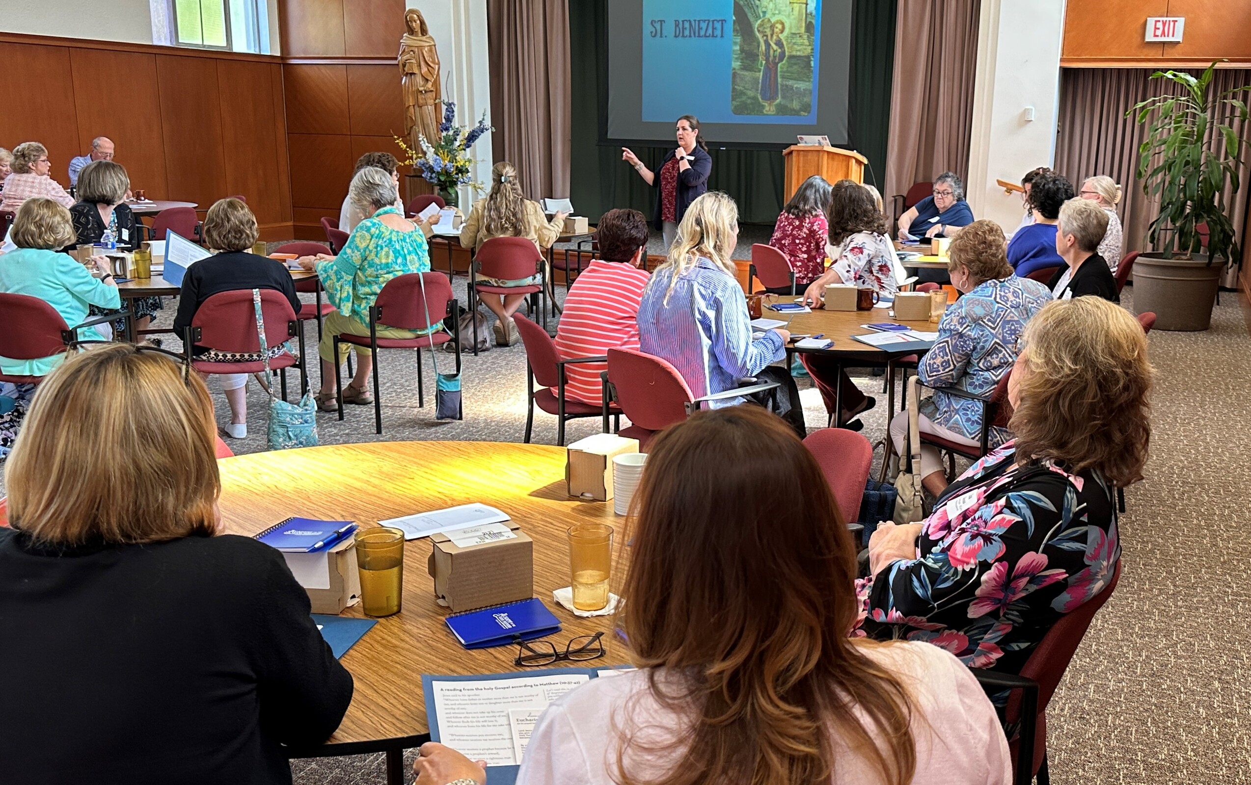 Parish secretaries attended the first Bridge Builders session on Aug. 9 to learn about how they – as the first contact at their parishes – can build a bridge to discipleship. Christy Cabaness, director of the diocesan Office for Missionary Discipleship, guided the 40 attendees through the morning sessions on radical hospitality, sacred listening, evangelizing encounters and serving like Jesus. Lynette Tait, a canon lawyer and judge in the diocesan tribunal, led the afternoon session on the importance of sacramental record-keeping