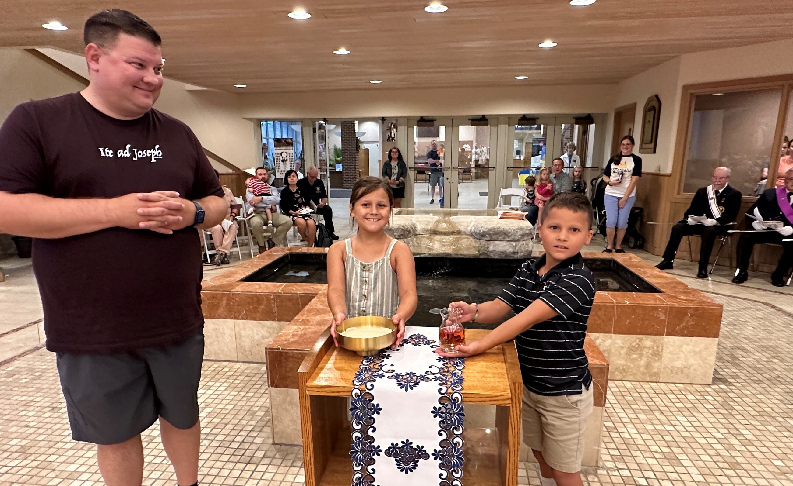 The third Mass was to be at Mercy Health Stadium, home of the Crushers baseball team, in Avon. But once again, it rained so St. Joseph Church in Avon Lake welcomed about 800 people to its worship space on Aug. 14. Father Ference said the rain didn’t dampen the enthusiasm of the faithful, who turned out in force despite the short notice about the change in plans.