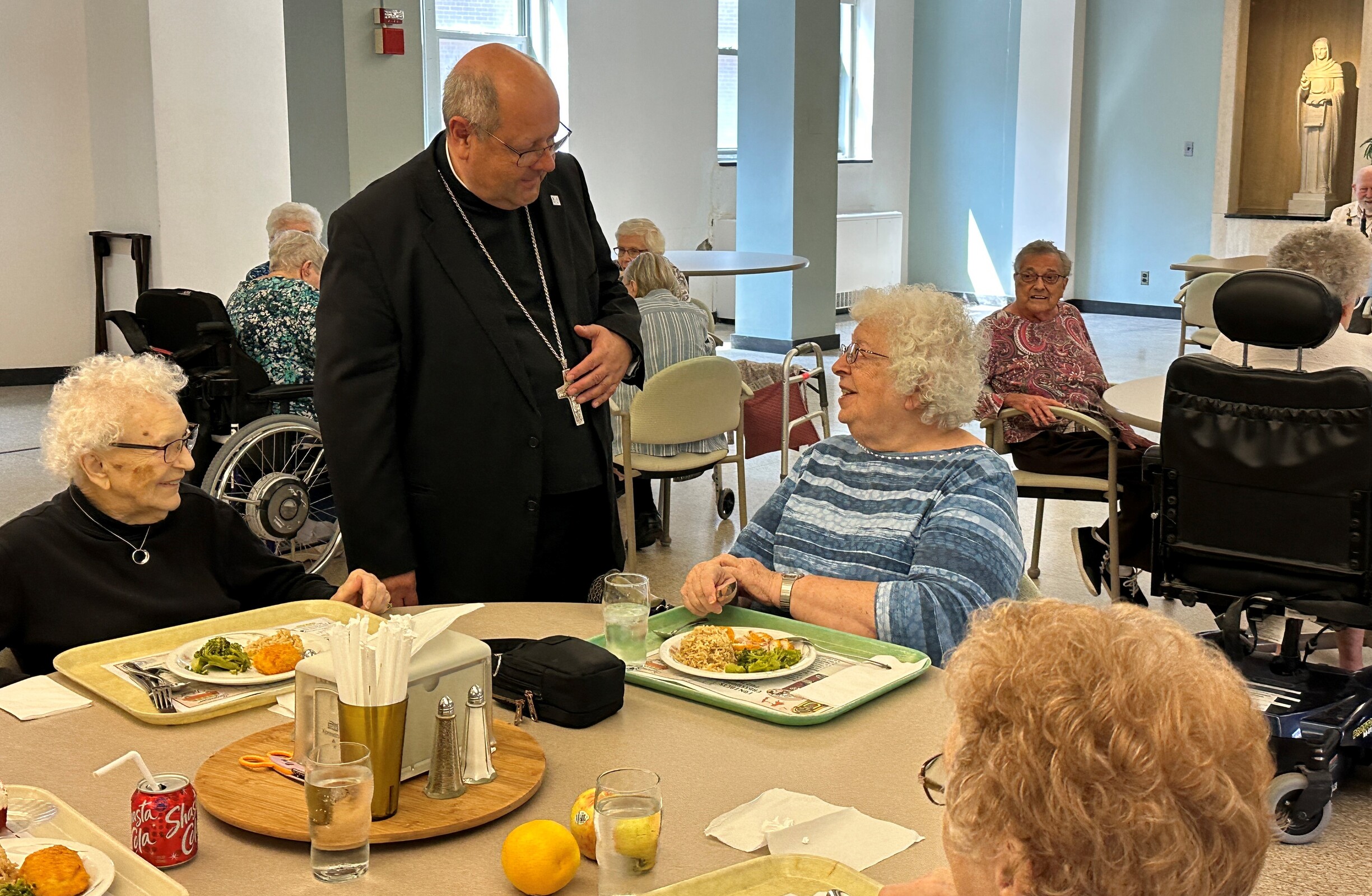 After Mass, the bishop joined some Regina residents in the dining room for lunch and conversation.