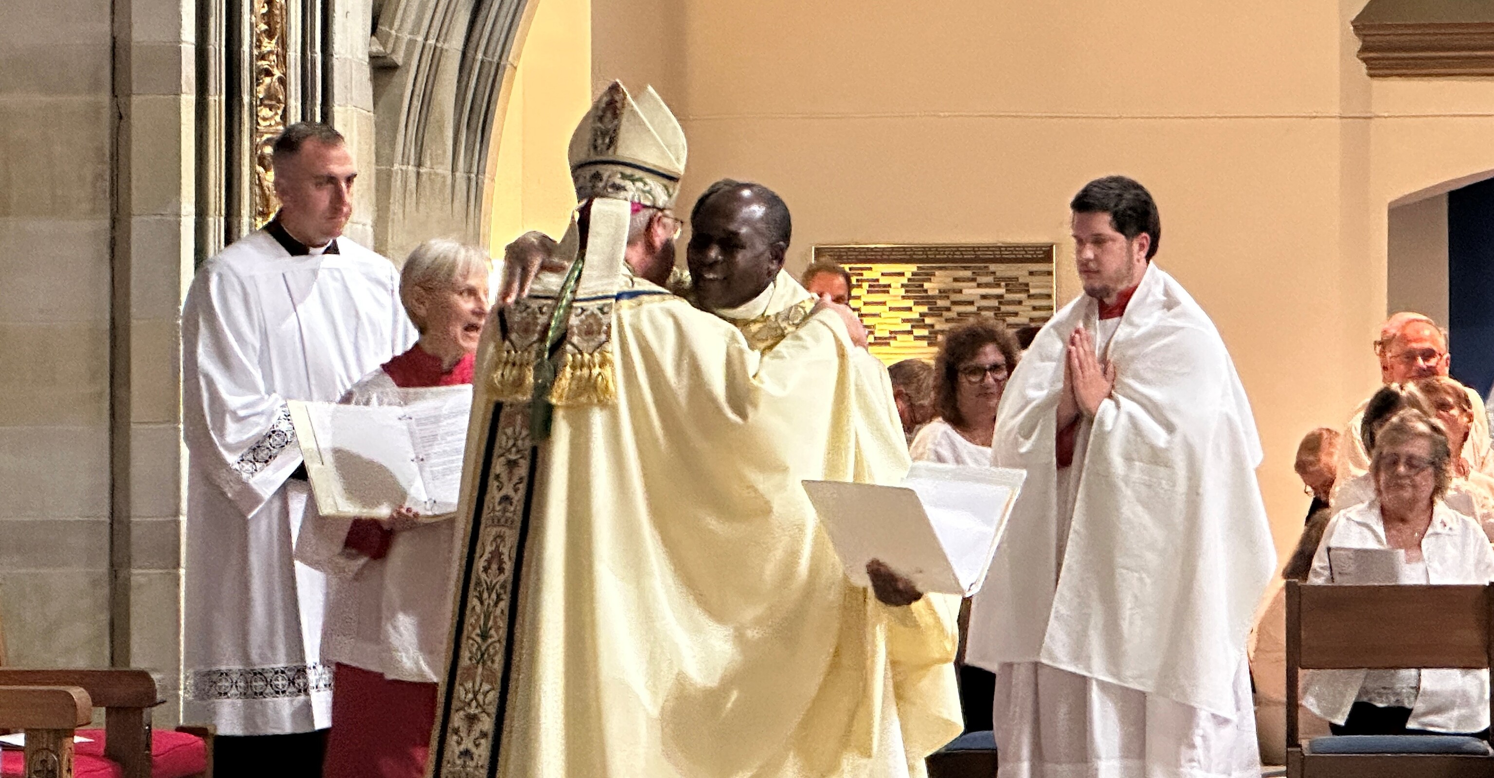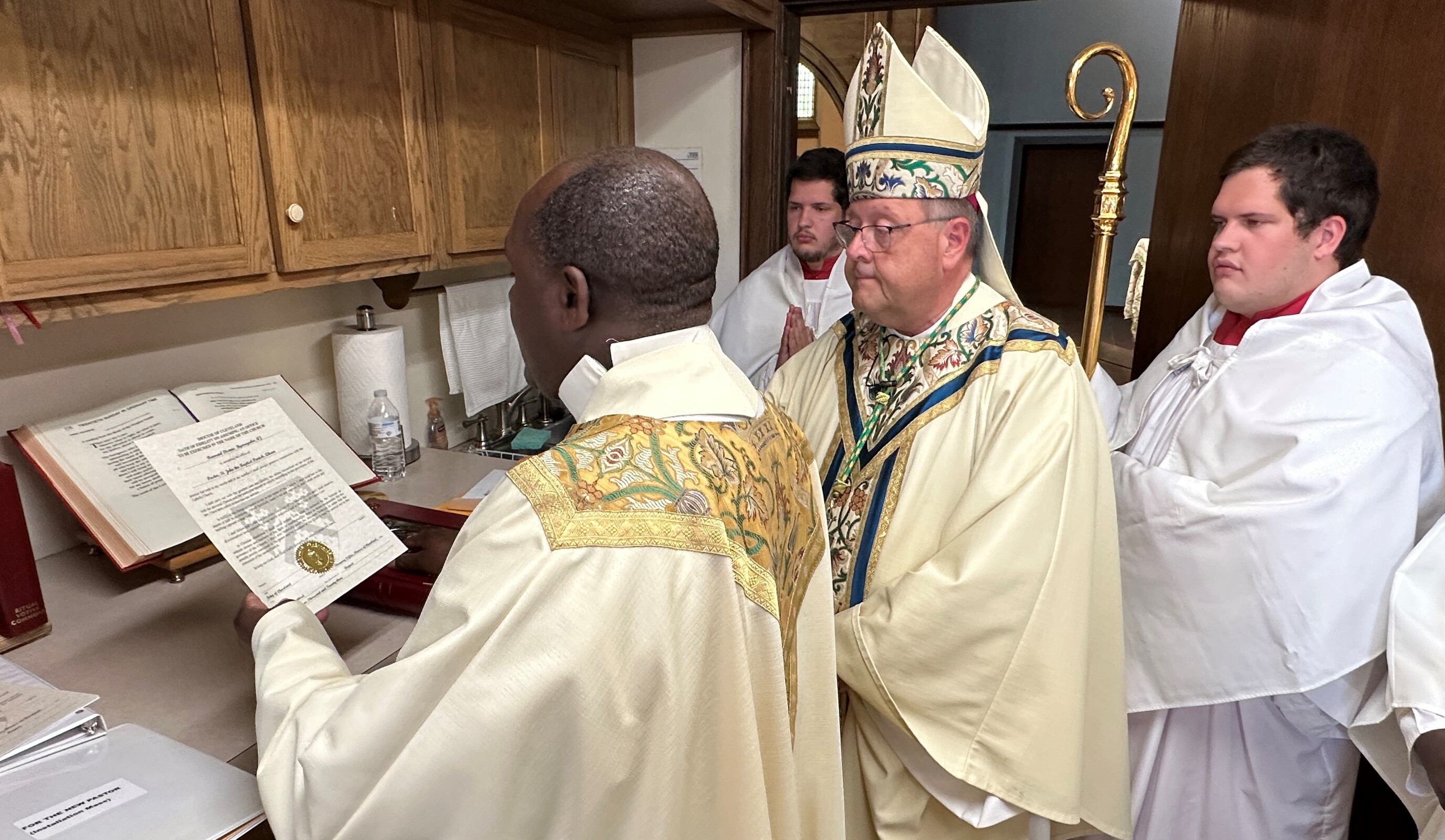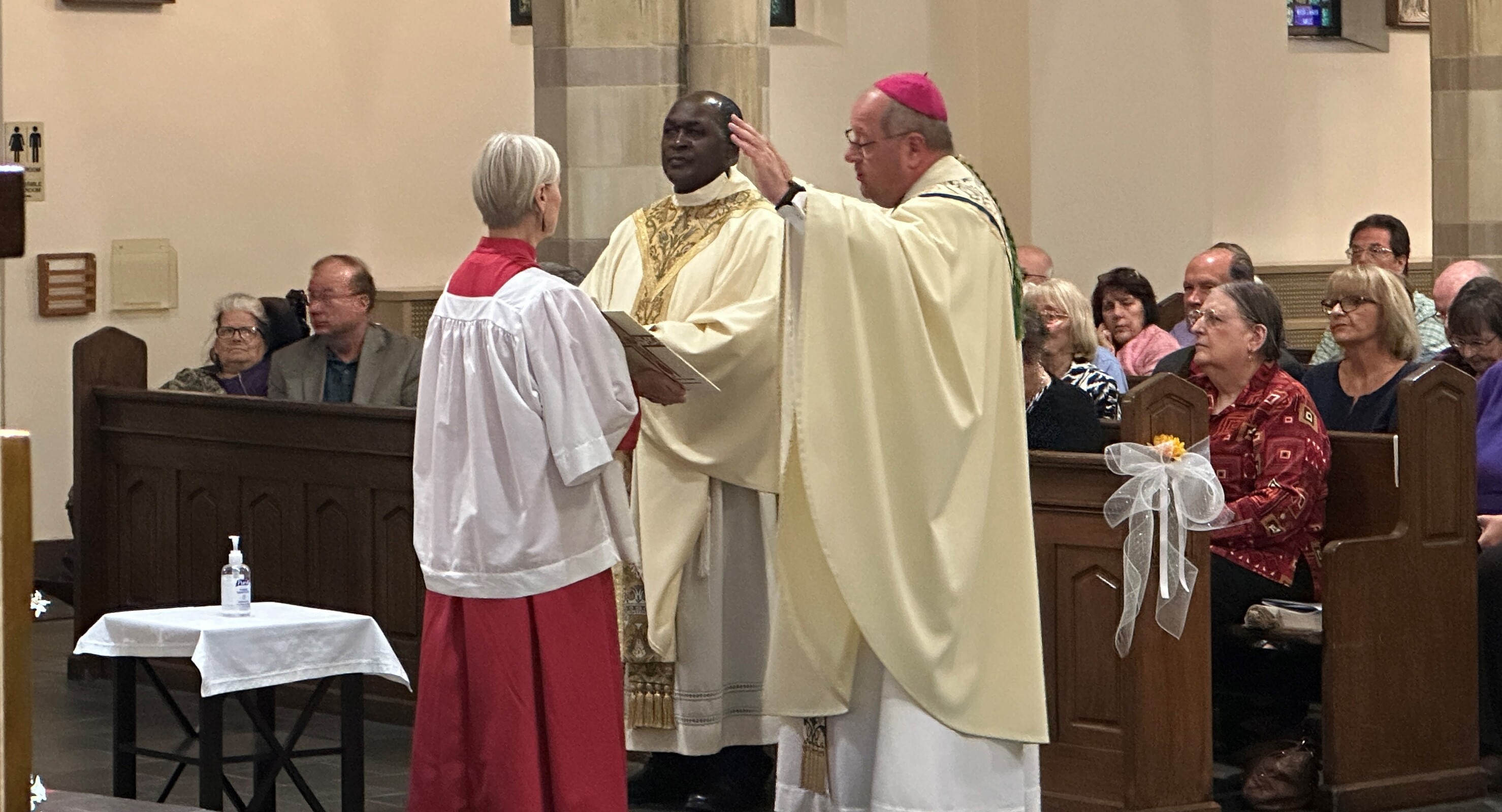 Between downpours on Aug. 23, a joyful liturgy was celebrated in Visitation of Mary Church, Akron. Parishioners from that parish and its sister parish, nearby St. John the Baptist, welcomed their new pastor, Father Dismas Byarugaba, AJ. He had been serving as the parishes’ administrator for nearly two years prior to his formal installation as pastor.