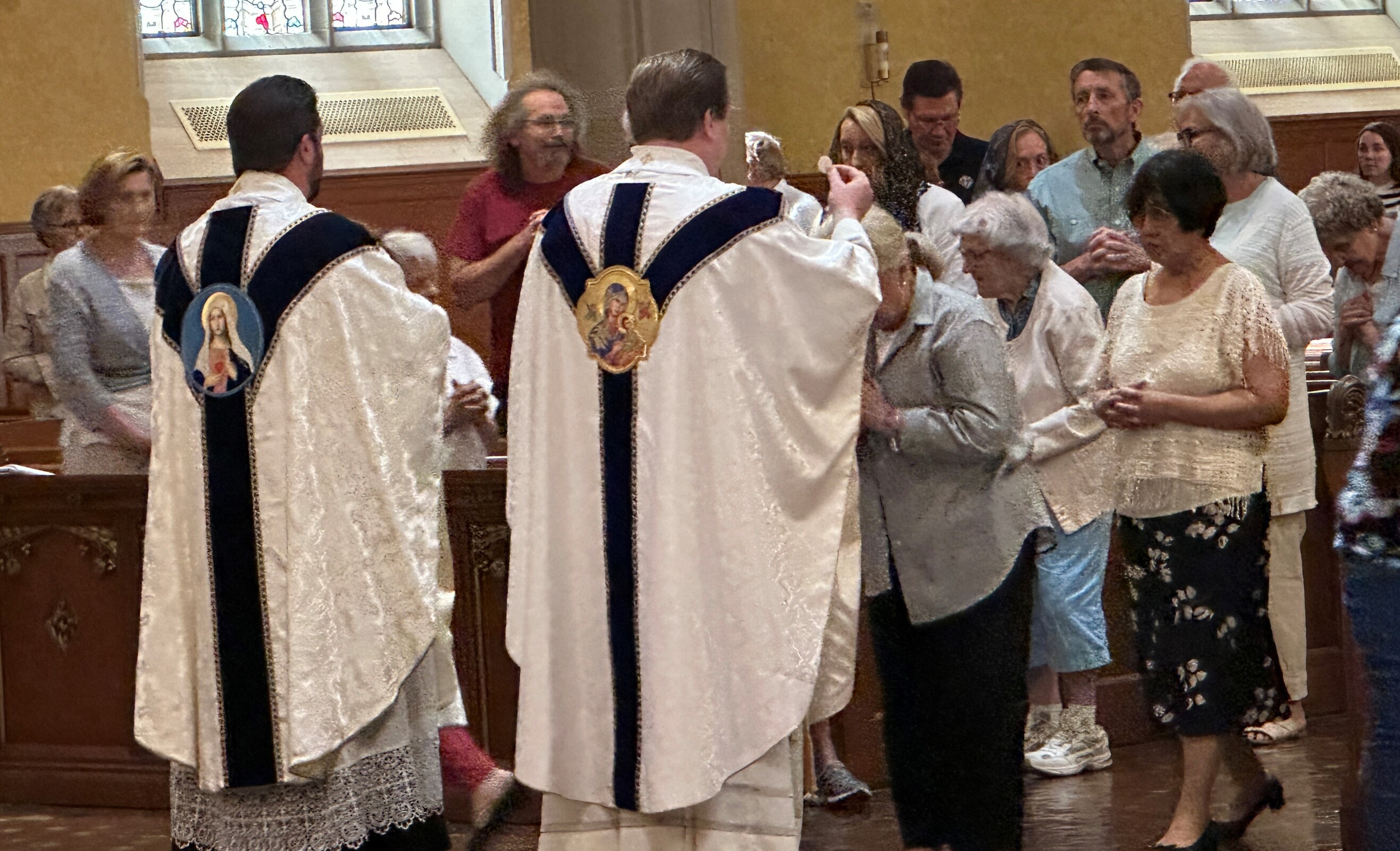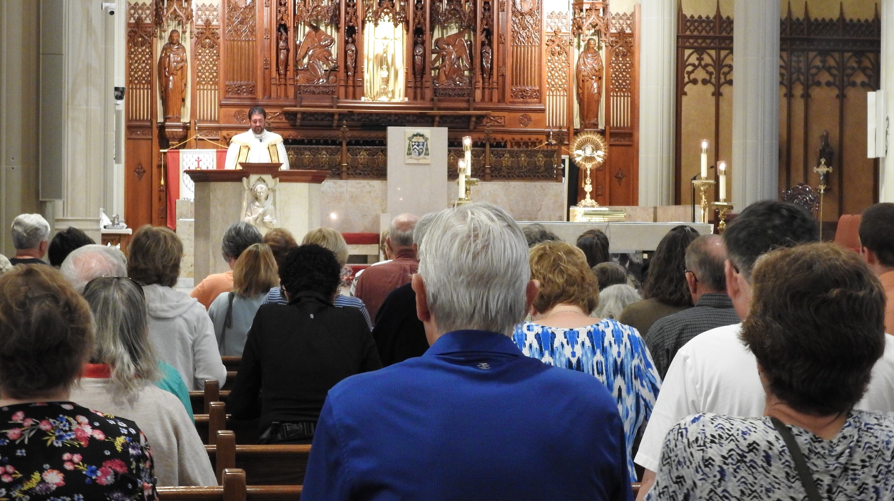 After returning to the cathedral, the Eucharist – in the monstrance – was returned to the altar and Father Estabrook led the congregation in the opening prayers and the rosary (joyful mysteries), followed by the collective consecration to Mary. The event concluded with benediction, the Eucharistic blessing, Divine Praises, concluding prayers and hymns.