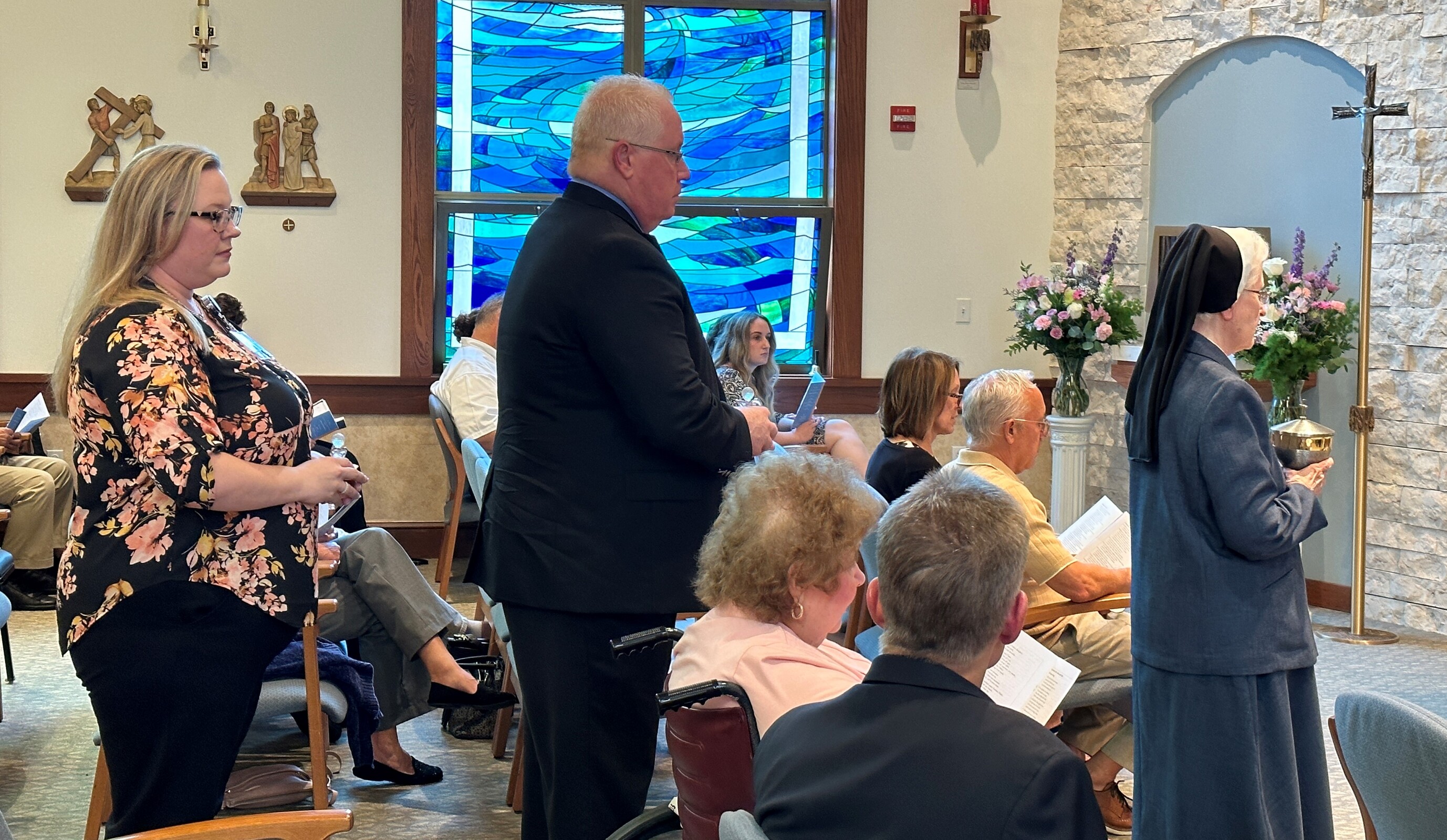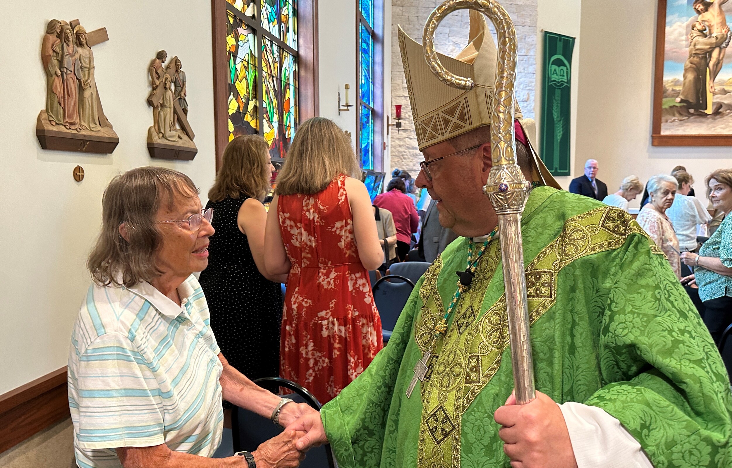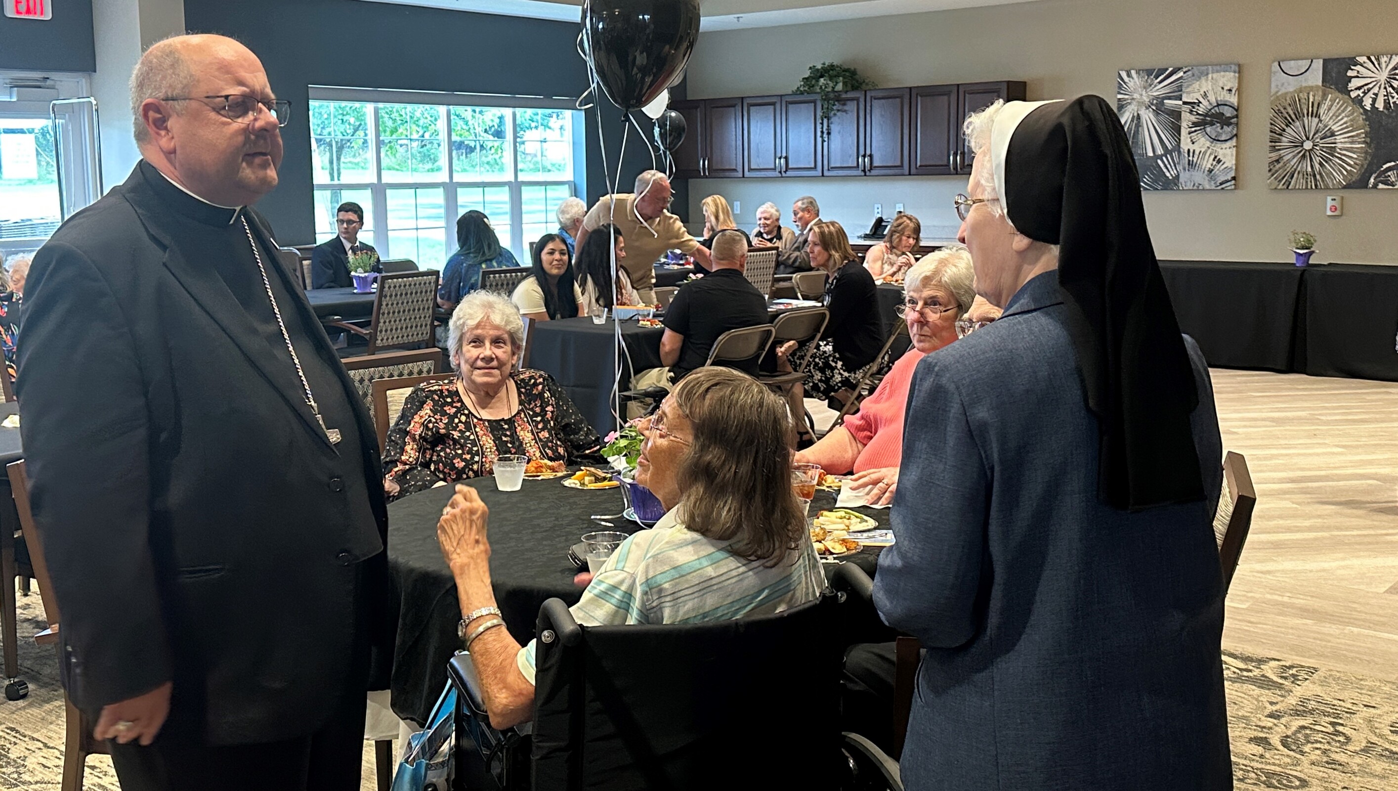 Bishop Malesic said as the 70th anniversary of Mount Alverna Village is celebrated, “We remember those who have passed through the doors and the current residents and their families. Jesus walks with you and all of us. Let us also pray for the care team members who dedicate their lives to the residents and for the Franciscan Sisters of Chicago. This work is crucial. You don’t often get the affirmation you deserve. This place is important. It’s not just bricks and mortar but what’s inside. Remember the words of Jesus when he said, ‘Whatsoever you do for one of these, you do for me. That’s why we’re here,” the bishop added.