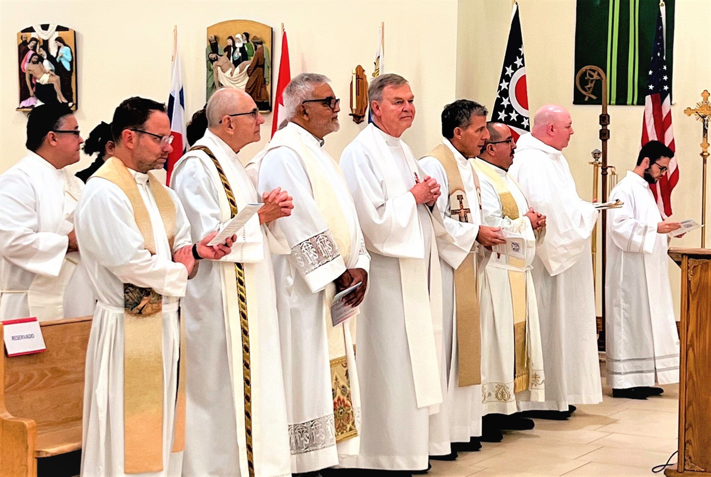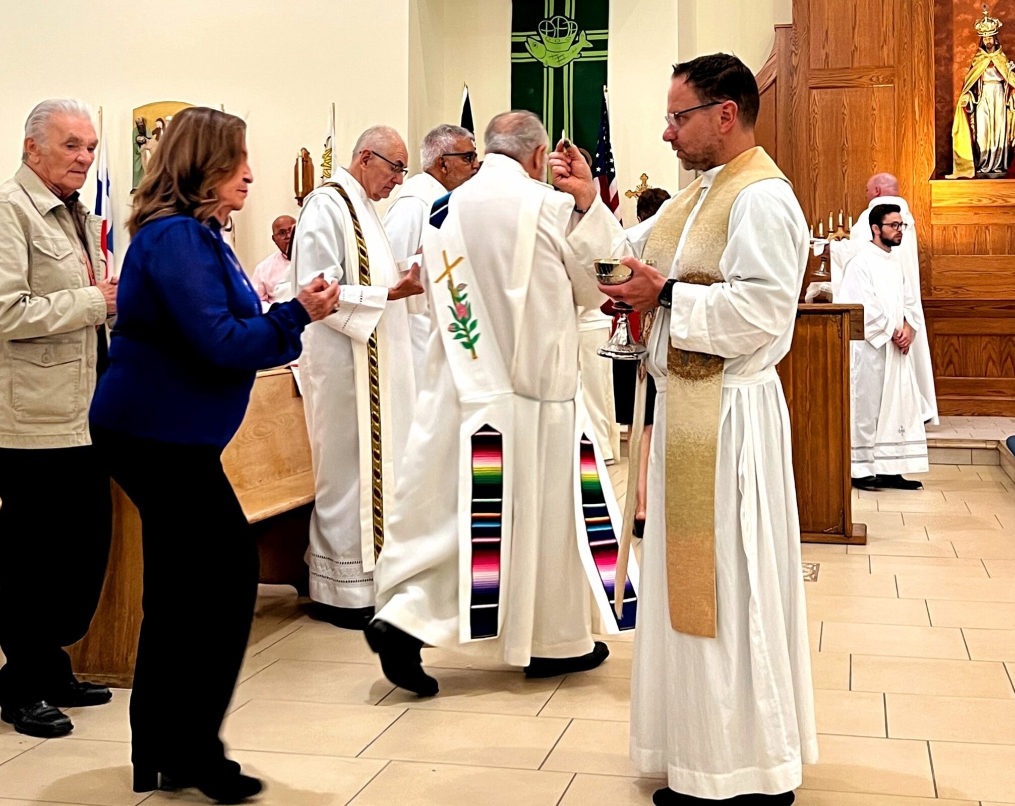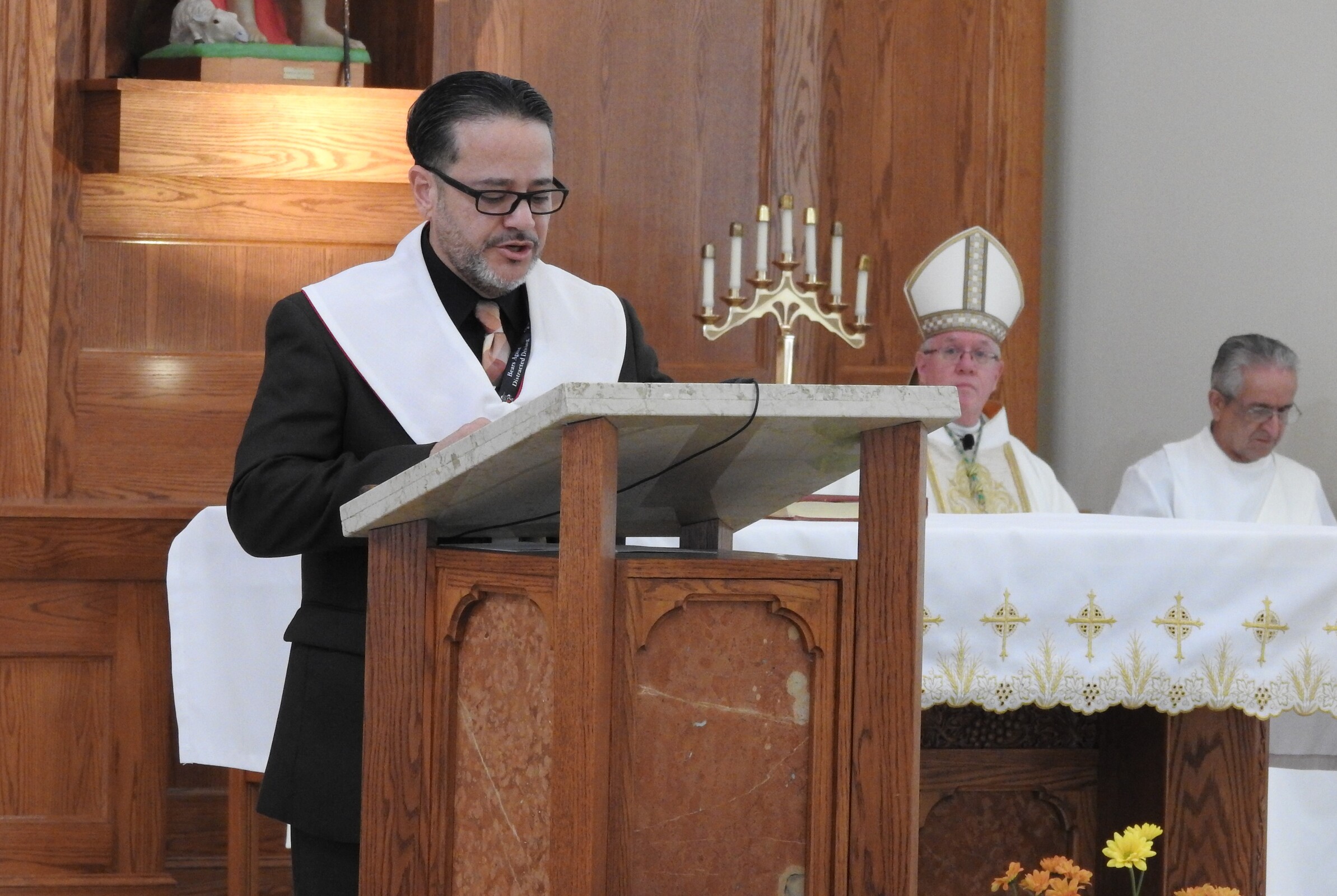 Auxiliary Bishop Michael Woost was the primary celebrant for the Mass, with pastors of some of the seven Hispanic parishes in the diocese concelebrating. They included Father Francisco Garnica, Sagrada Familia pastor; Father Bill Thaden, pastor of Sacred Heart Chapel in Lorain; and Father Steve Vellenga, pastor of St. Mary Parish in Painesville. Father Damian Ference vicar for evangelization and head of the Parish Life Office, and Father Joe Hilinski, pastor of St. Barbara Church in Cleveland and delegate for ecumenical and interfaith affairs, also concelebrated. The liturgy was celebrated in both English and Spanish.