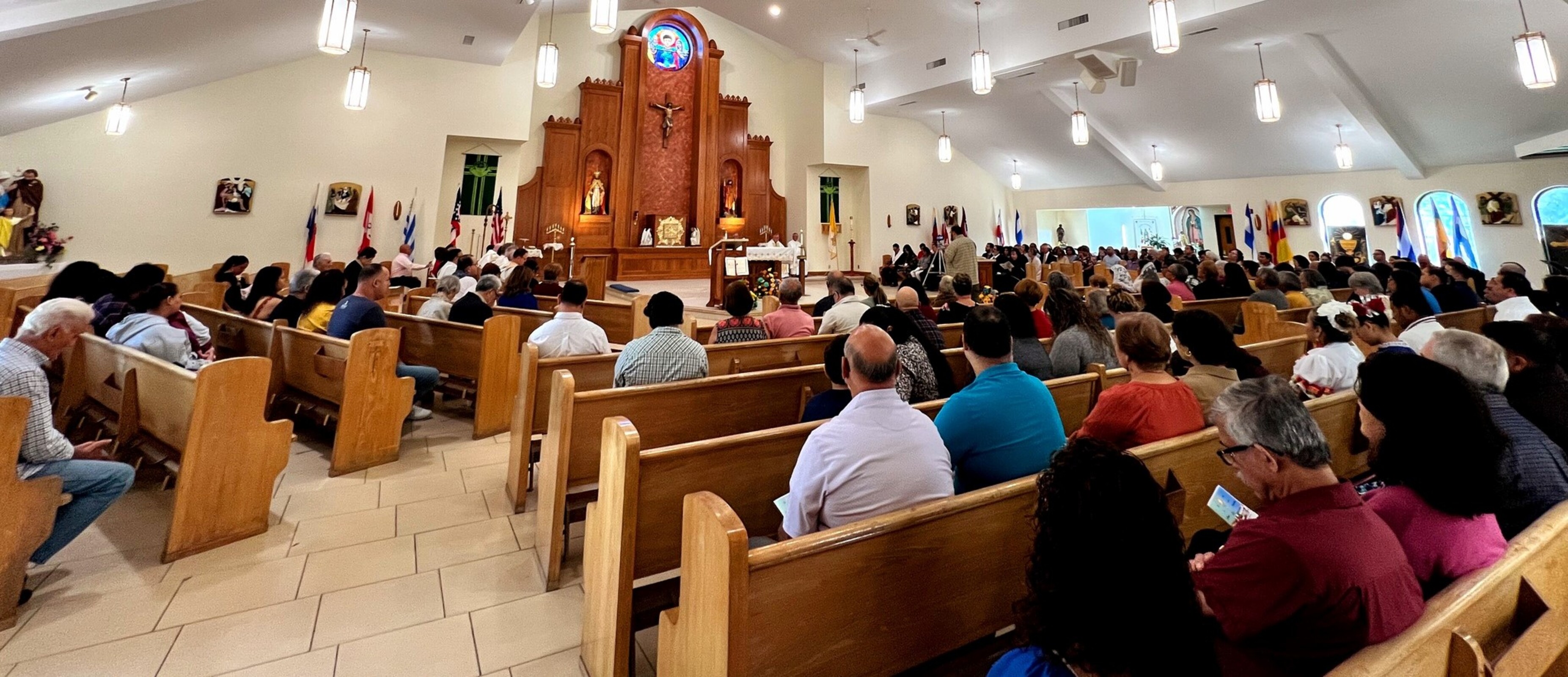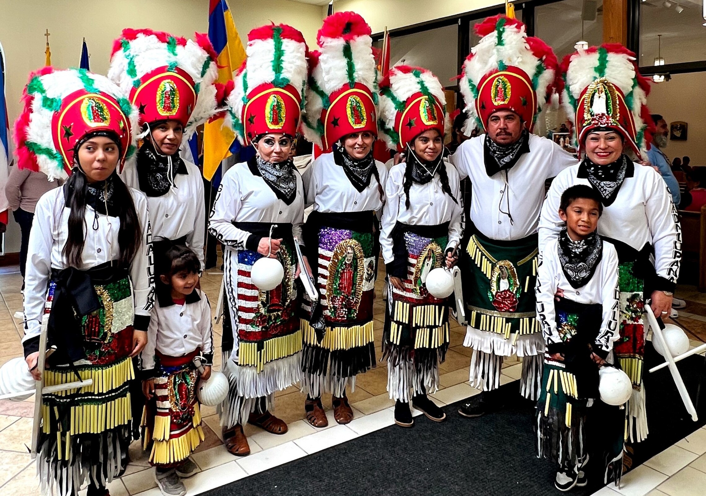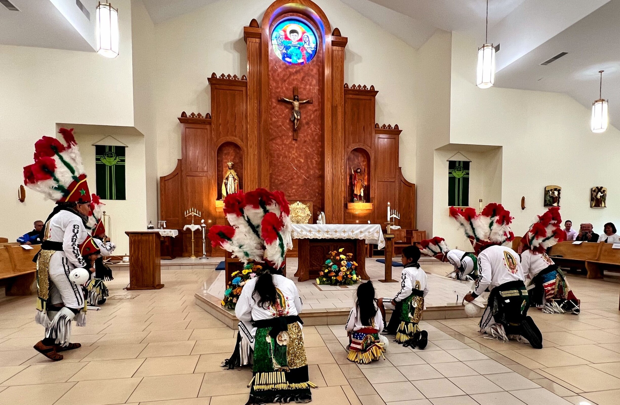 After Mass, costumed dancers performed in the sanctuary before the congregation and clergy moved to the parish hall for a cultural celebration and home-cooked traditional foods.