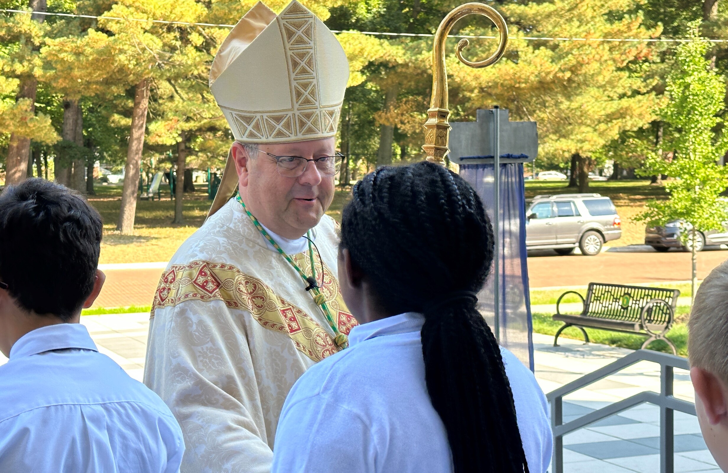 He reminded the students not to act out of hate, but to remember what Jesus taught us, “to love one another. You’re walking together as a family of faith, as brothers and sisters in the Lord. The best anti-bullying program is the Gospel. Share that, walk with Jesus and remember to nourish your spirit and soul. And congratulations on being awarded the National Blue Ribbon School designation,” the bishop added.