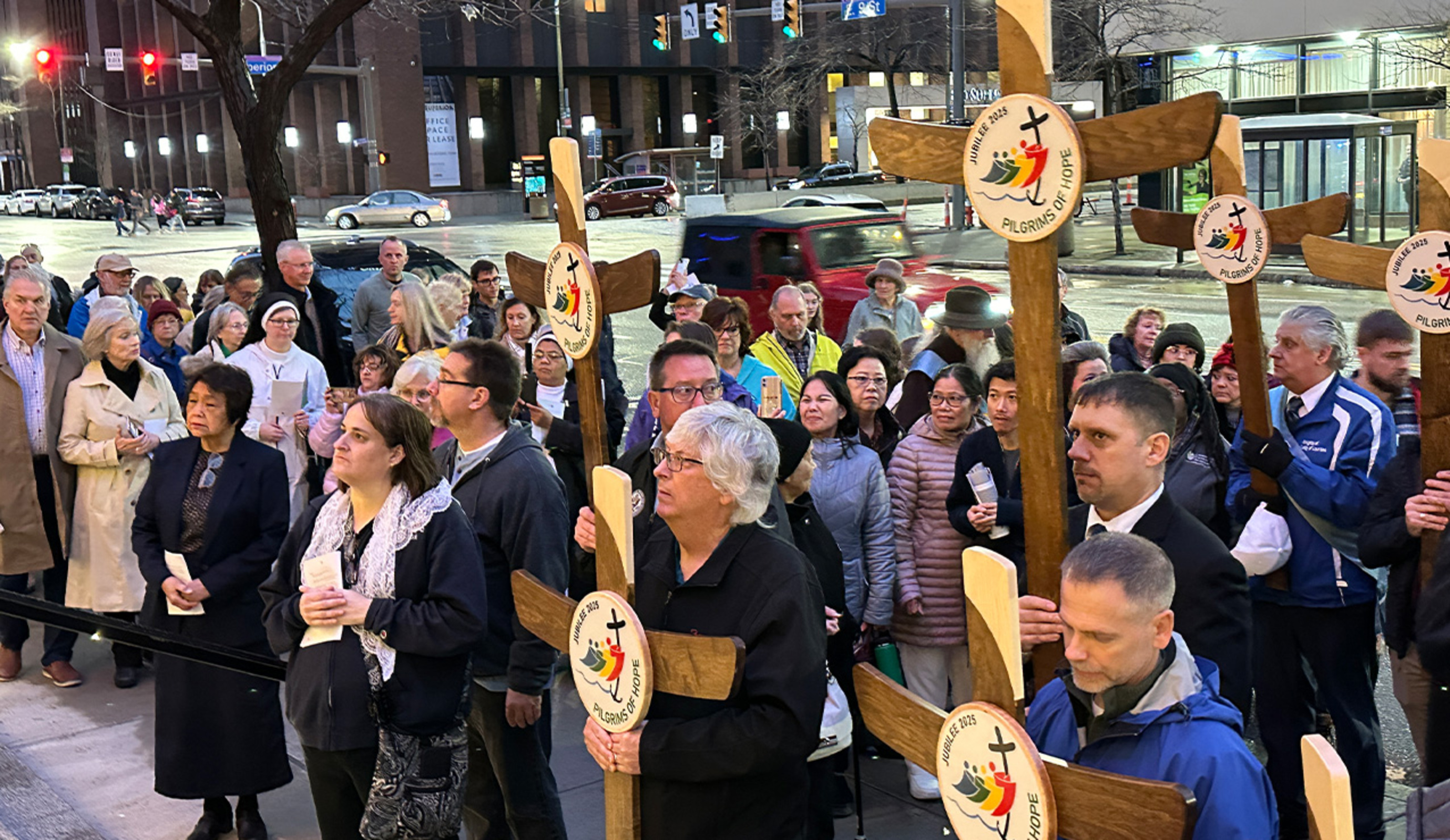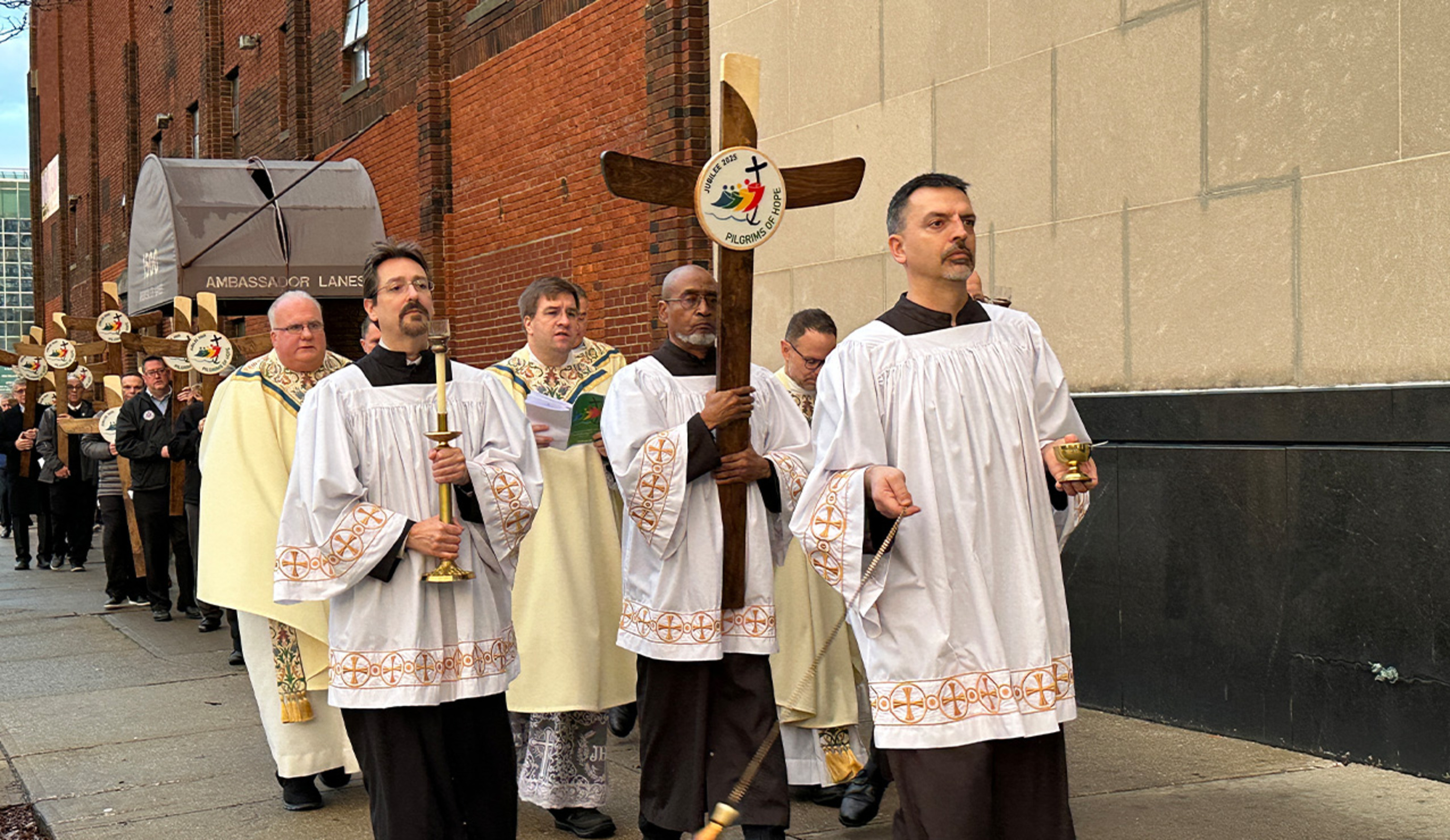 Nearly 200 people attended a prayer service at St. Peter Church in downtown Cleveland before processing to the Cathedral of St. John the Evangelist to open the Jubilee Year of Hope in the Diocese of Cleveland.