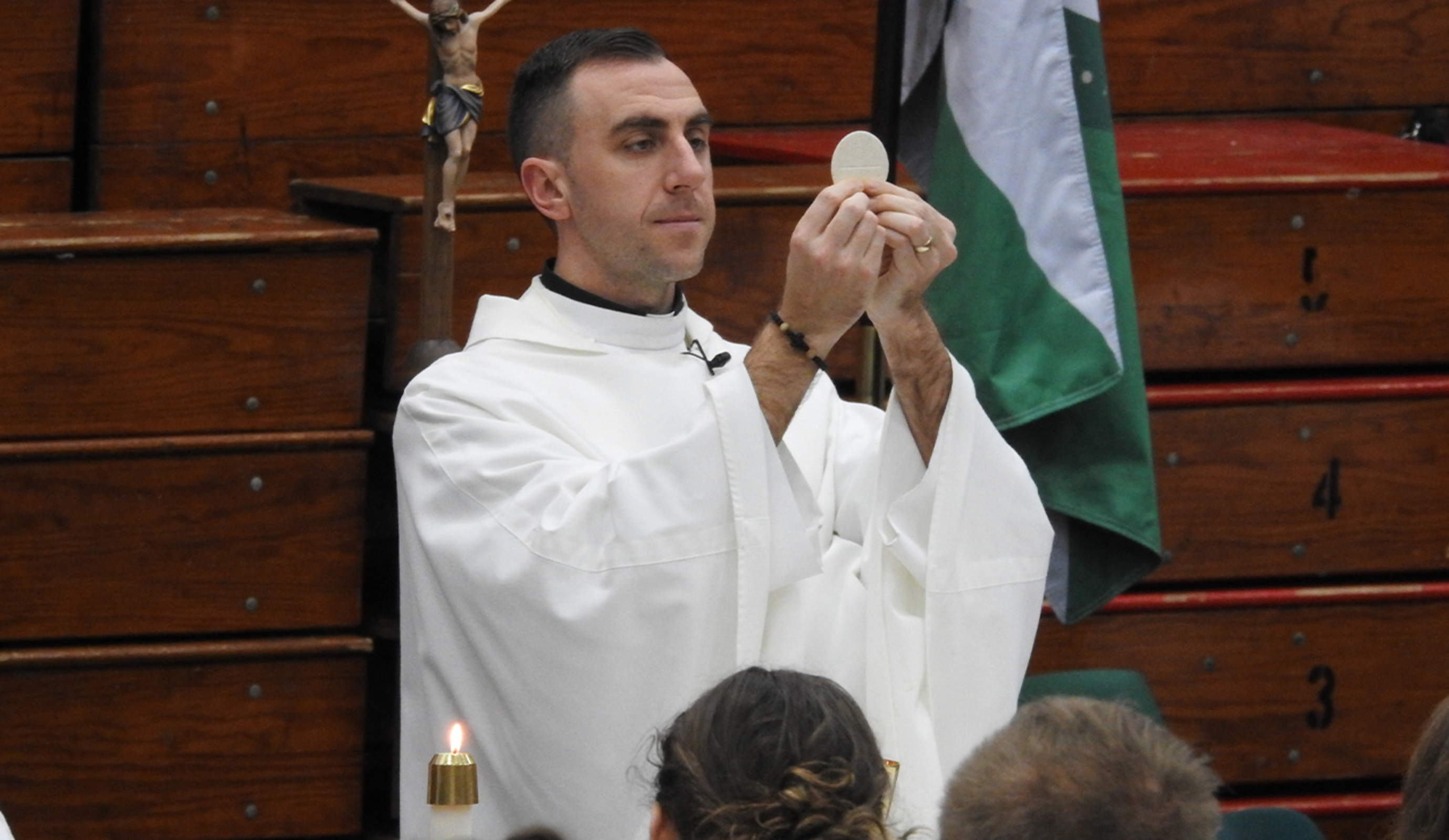 Celebrant was Father Eric Garris, diocesan vocation director. Assisting was Deacon Jeffrey Lindholm. A group of enthusiastic EC musicians and vocalists led attendees in song throughout the liturgy. Attendees could follow along with the lyrics that were posted on a large screen.