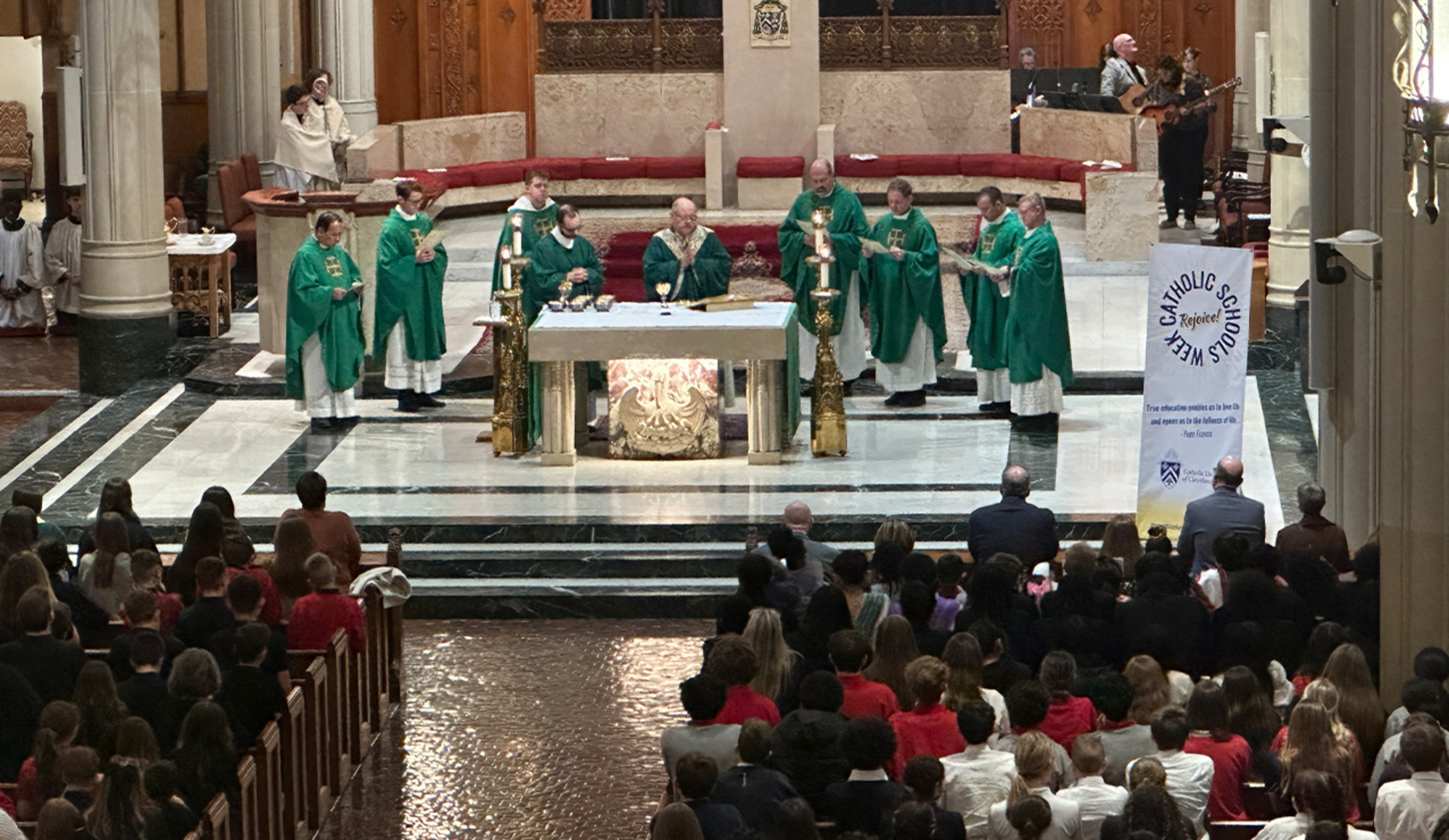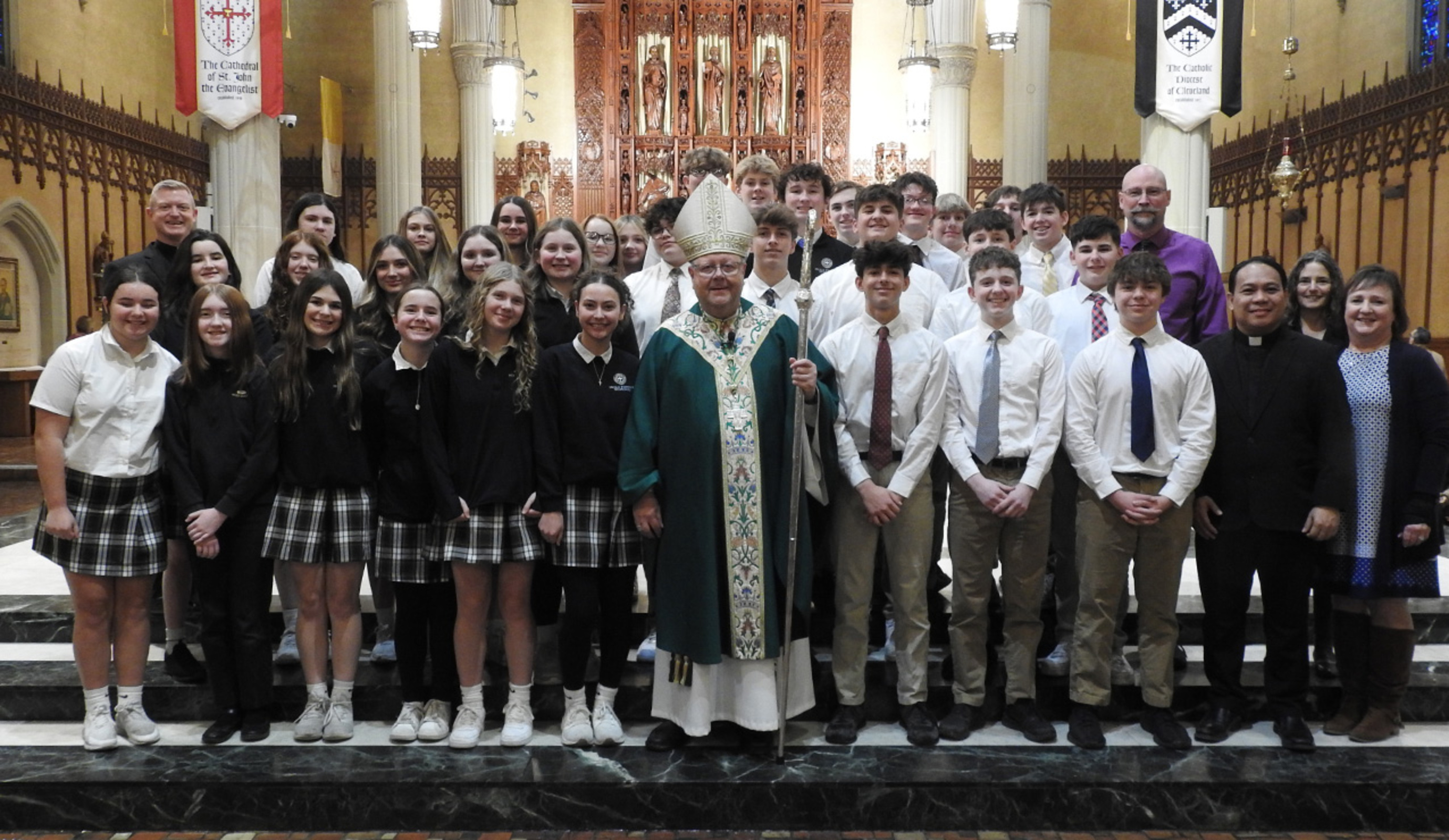 “I welcome the many schools that are here today,” Bishop Edward Malesic said as he scanned the pews of the Cathedral of St. John the Evangelist. About 1,000 students, teachers, Catholic school officials and donors poured into the church for the Mass on Jan. 29.