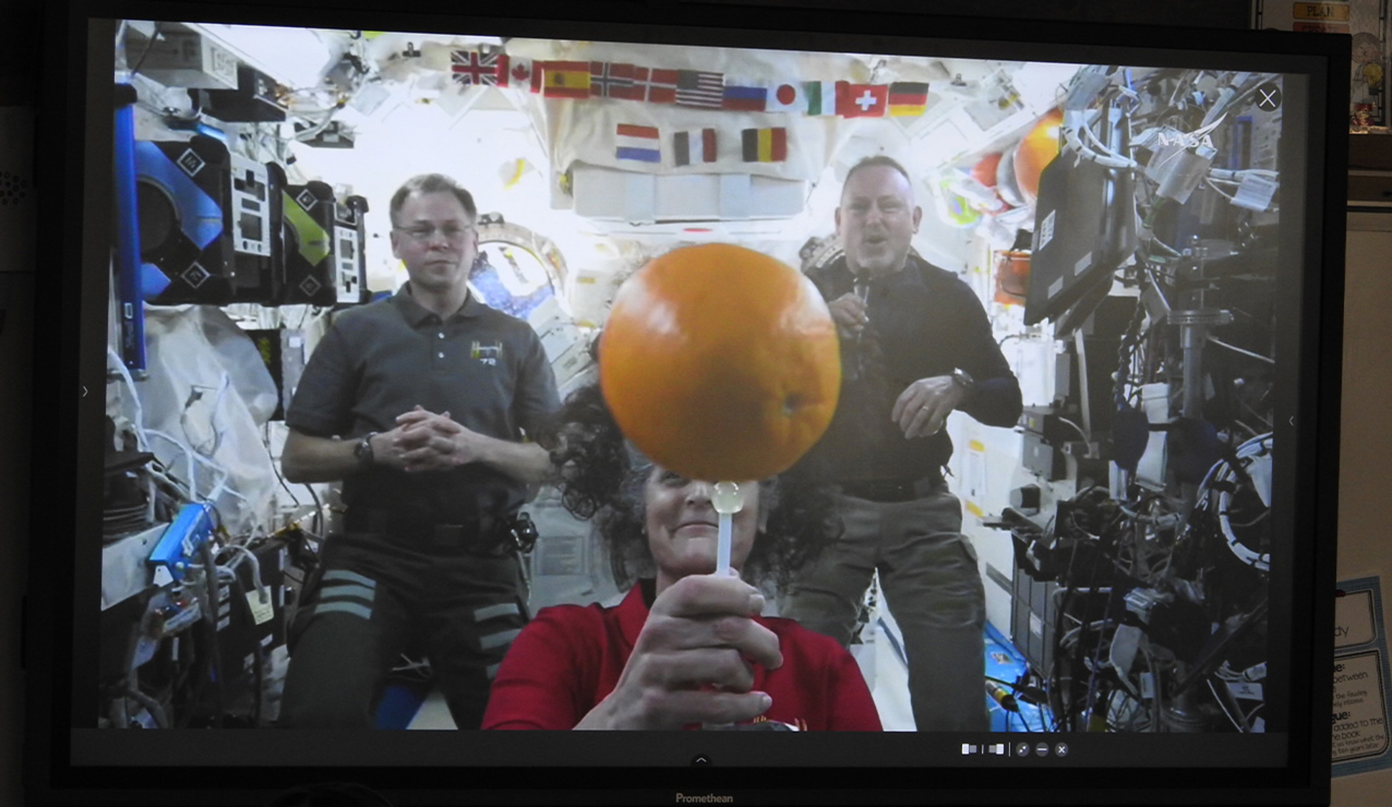 Among the questions posed were how astronauts don’t float away during spacewalk, how do they eat and drink if everything floats in space, what happens to the trash they make, what is a typical day like in space, what type of experiments are they working on, do they get the internet in space, how do they communicate with earth, what do the planets and things on earth look like from space and how do they wash their hair in space.