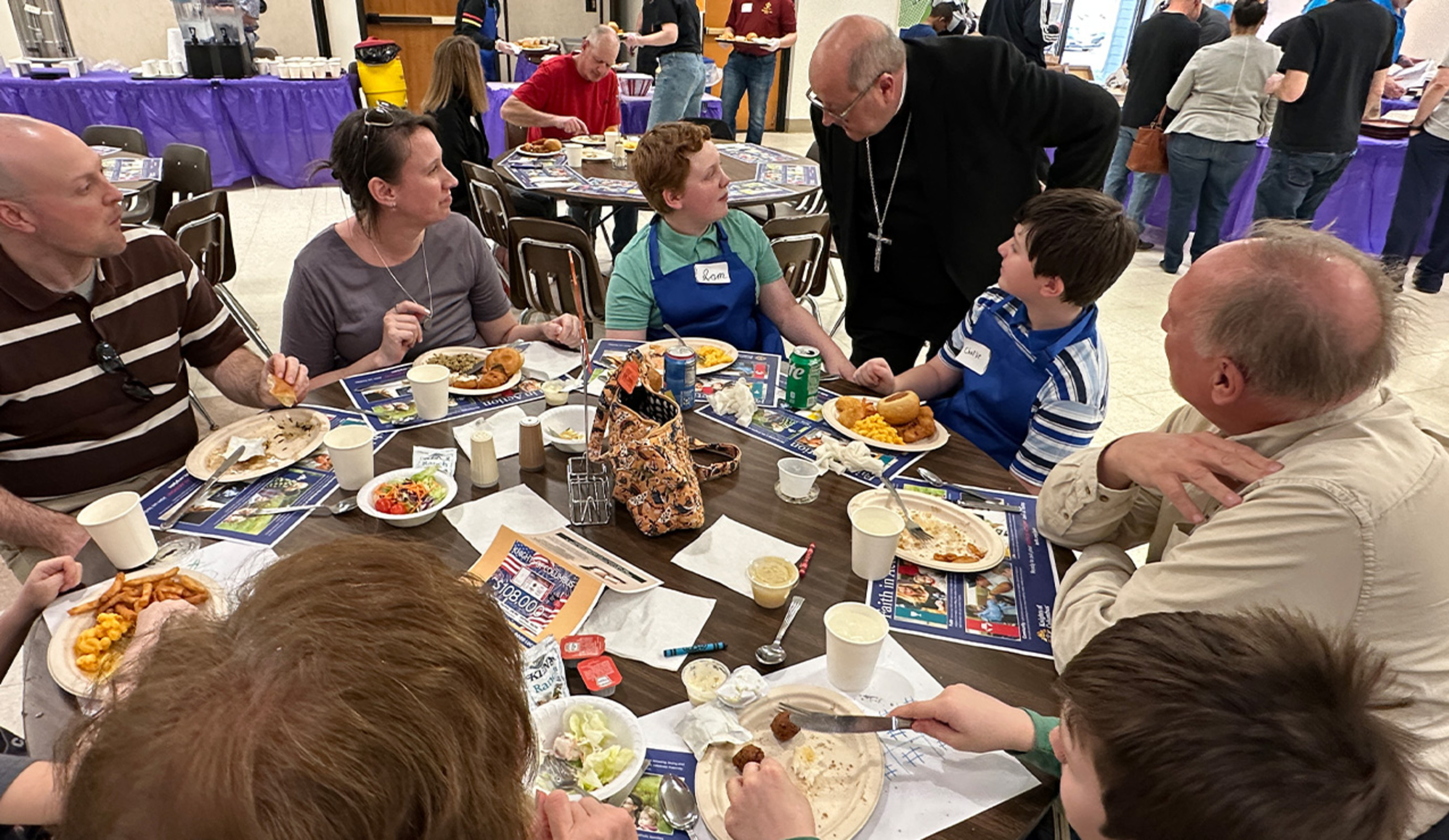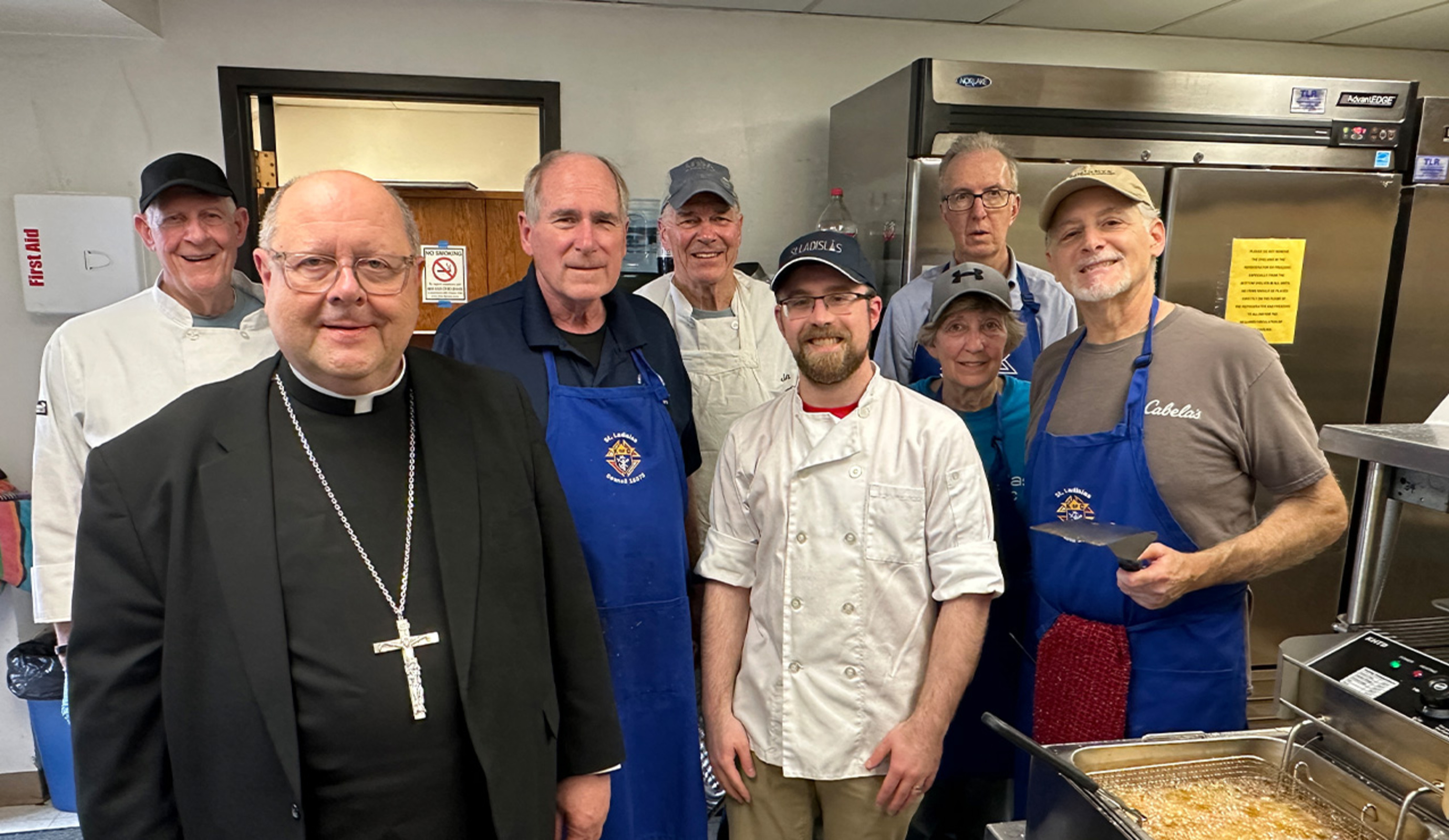 Bishop Edward Malesic resumed his longtime Lenten tradition on March 14 as he visited St. Ladislas Parish in Westlake for a fish fry presented by the Knights of Columbus Council 16373.