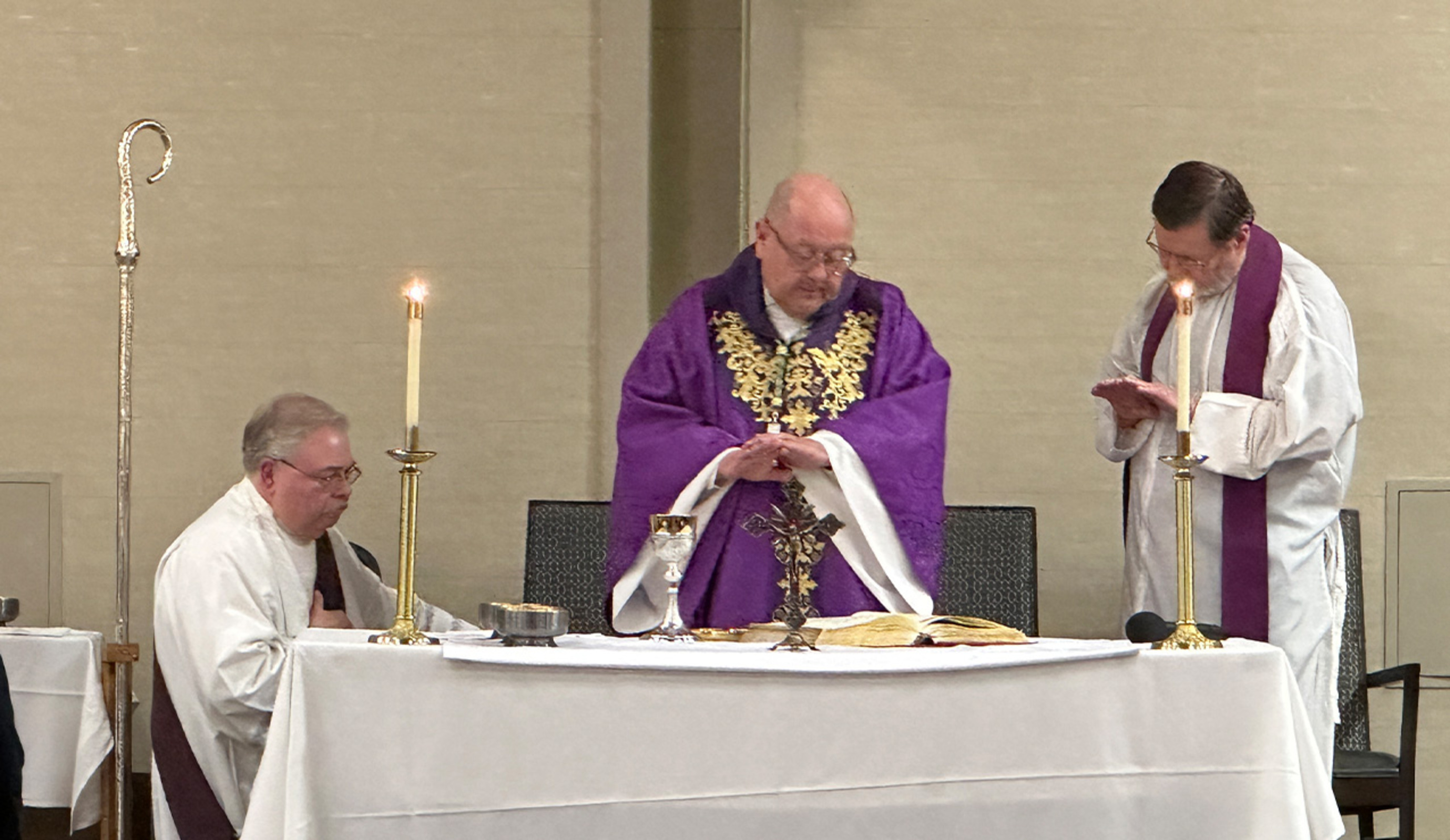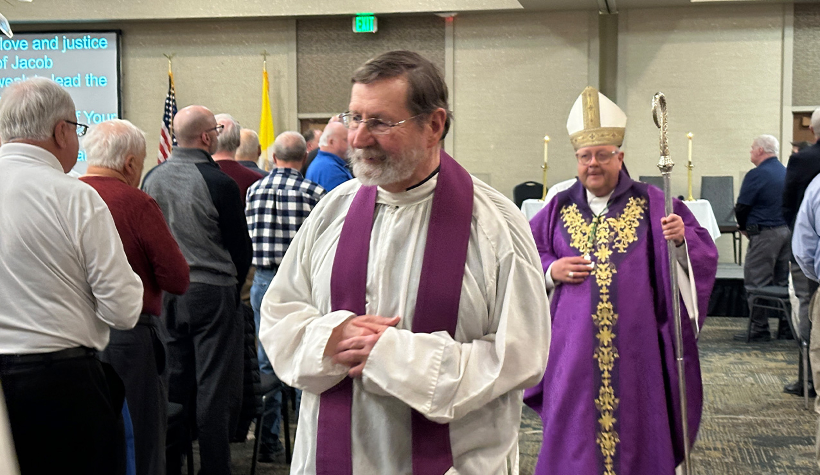 After his talk, the bishop vested and prepared to celebrate the vigil Mass.