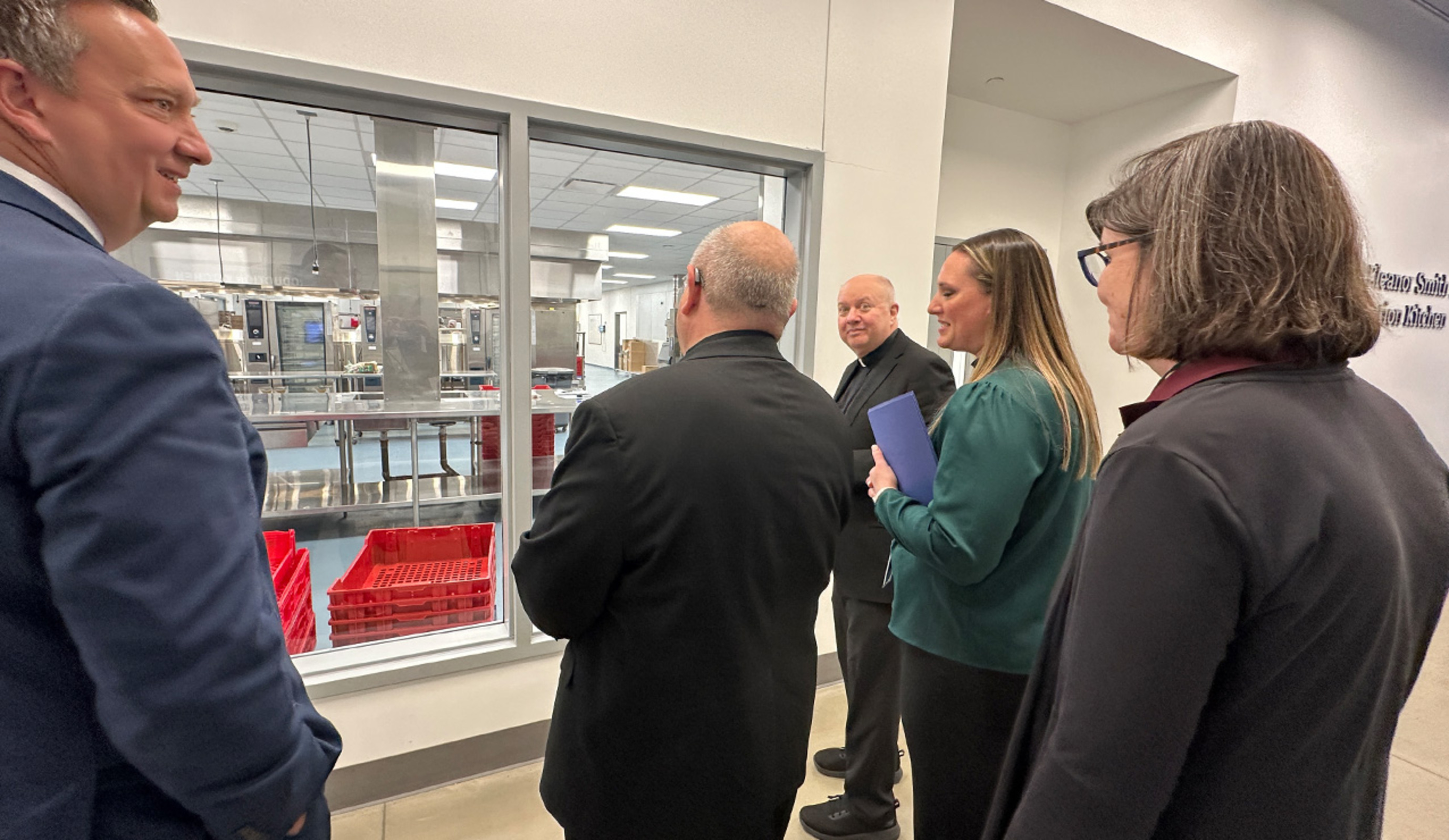 Kristin Warzocha, Food Bank president and CEO since 2000, and Jessica Morgan, chief programs officer and a member of the Food Bank leadership team since 2012, guided the bishop, Jim Mullen, president and CEO of Catholic Charities, Diocese of Cleveland, and Father Dan Schlegel, pastor of St. Raphael Parish in Bay Village, through the Food Bank’s Partner Distribution Hub on Coit Road and its nearby Community Resource Center on South Waterloo Road, both in Cleveland.